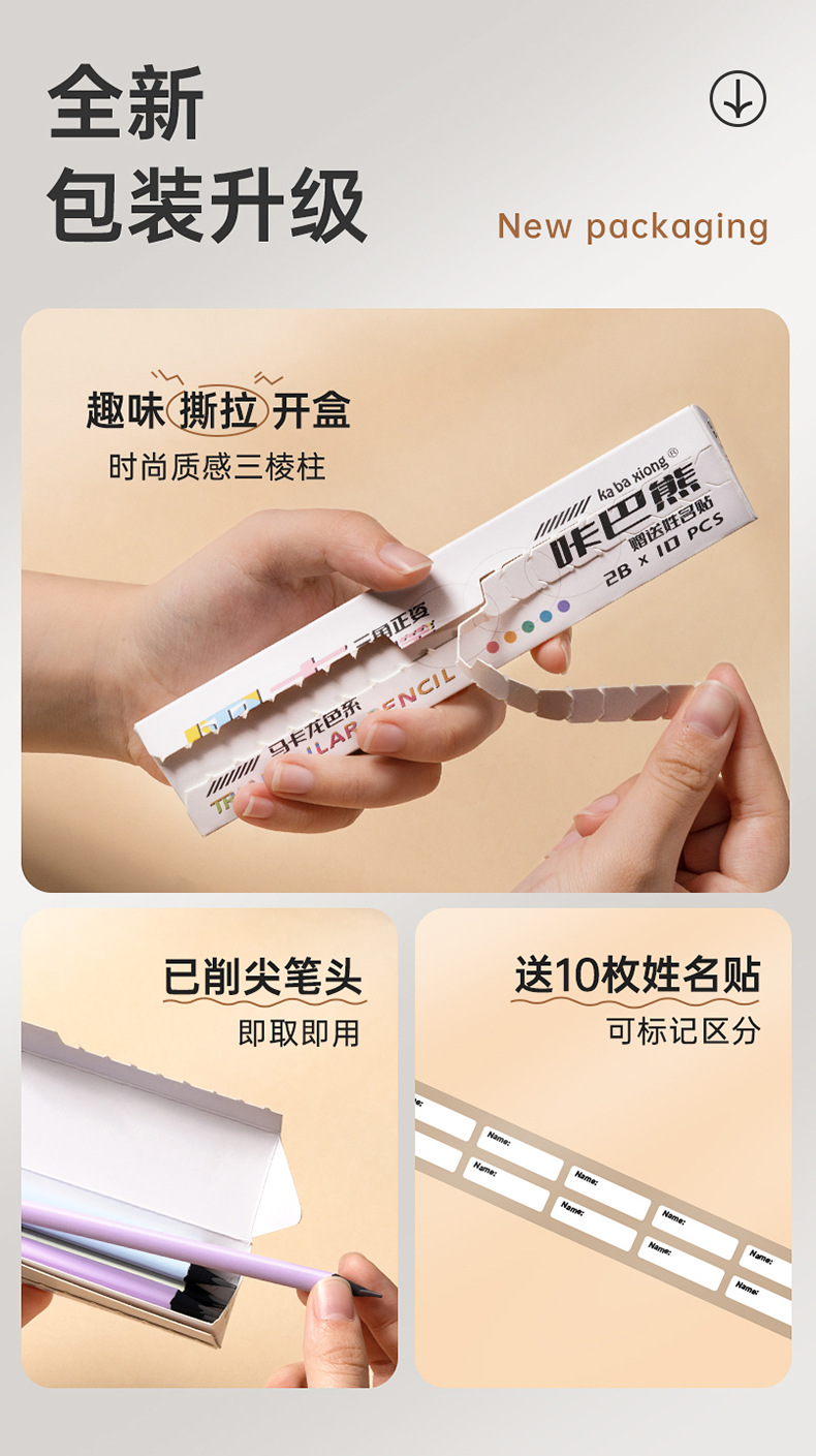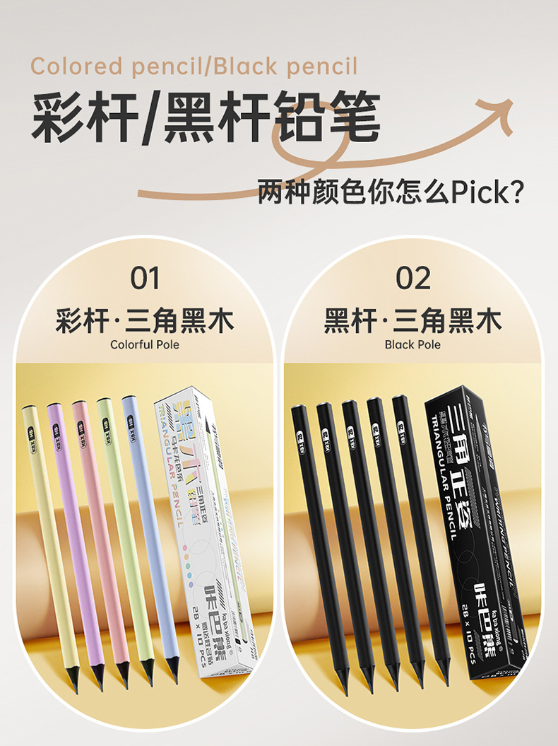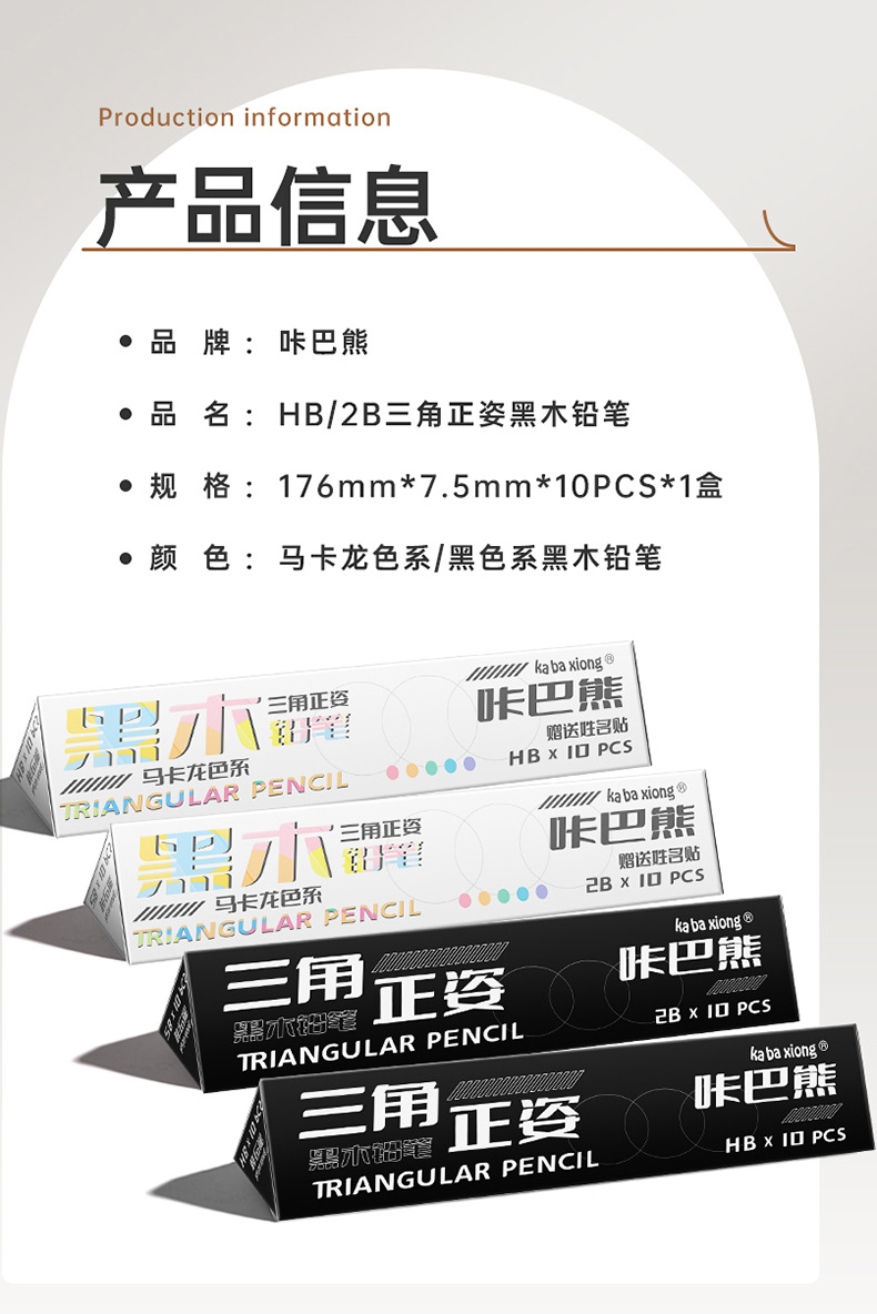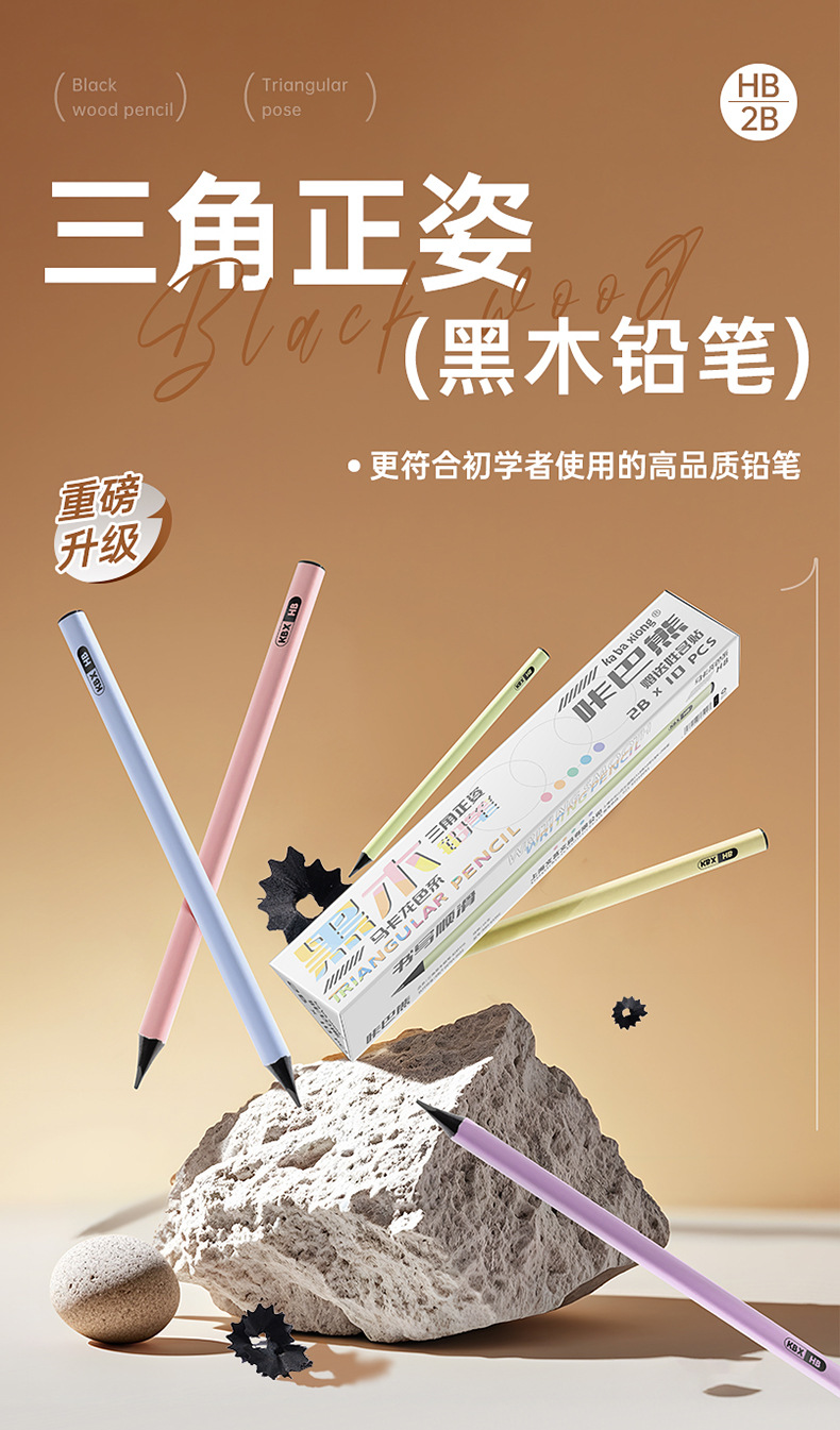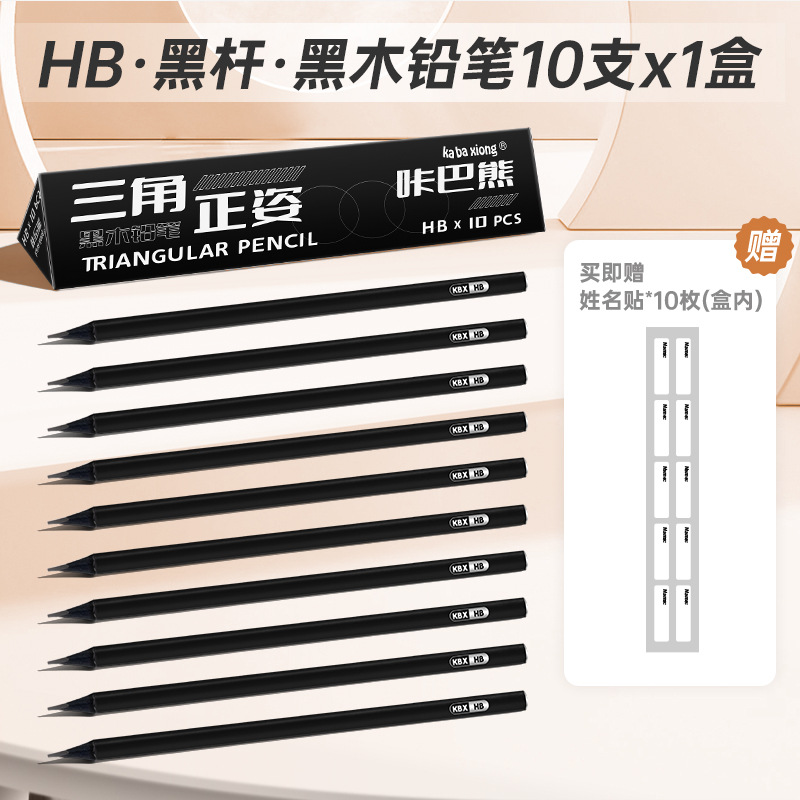 咔巴熊三角正姿黑木铅笔套装画图数学专用初高中生考试铅笔小学生