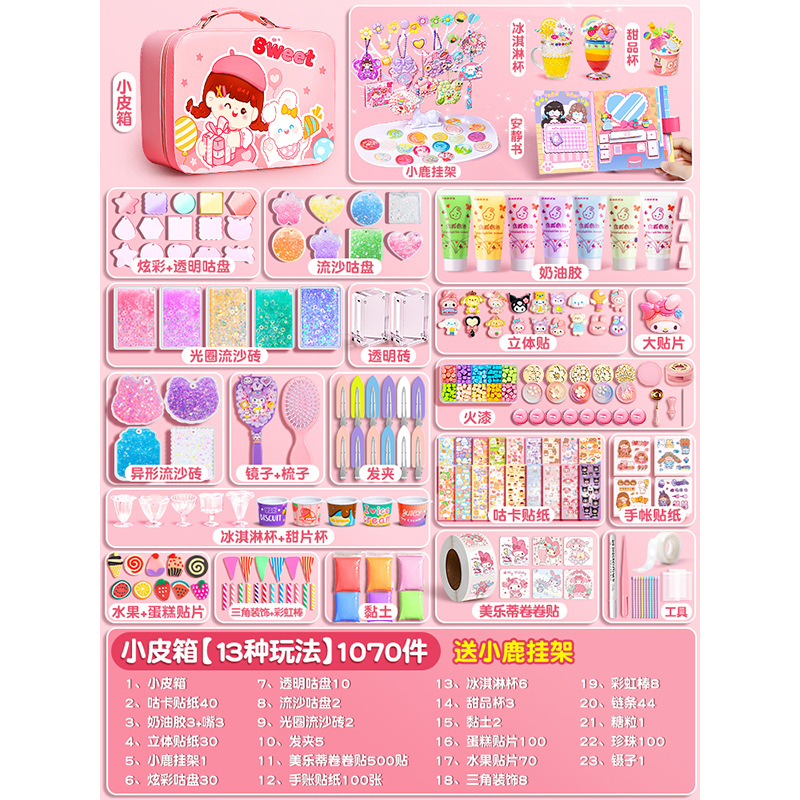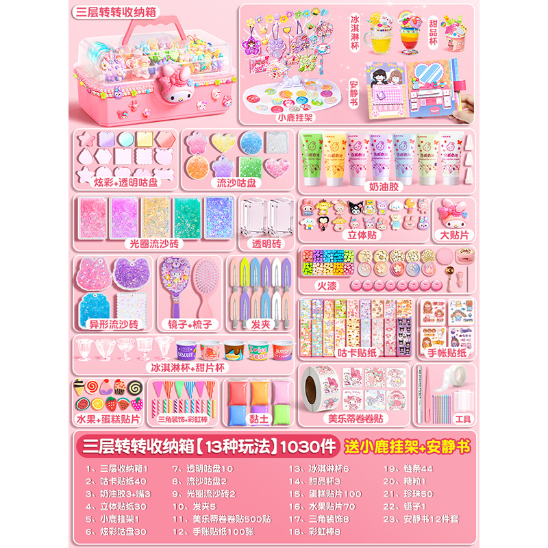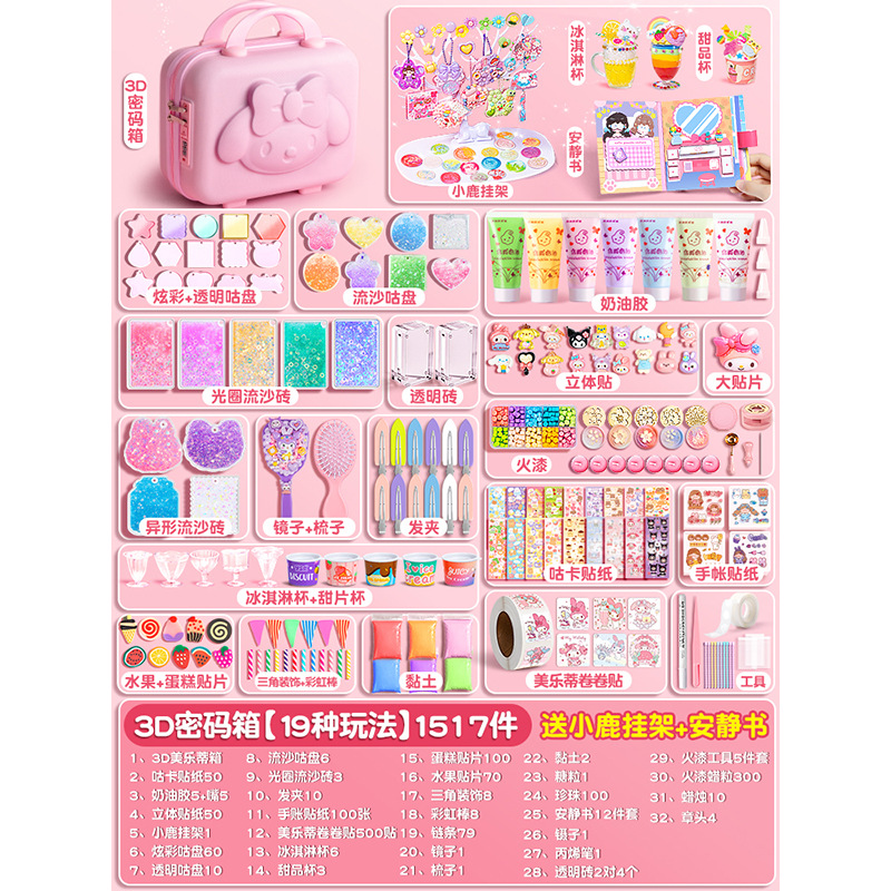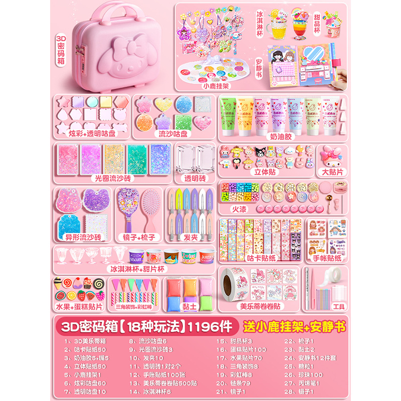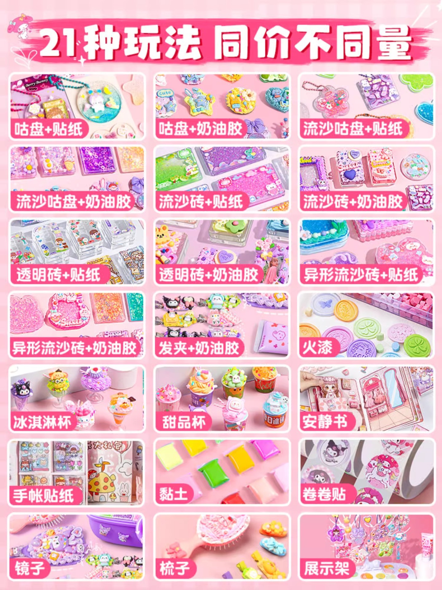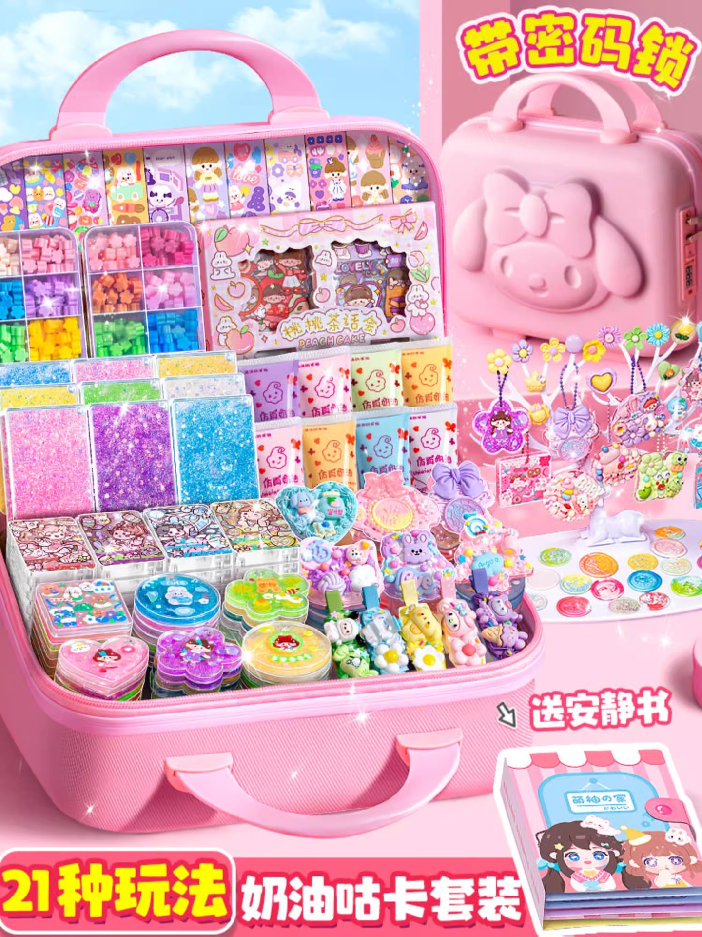 【奶油胶咕卡流沙砖套装】豪华版女孩儿童贴纸咕卡玩具三层收纳盒