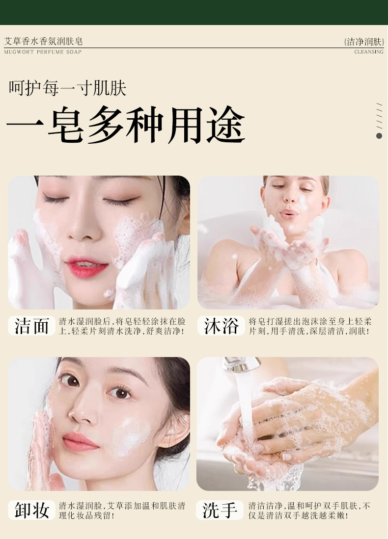 艾草香皂手工皂精油香水皂沐浴洗澡洗脸洗头皂持久留香伴手礼批发