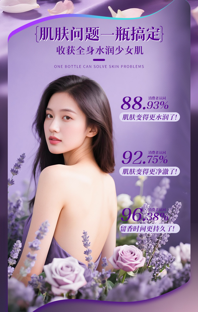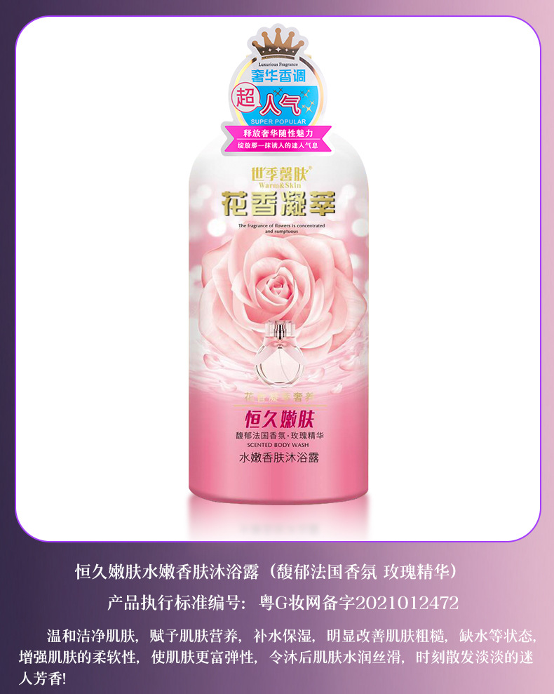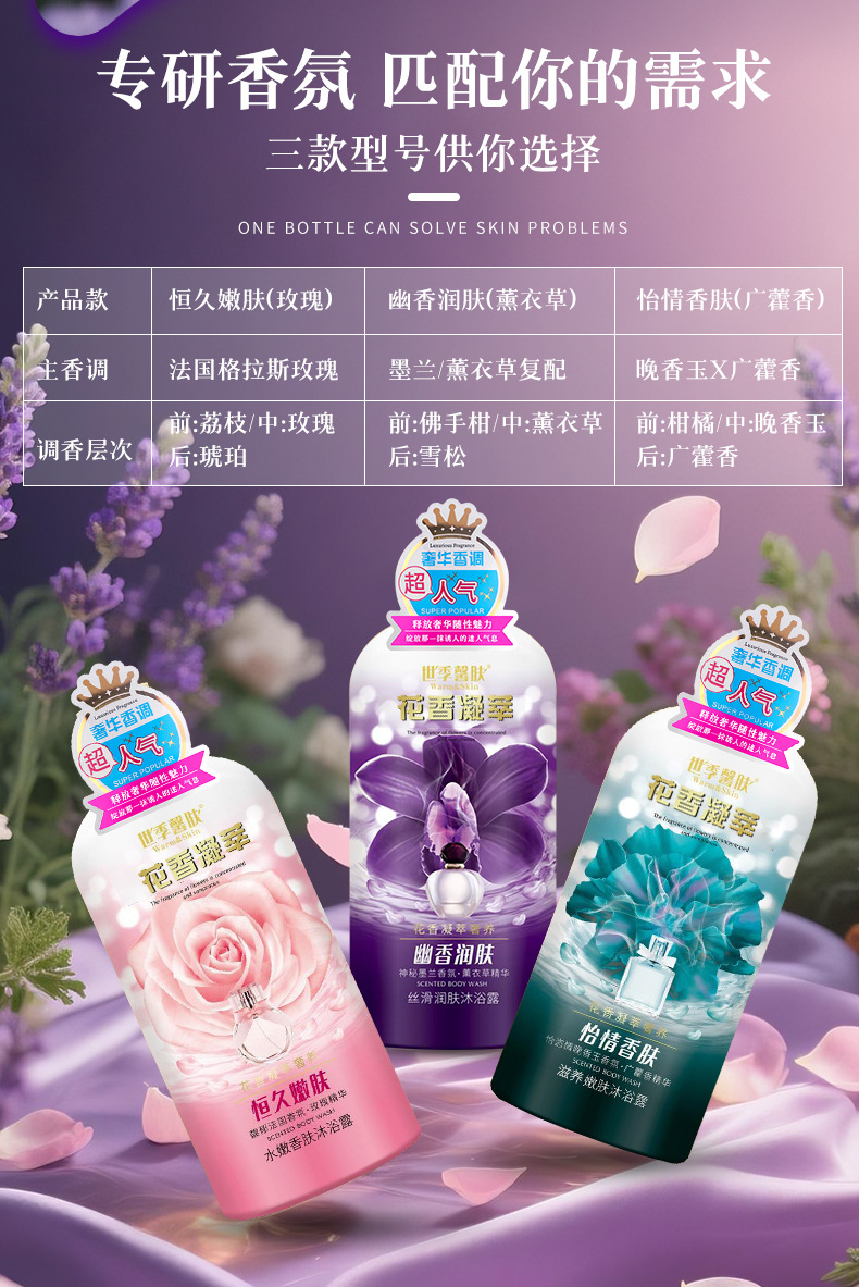 花香凝萃沐浴露玫瑰薰衣草丝滑滋润香水留香保湿清洁香氛沐浴液