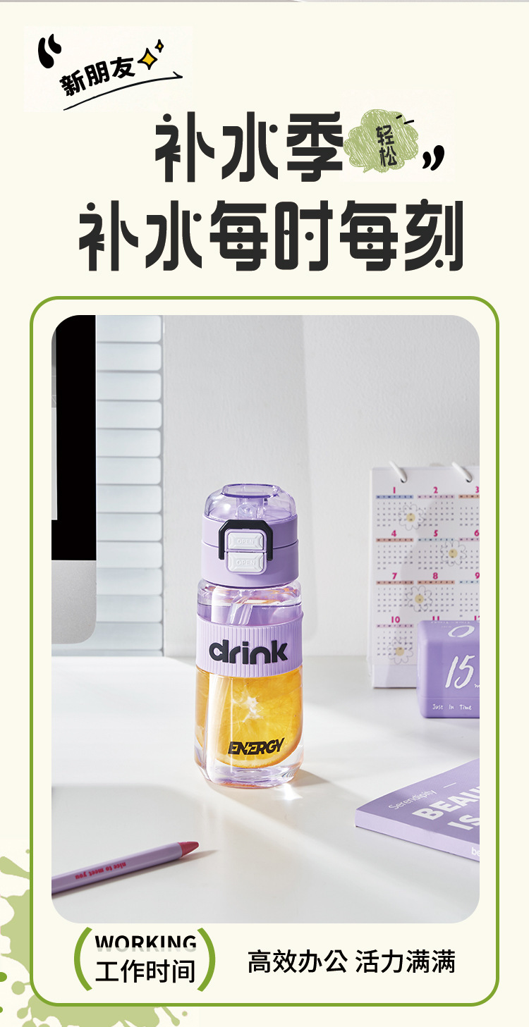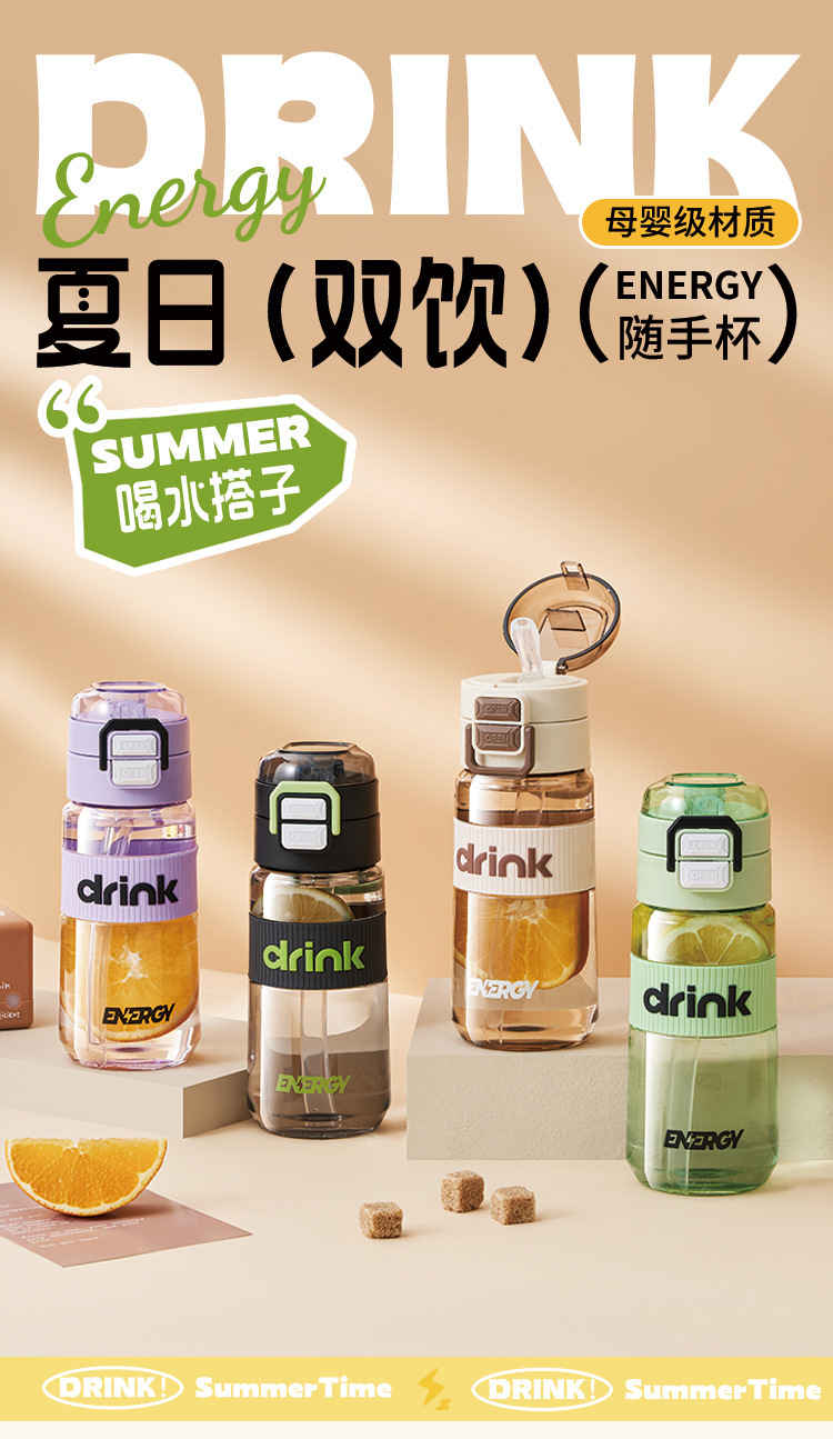 高颜值水杯学生男女可爱随手杯子带吸管网红便携防漏塑料防摔杯子
