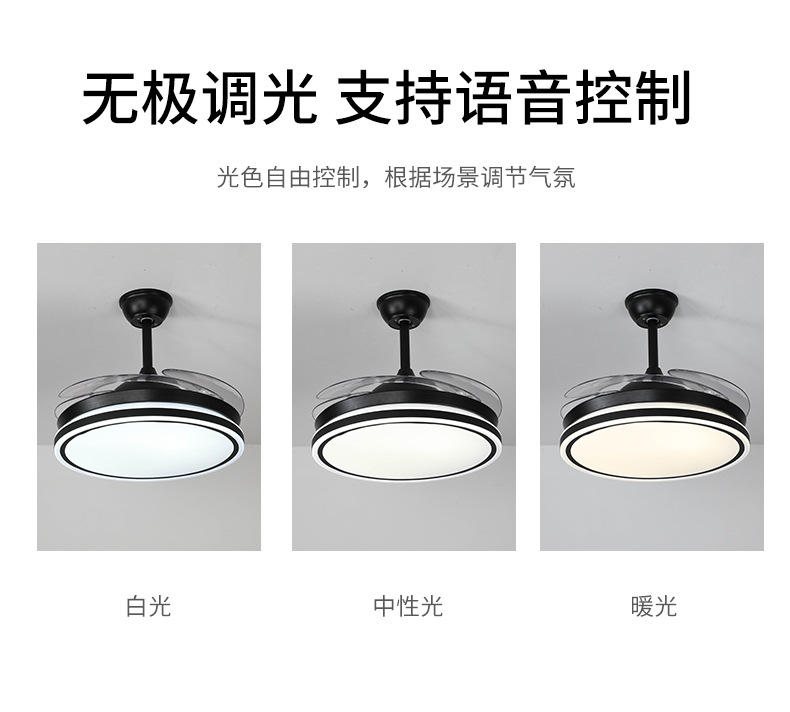 北欧吊扇灯隐形风扇灯大风力客厅餐厅卧室吸顶变频电风扇吊灯一体
