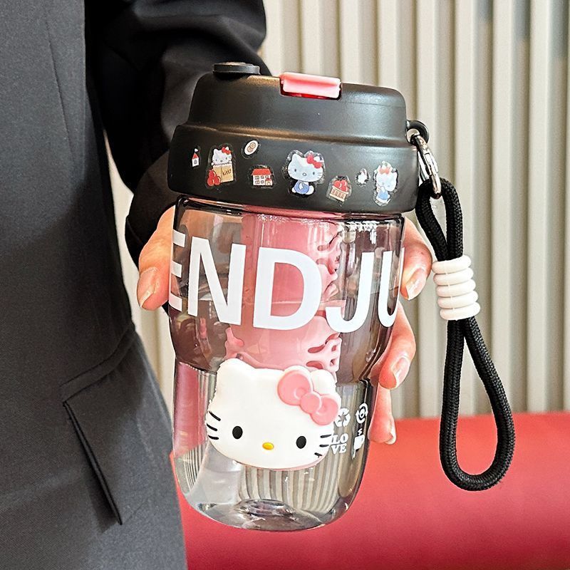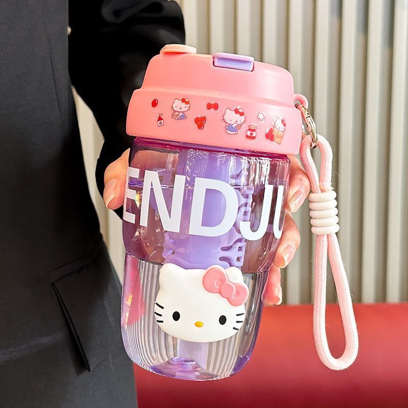 高颜值水杯2024新款女生泡茶杯双饮带吸管杯子学生可爱提手随行杯