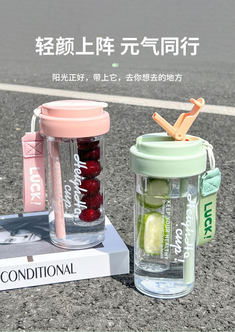 新款吸管学生ins便携水杯茶水女生分离高颜值夏季耐高温杯子
