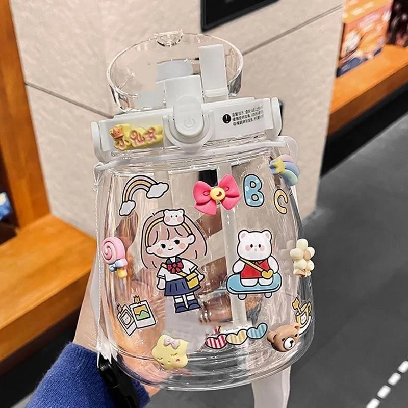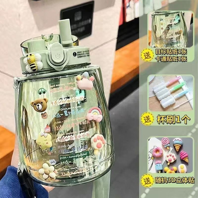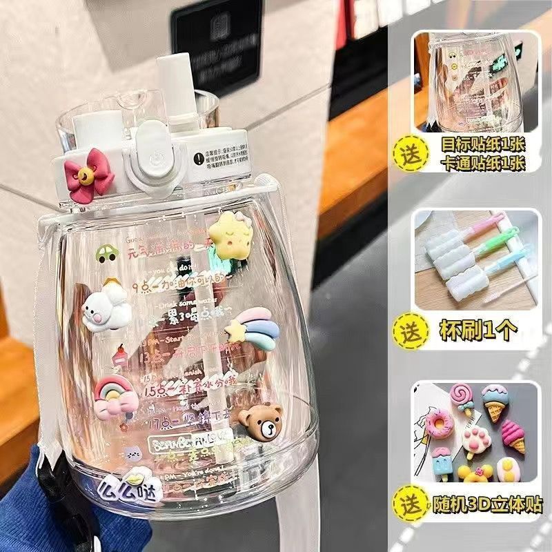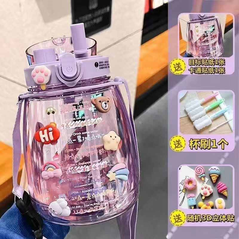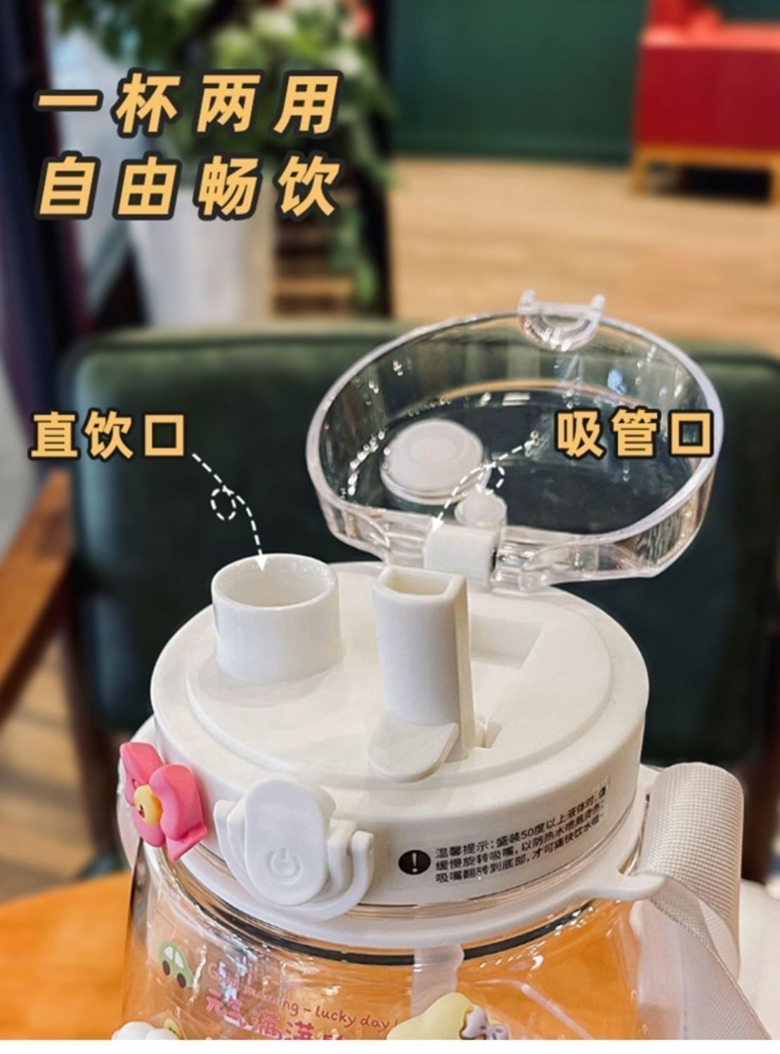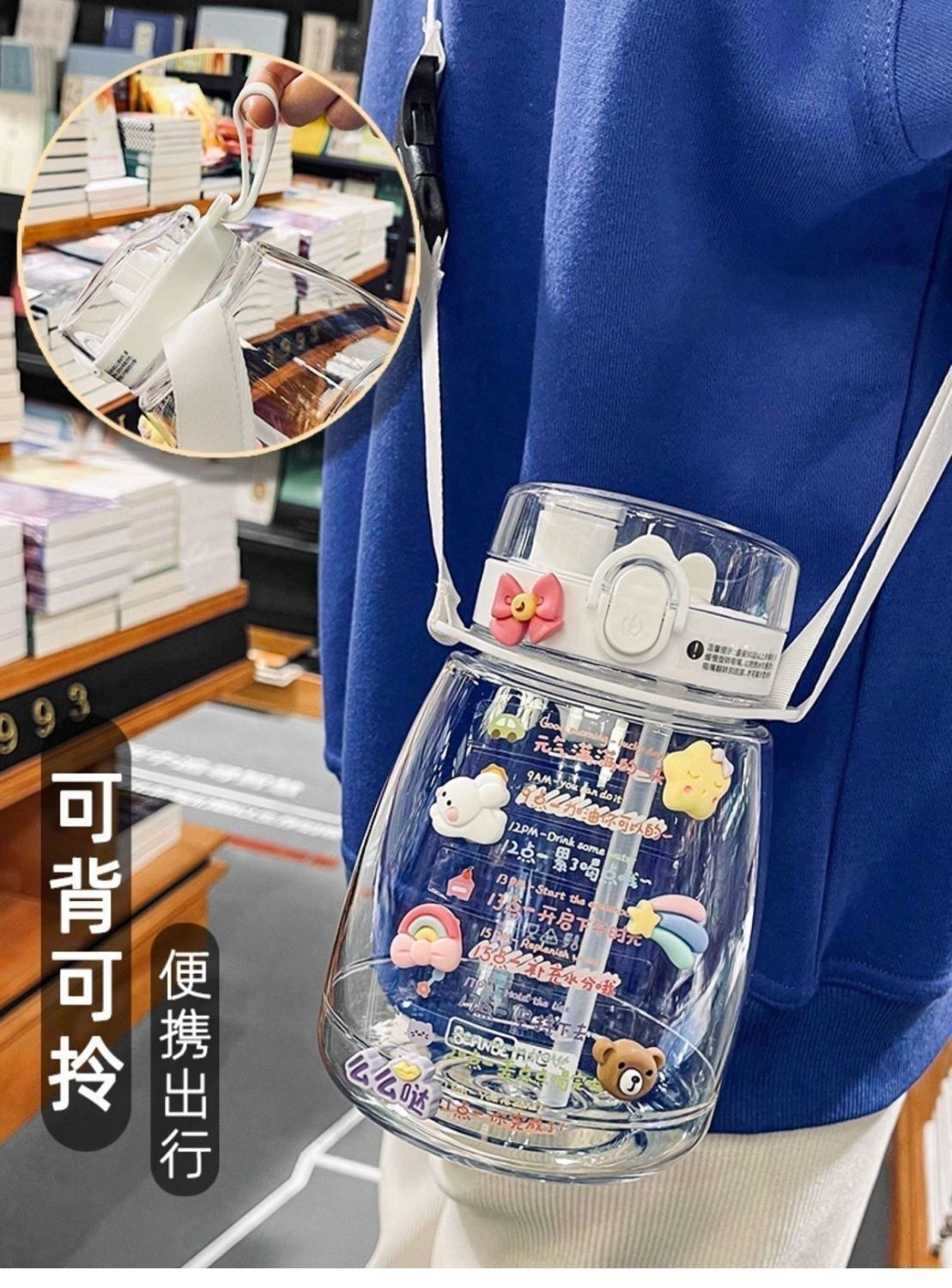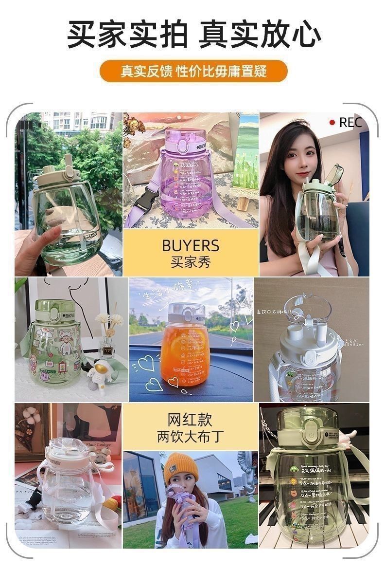 大容量水杯女夏季背带吸管杯高颜值网红大肚杯子便携可爱儿童水壶