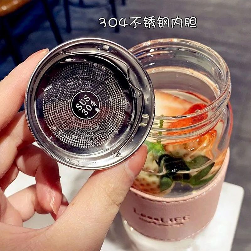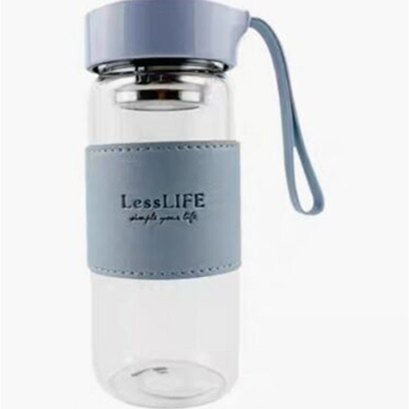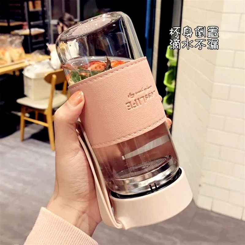 韩版清新耐热玻璃杯女士带提绳便携茶隔泡花茶杯子男商务简约水杯