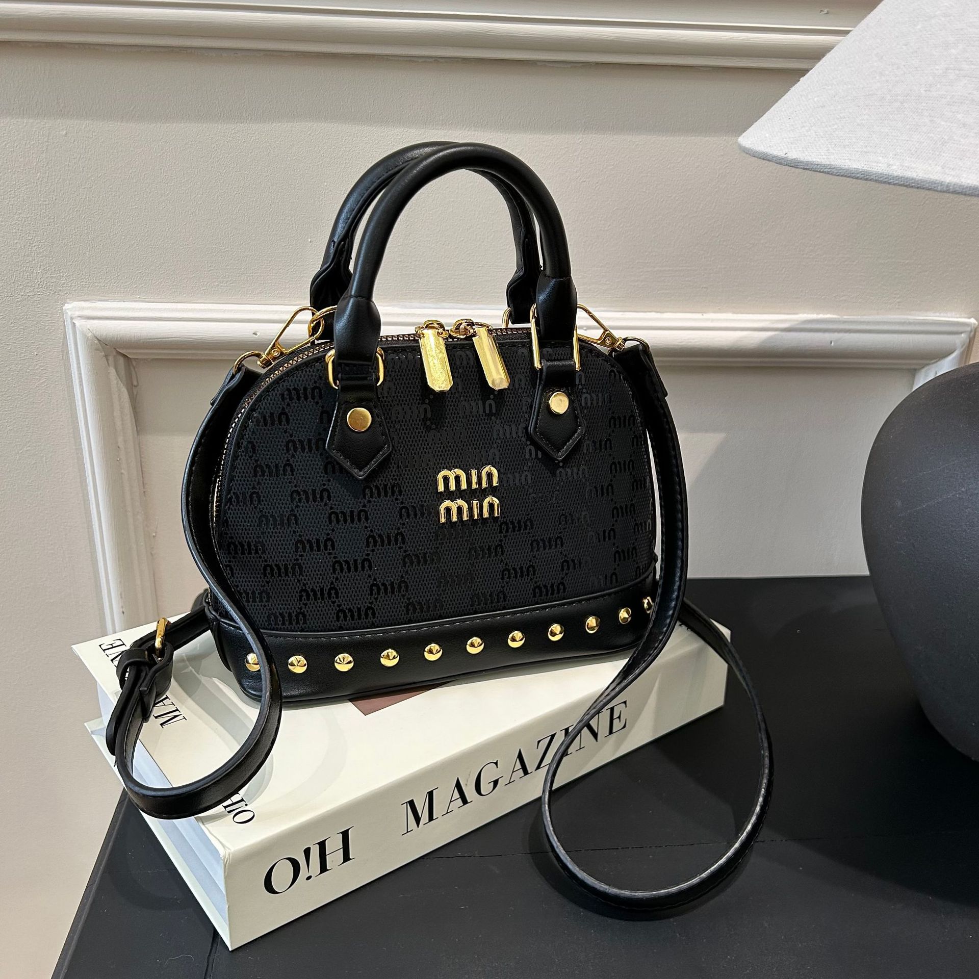 跨境miu贝壳包2025年新款铆钉定型包斜挎跨境潮流小众单肩斜挎包