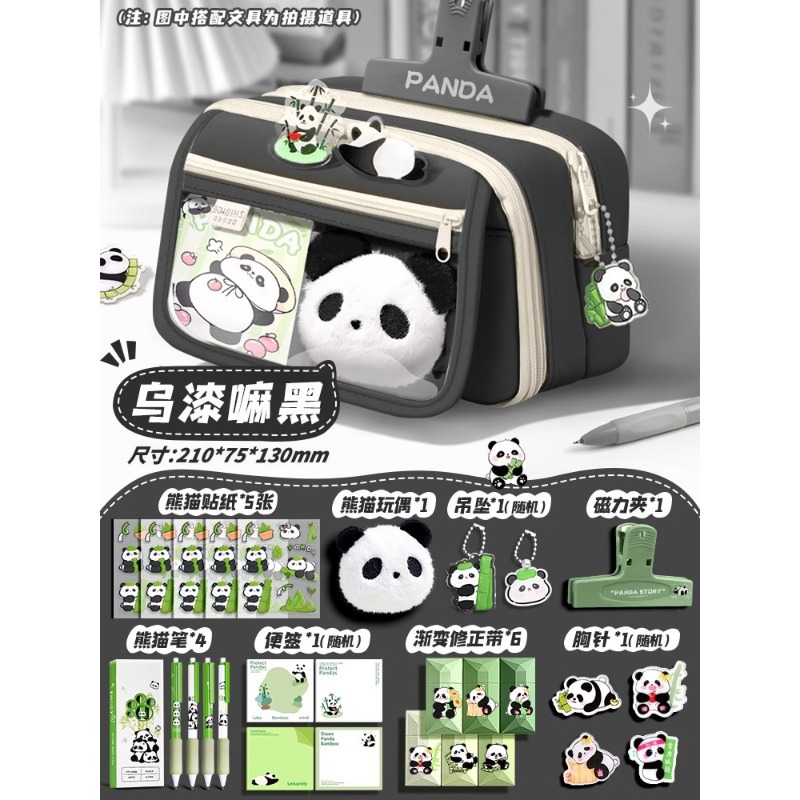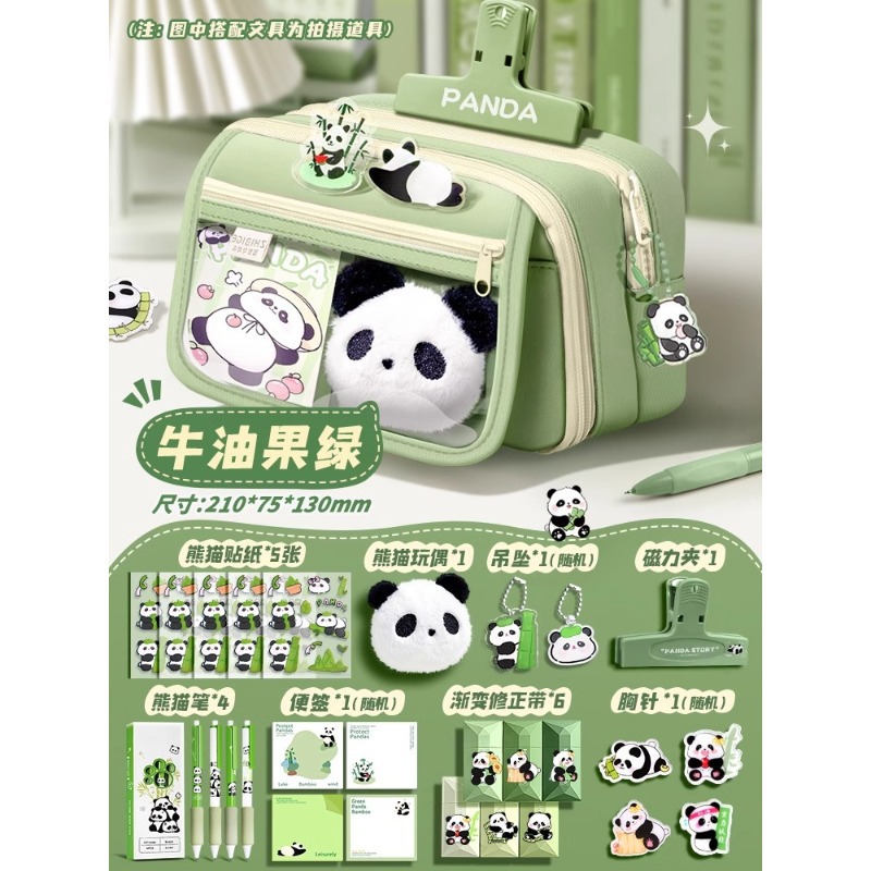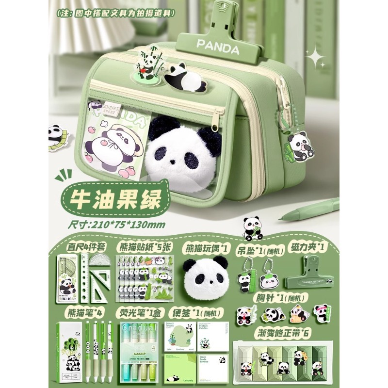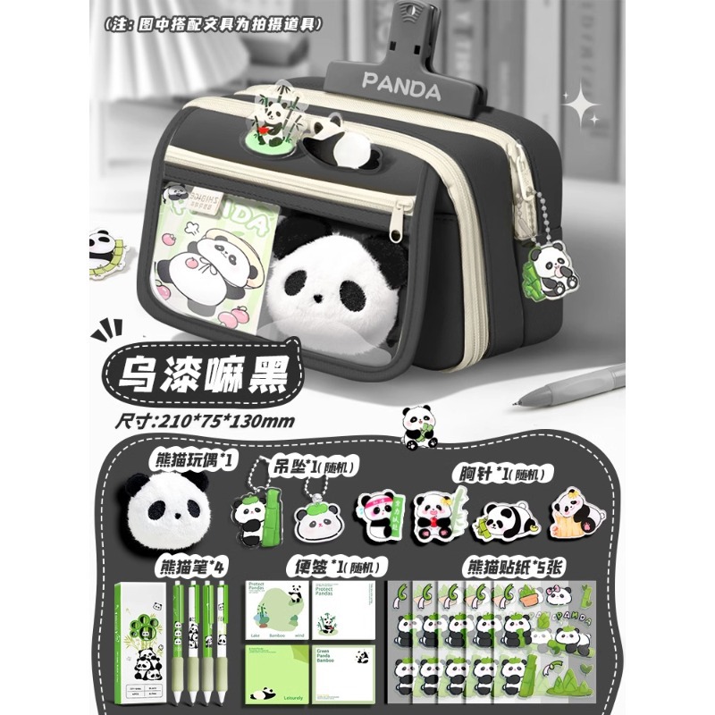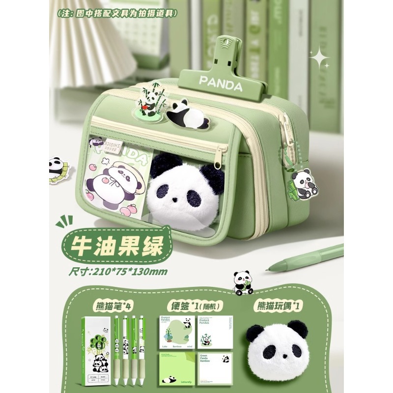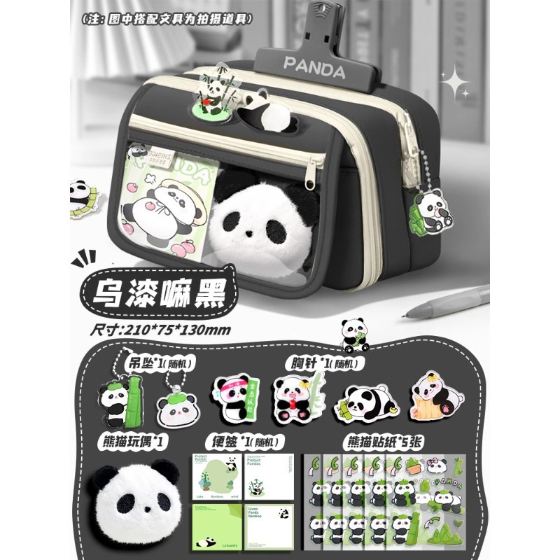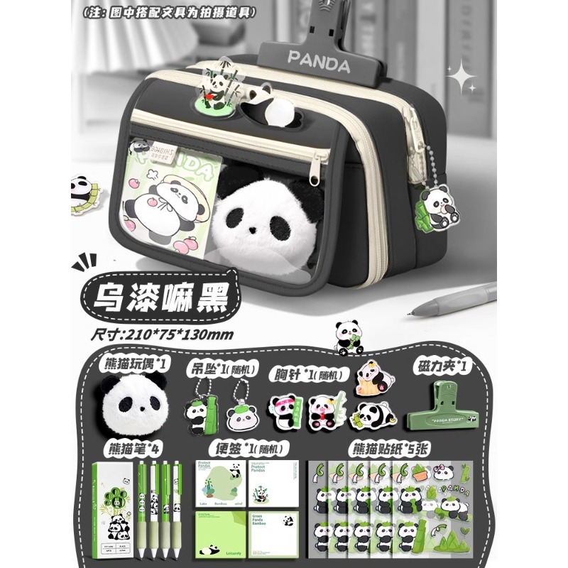 大容量熊猫笔袋高颜值文具袋女生文具盒套装男生小学生初中铅笔盒
