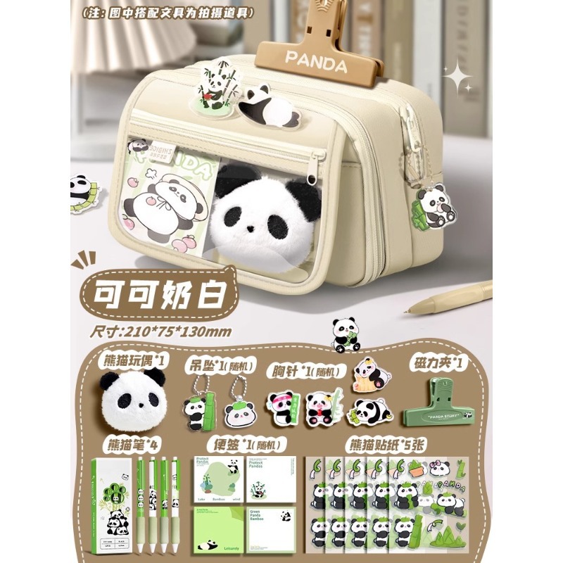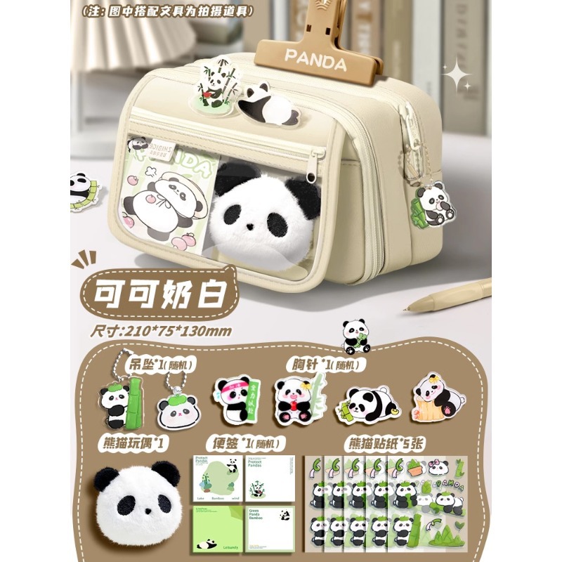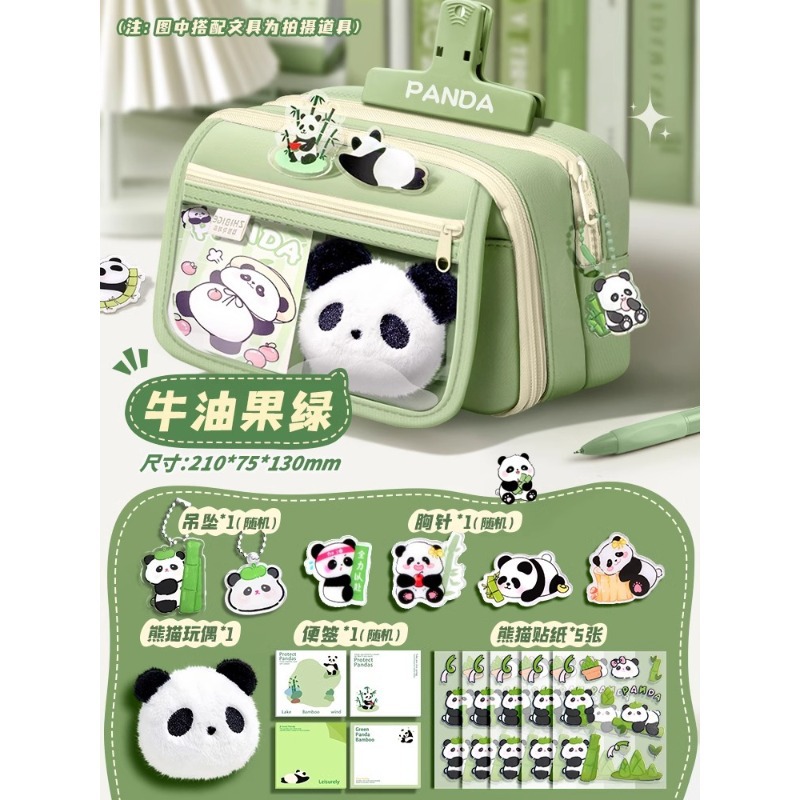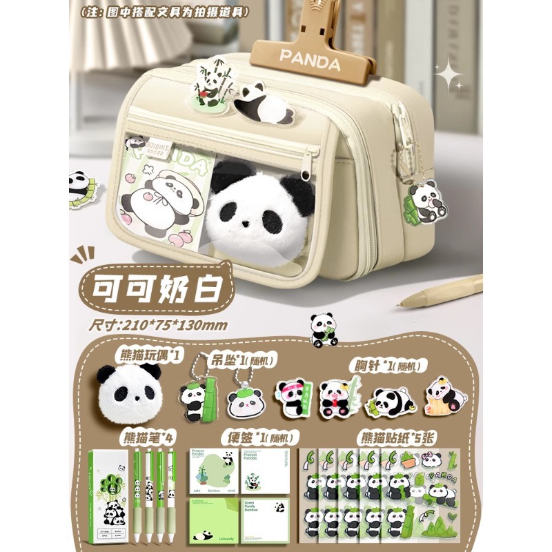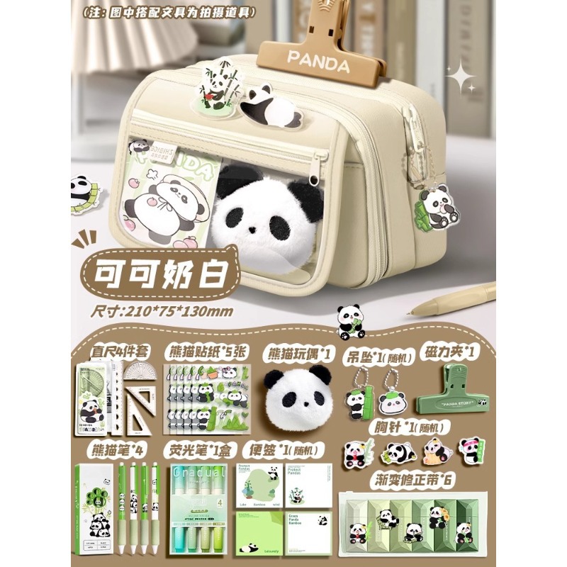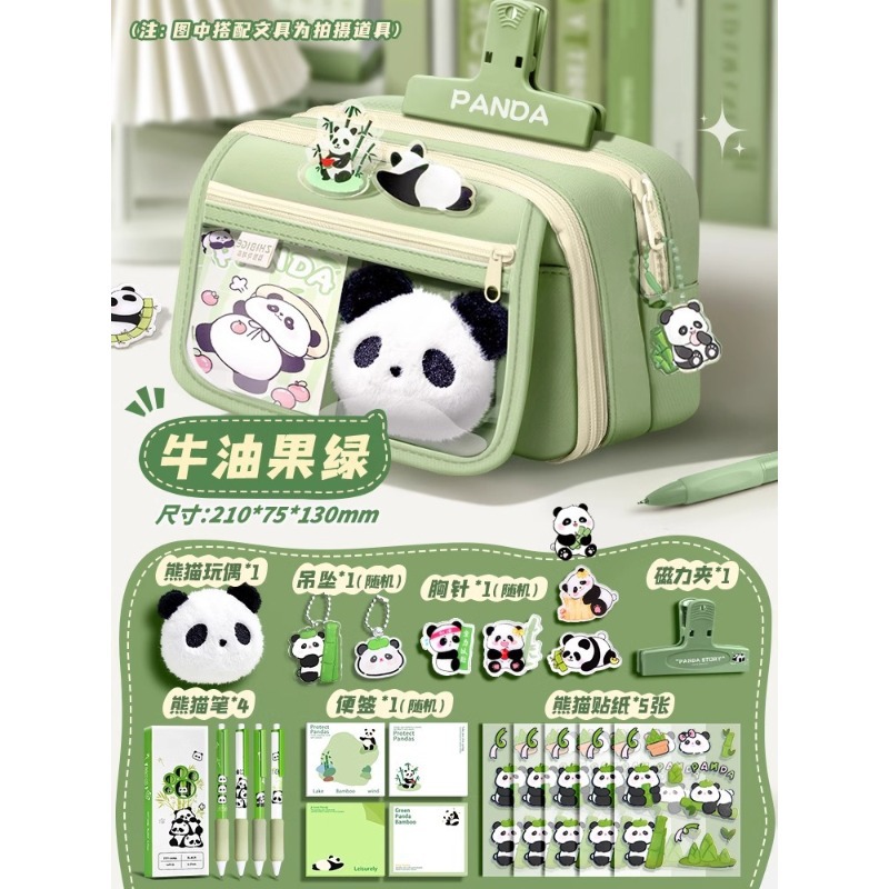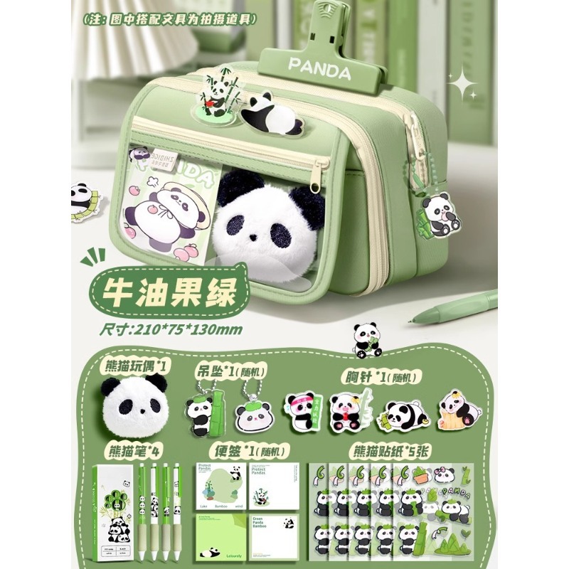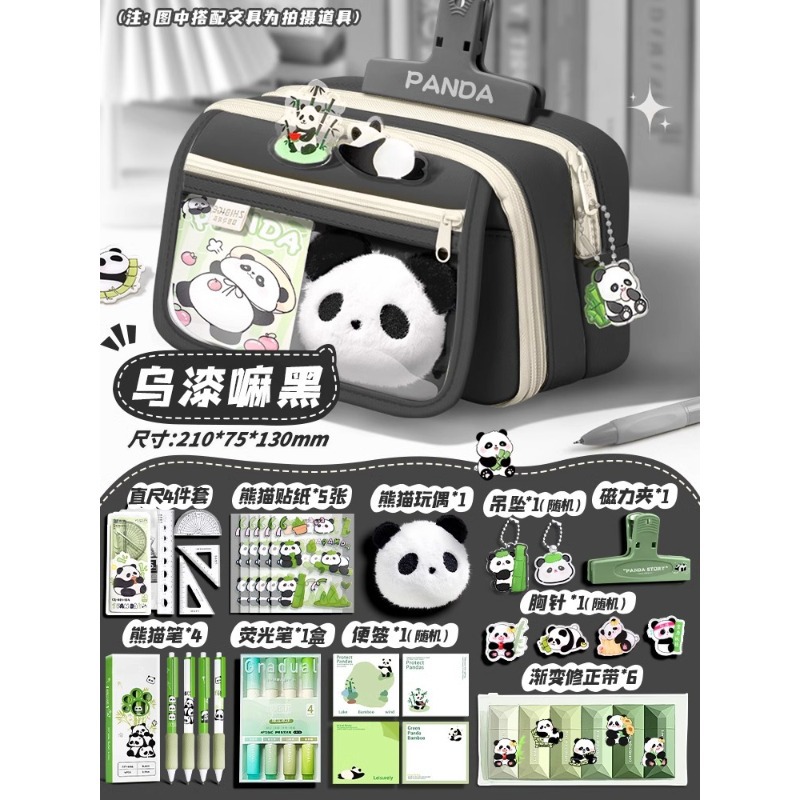 大容量熊猫笔袋高颜值文具袋女生文具盒套装男生小学生初中铅笔盒