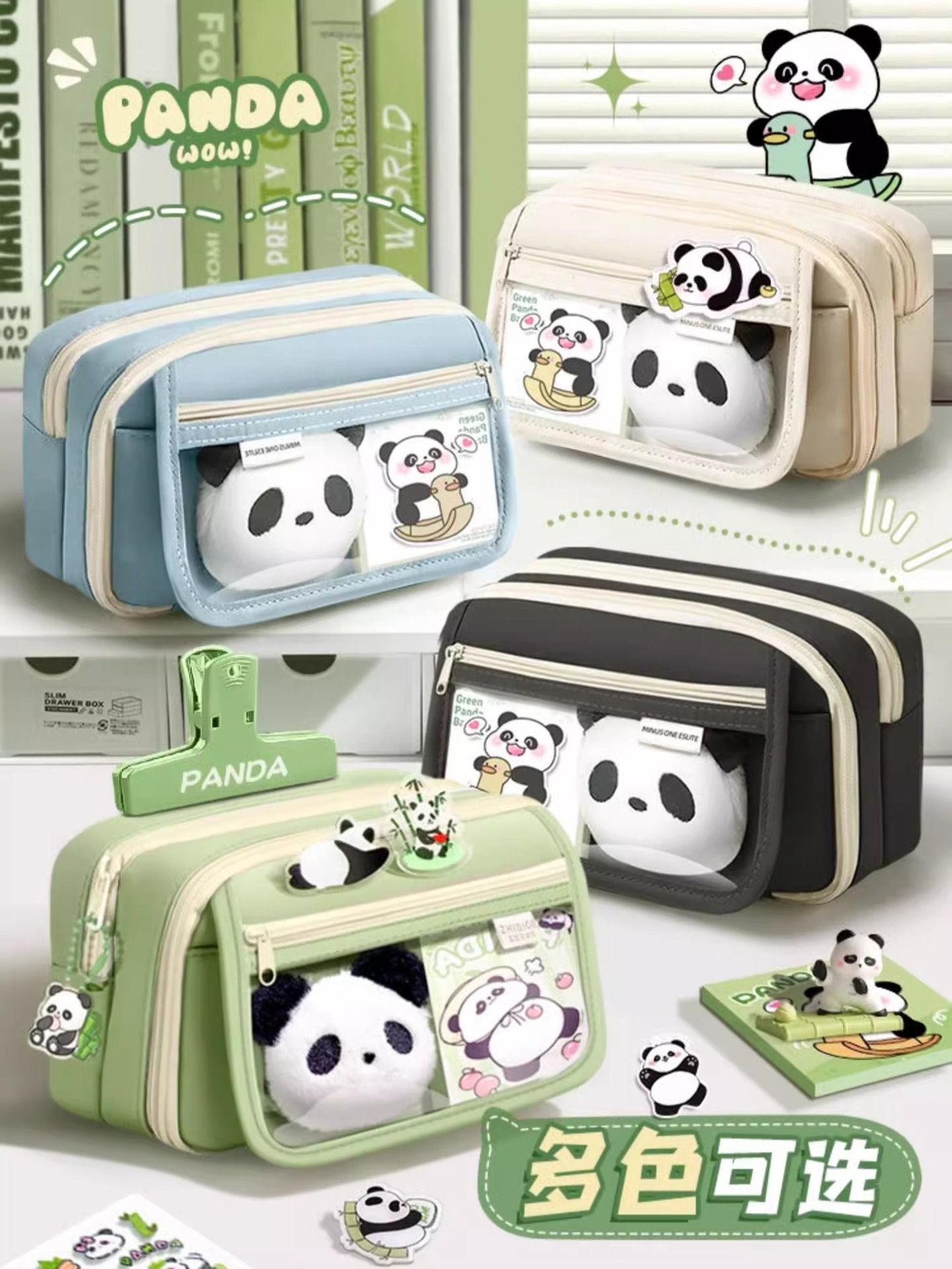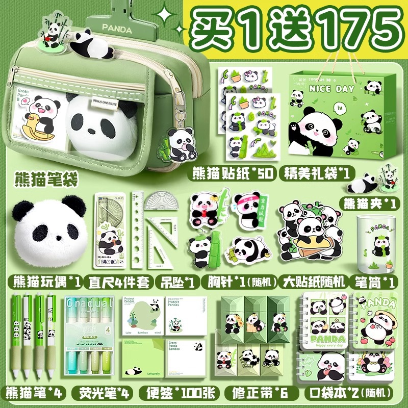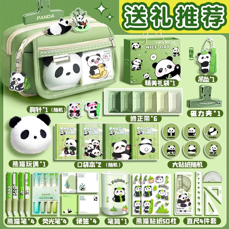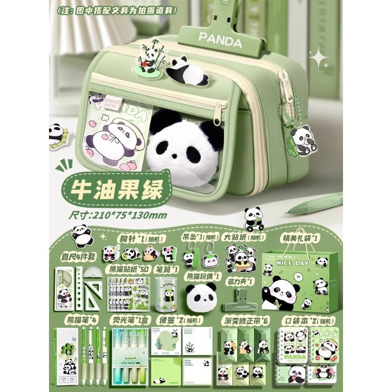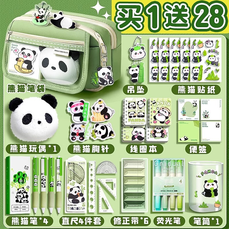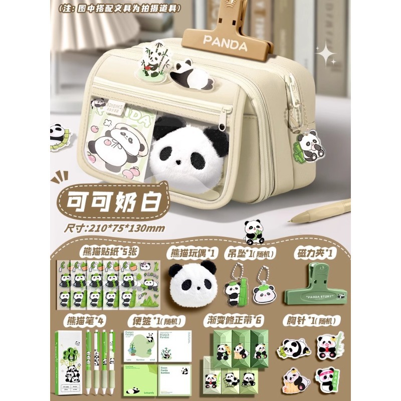 大容量熊猫笔袋高颜值文具袋女生文具盒套装男生小学生初中铅笔盒