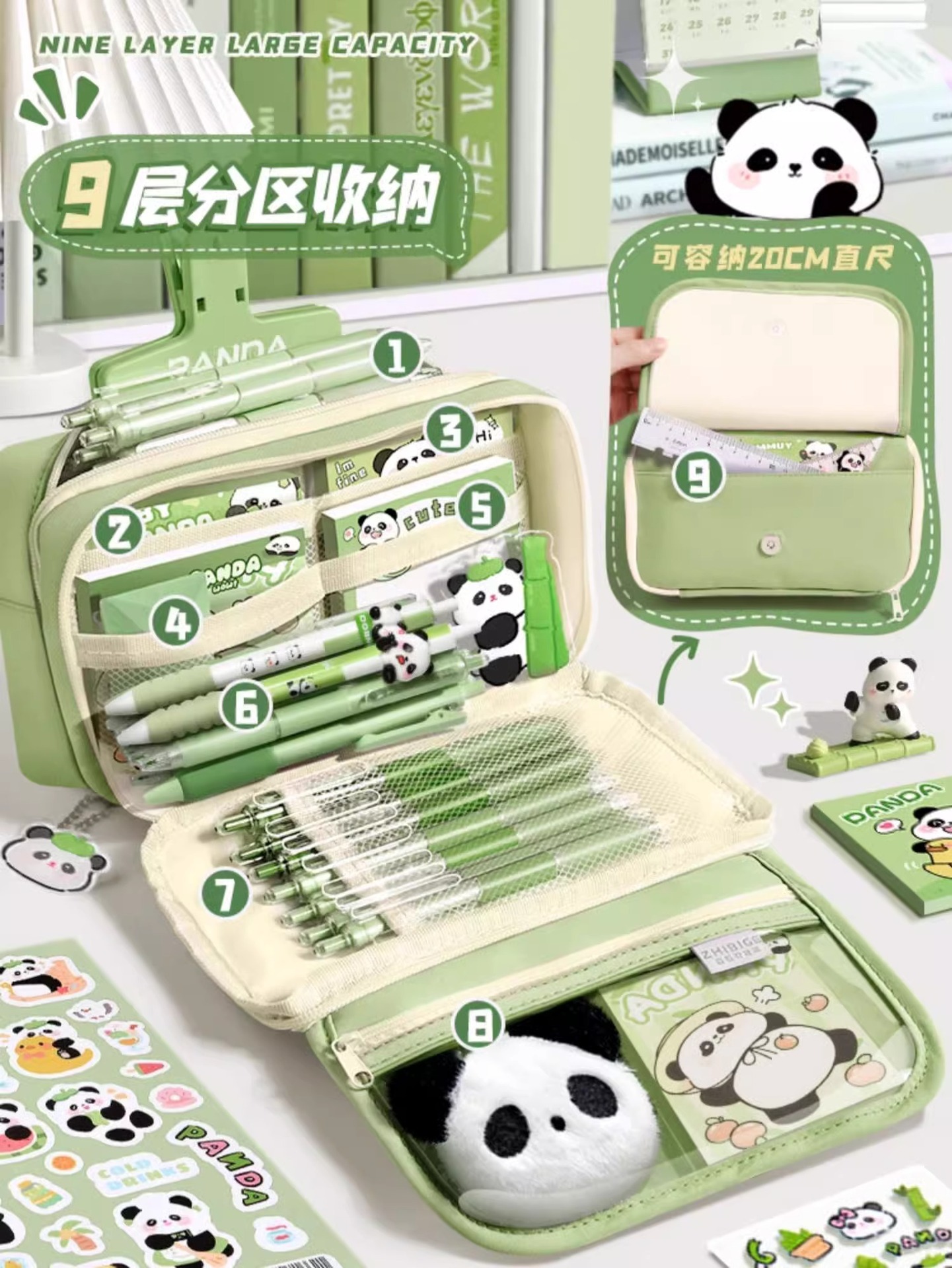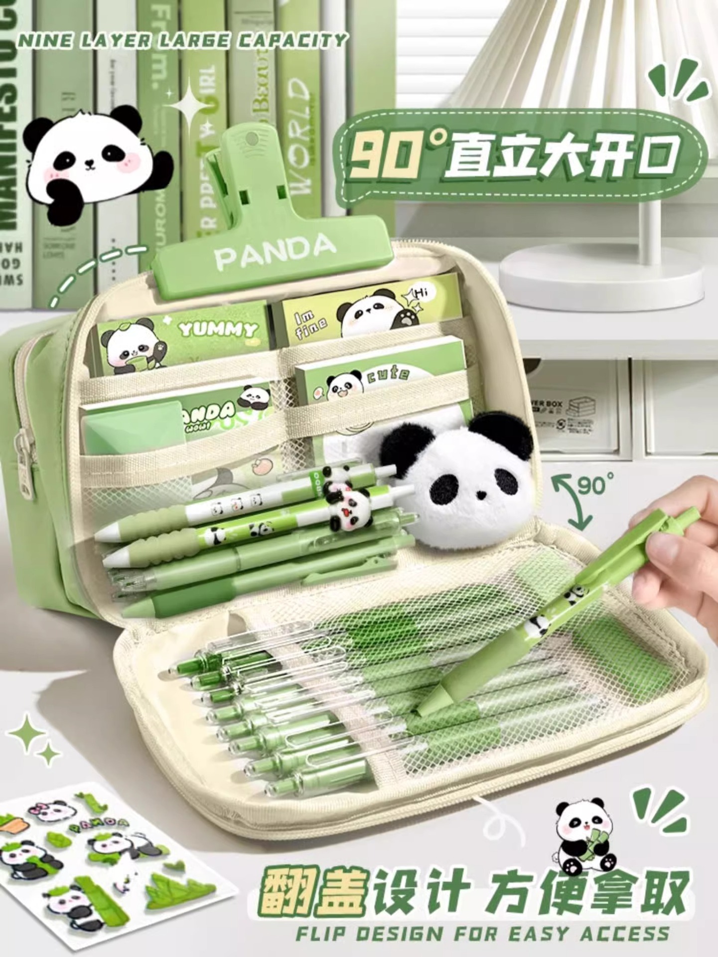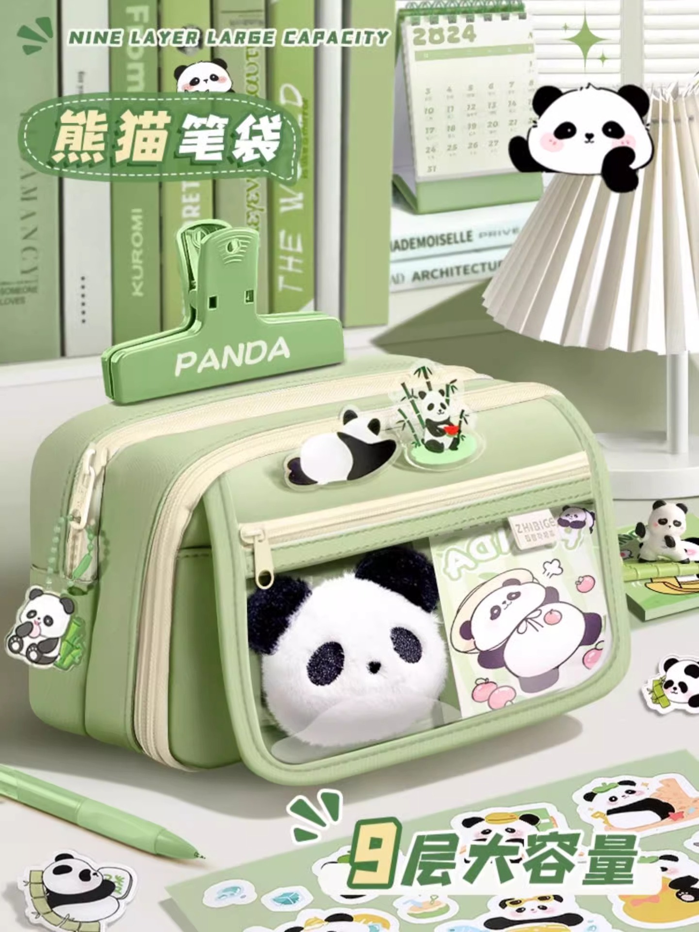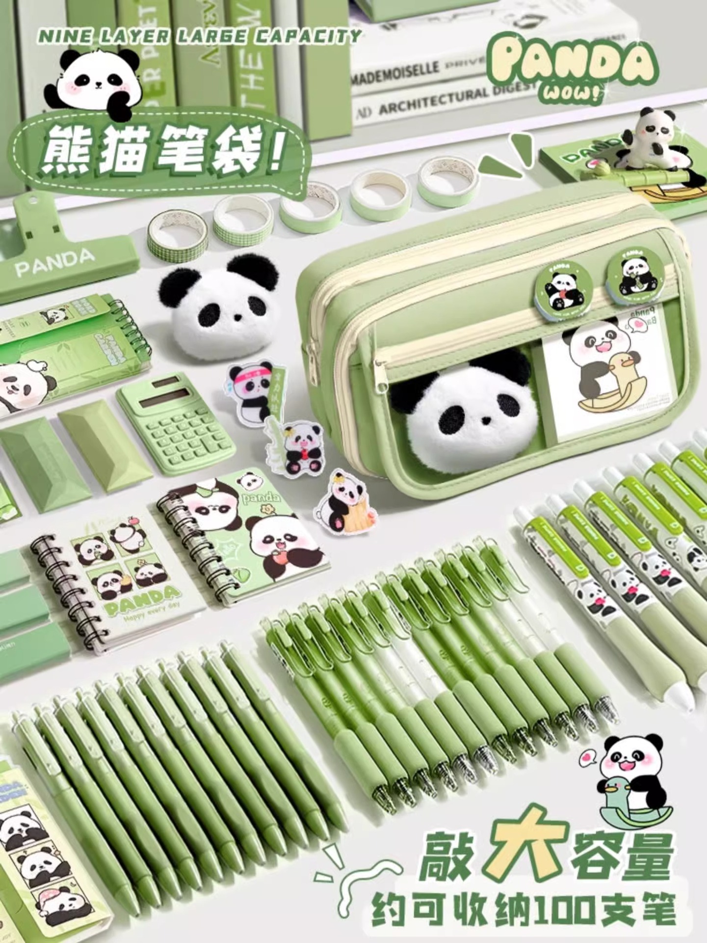 大容量熊猫笔袋高颜值文具袋女生文具盒套装男生小学生初中铅笔盒