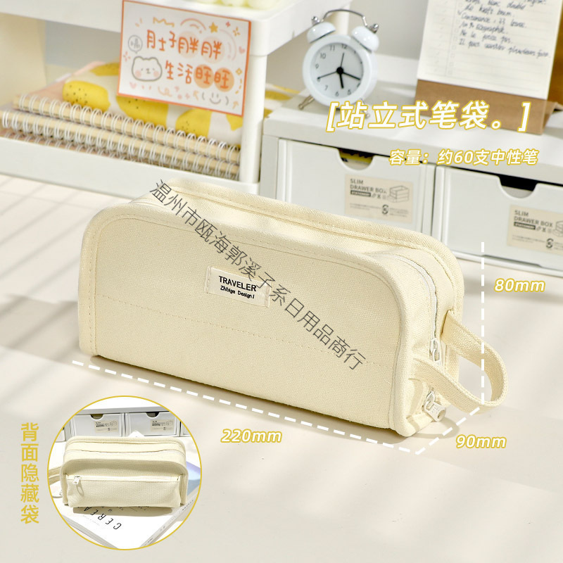 帆布笔袋大容量女孩简约日系初中女生男生铅笔盒小学生可立式多