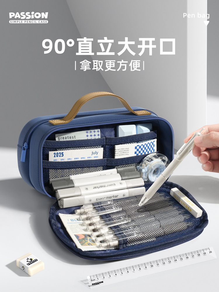 快力文2025新款笔袋男孩简约文具盒复古笔袋大容量初高中生专用