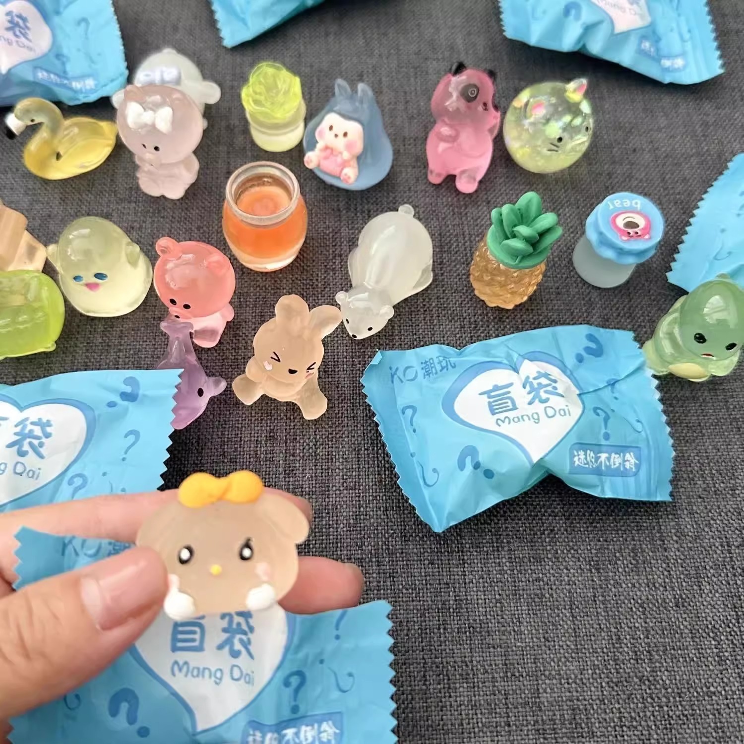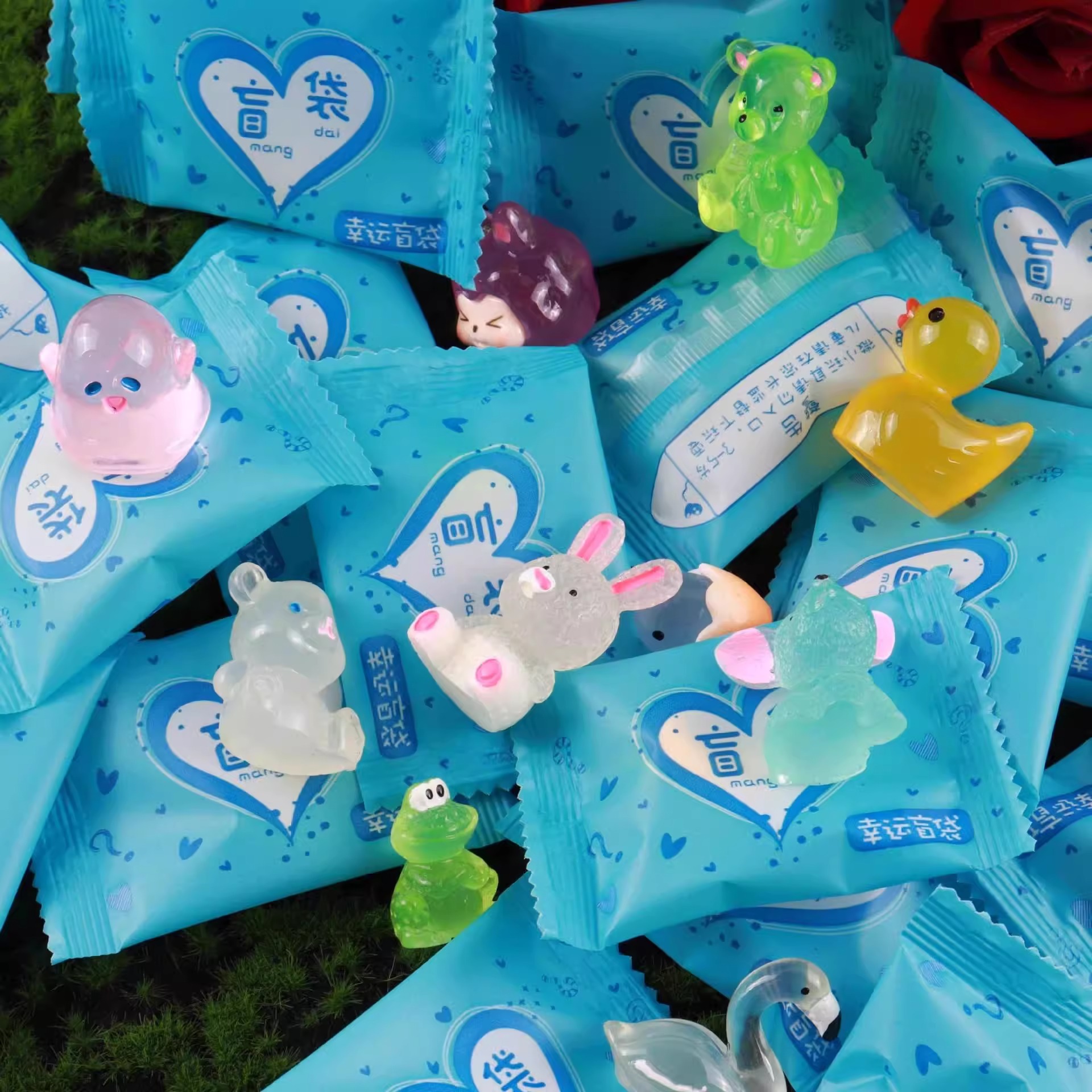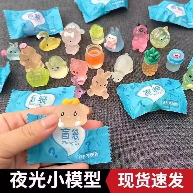 可爱夜光动物盲袋迷你仿真兔子小猫模型儿童玩具盲盒奖励礼物发光