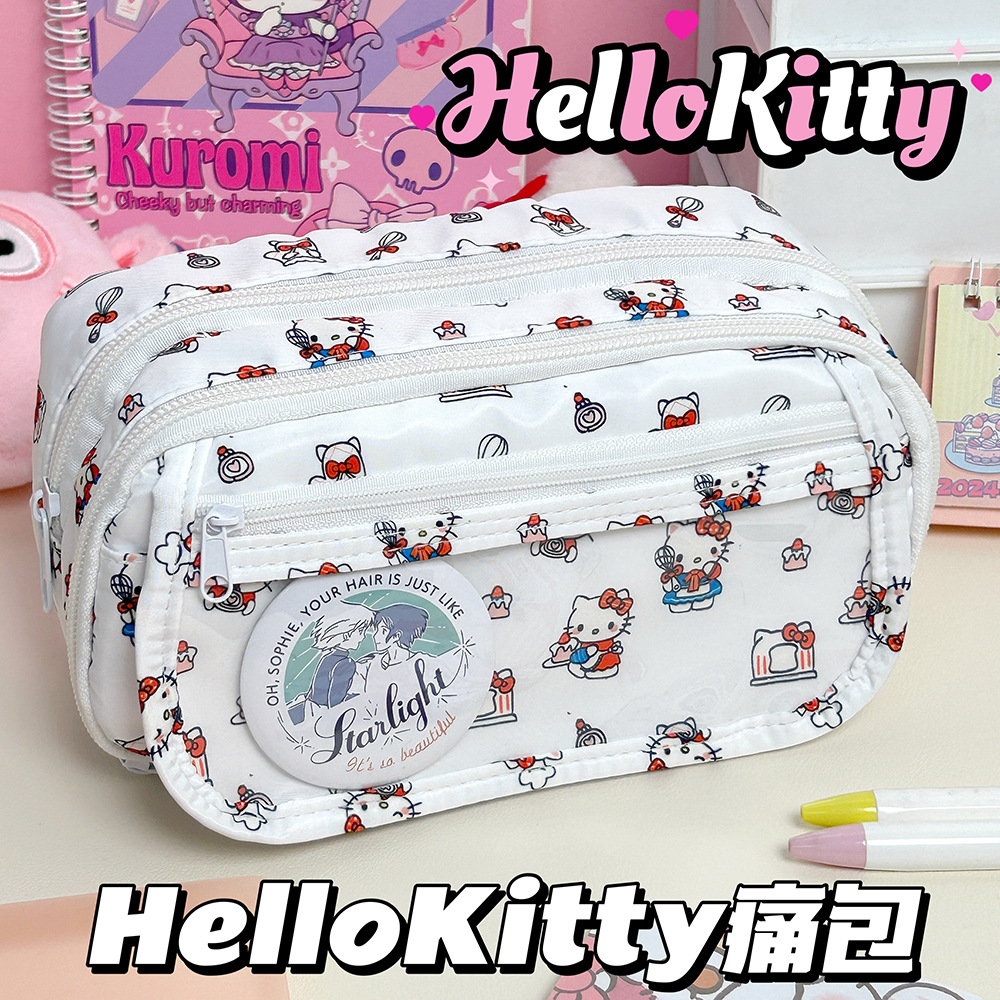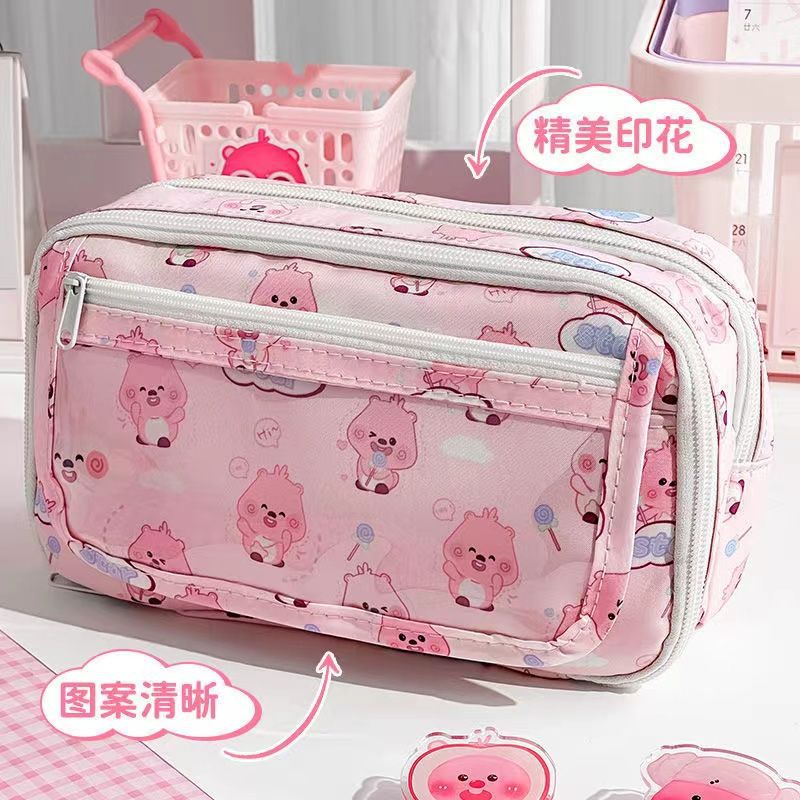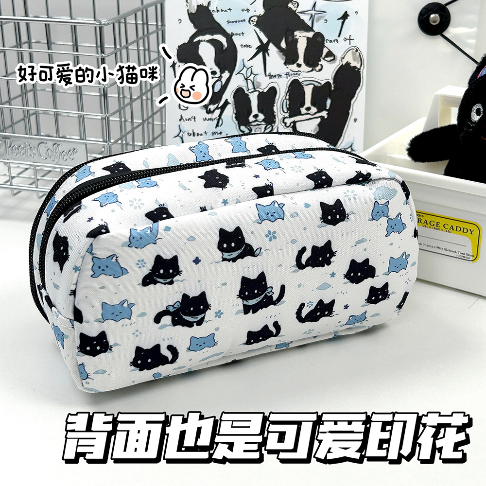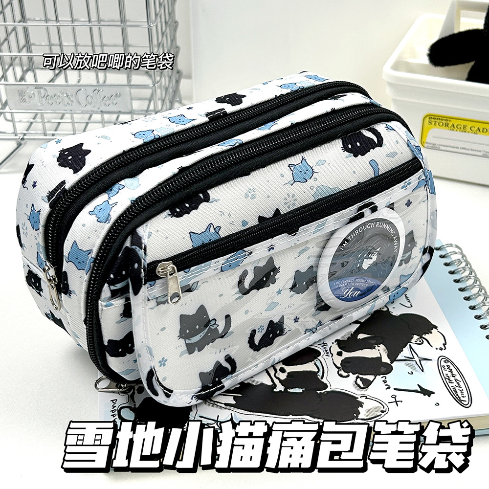 新款卡通雪地小猫痛包笔袋ins高颜值大容量可视窗学生文具收纳袋