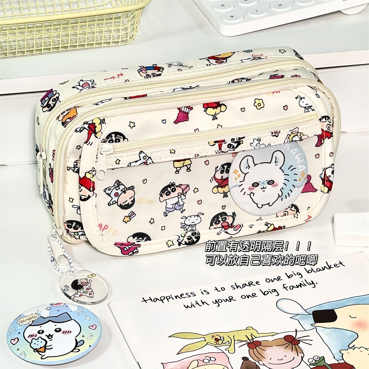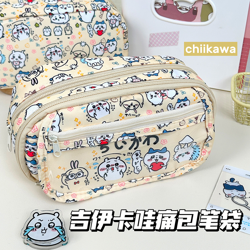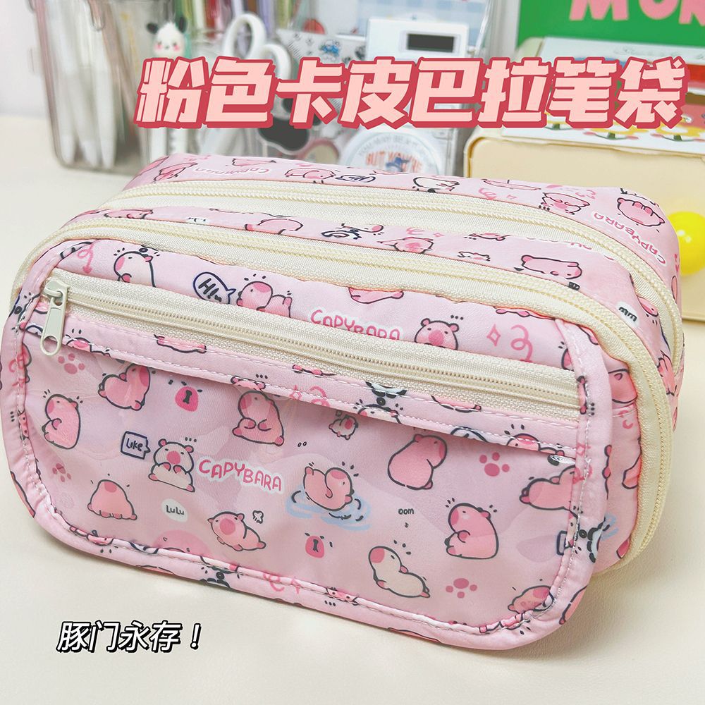 新款卡通雪地小猫痛包笔袋ins高颜值大容量可视窗学生文具收纳袋