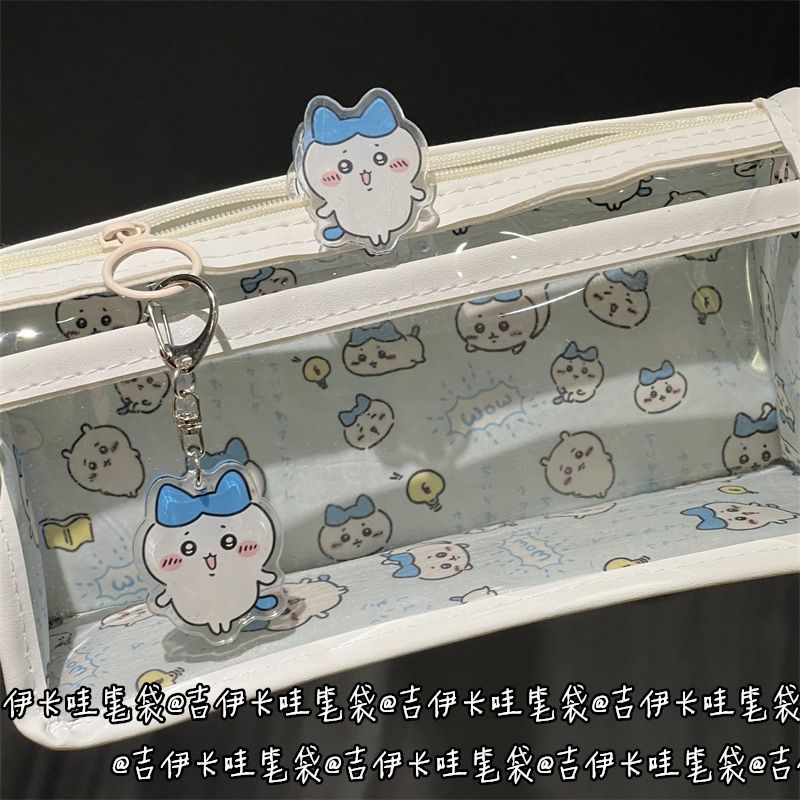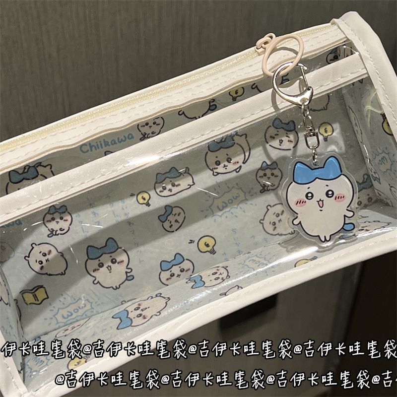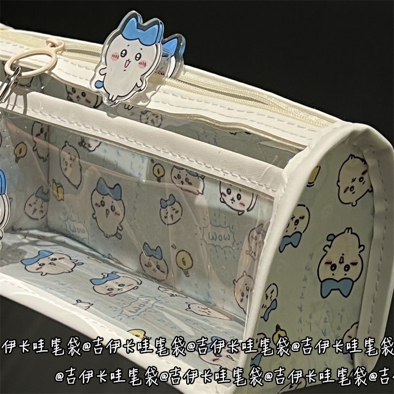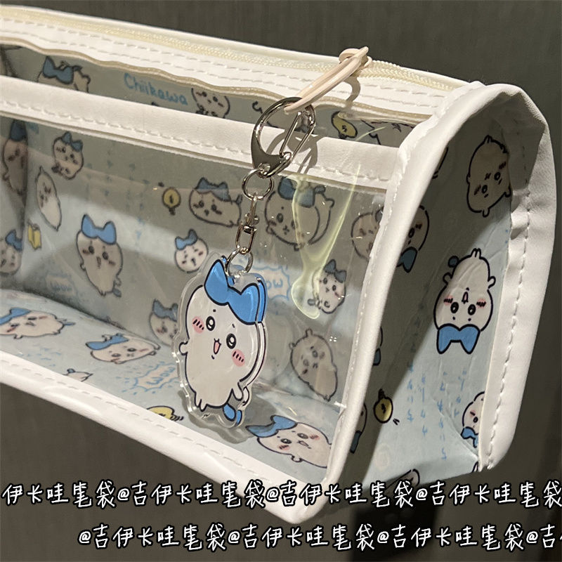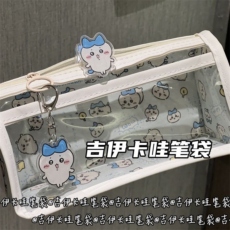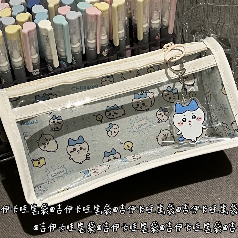 蓝色吉伊卡哇双层透明笔袋高颜值少女心大容量可爱学生文具收纳袋