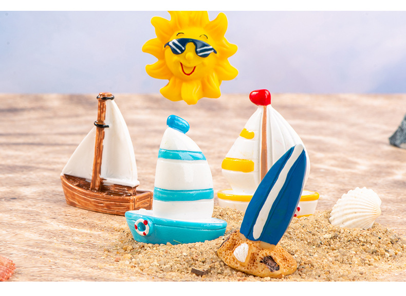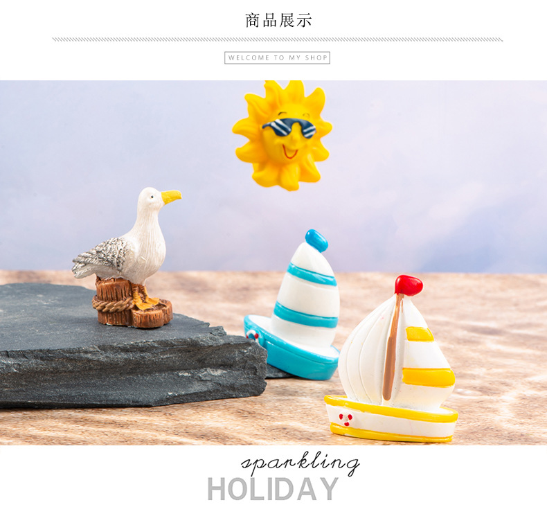微景观海边系列地中海风格摆小件冲浪板海鸟海豚帆船场景配件