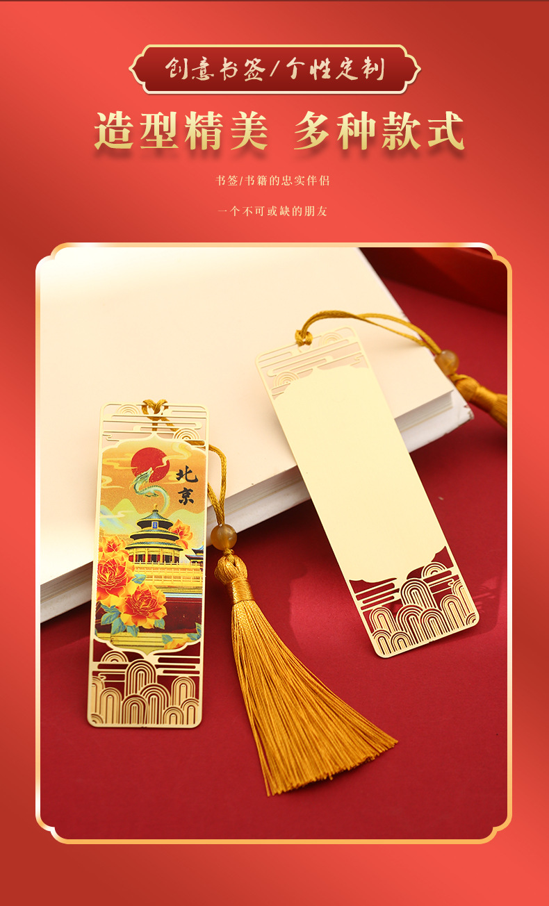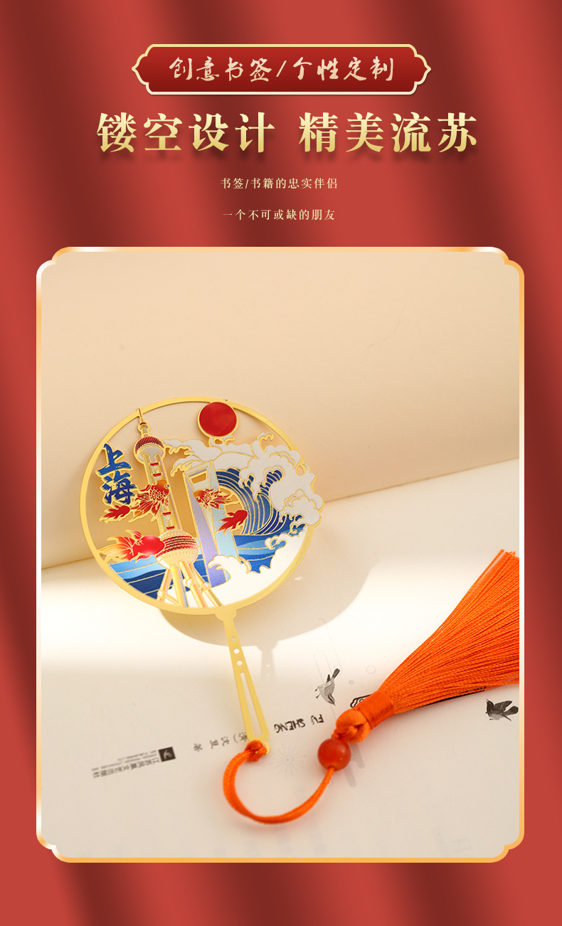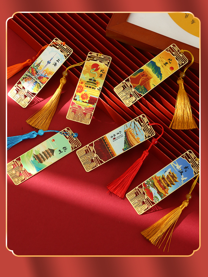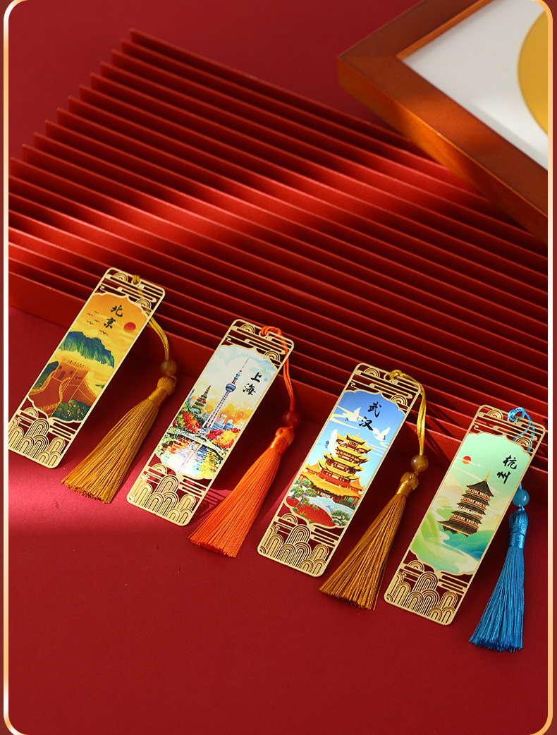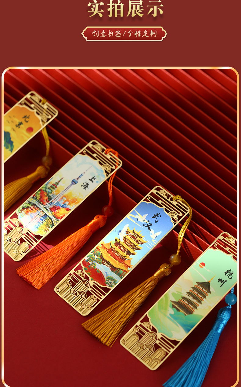 厂家现货镂空文创城市地标金属书签烤漆创意国风毕业纪念旅游挂件