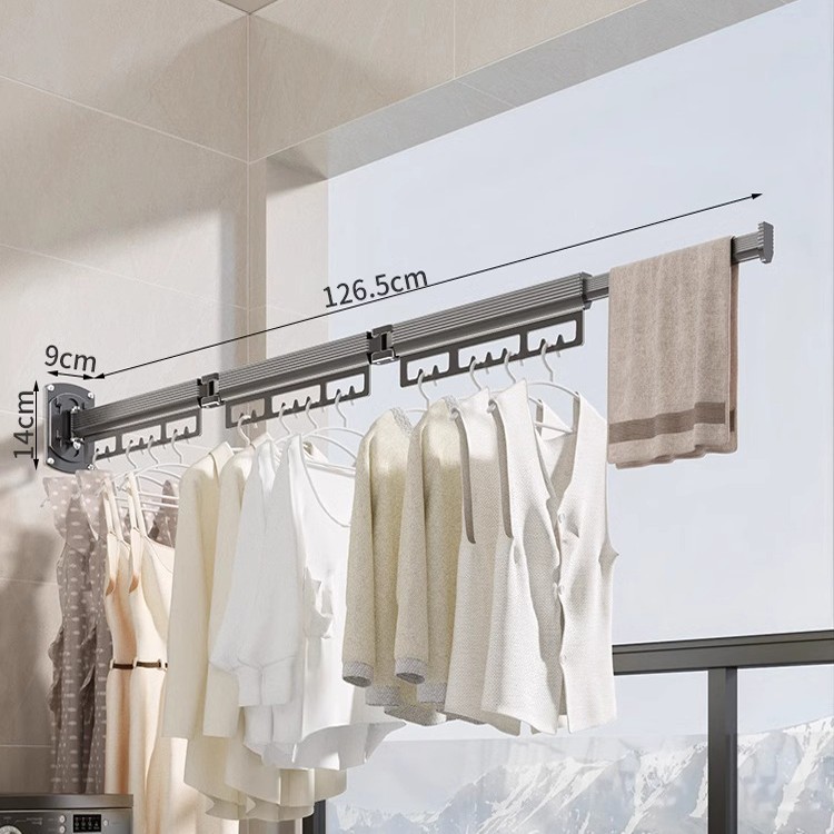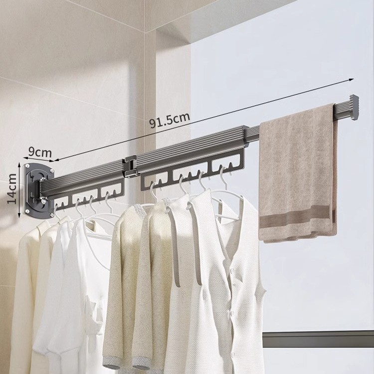 免打孔折叠晾衣架阳台家用壁挂隐形收缩晾衣杆伸缩神器晾晒隐型