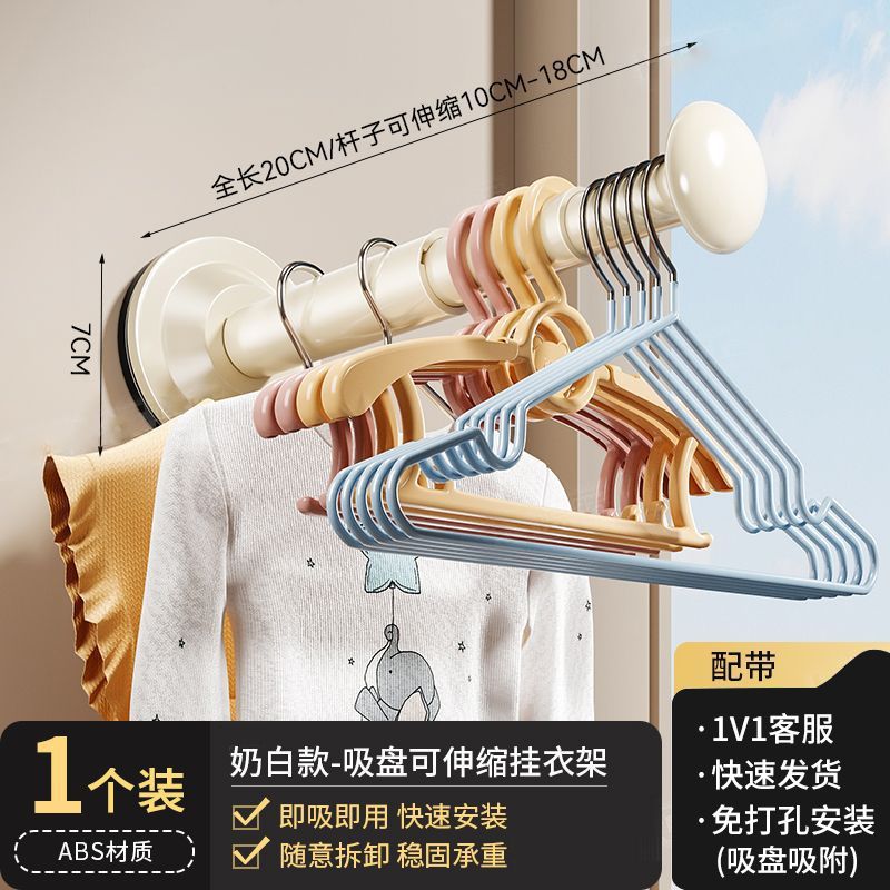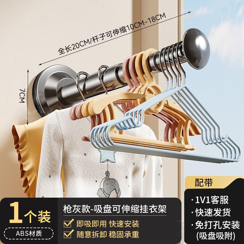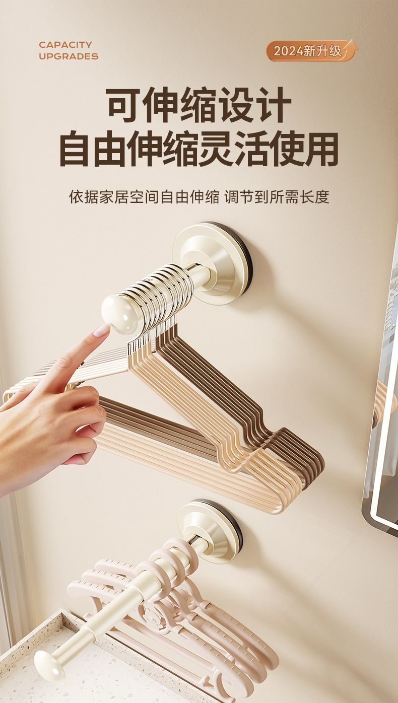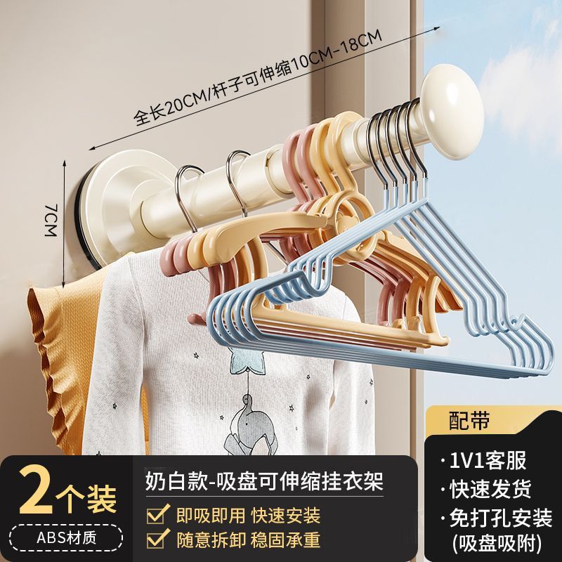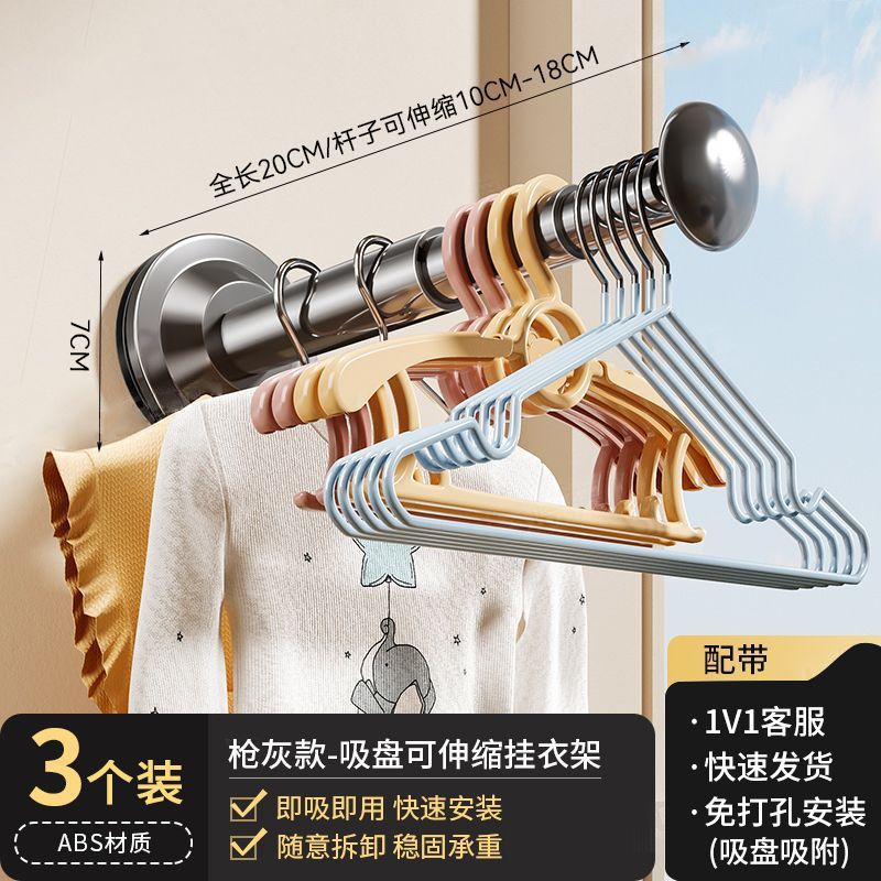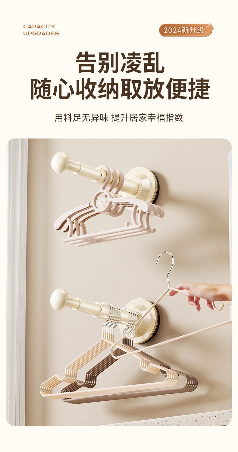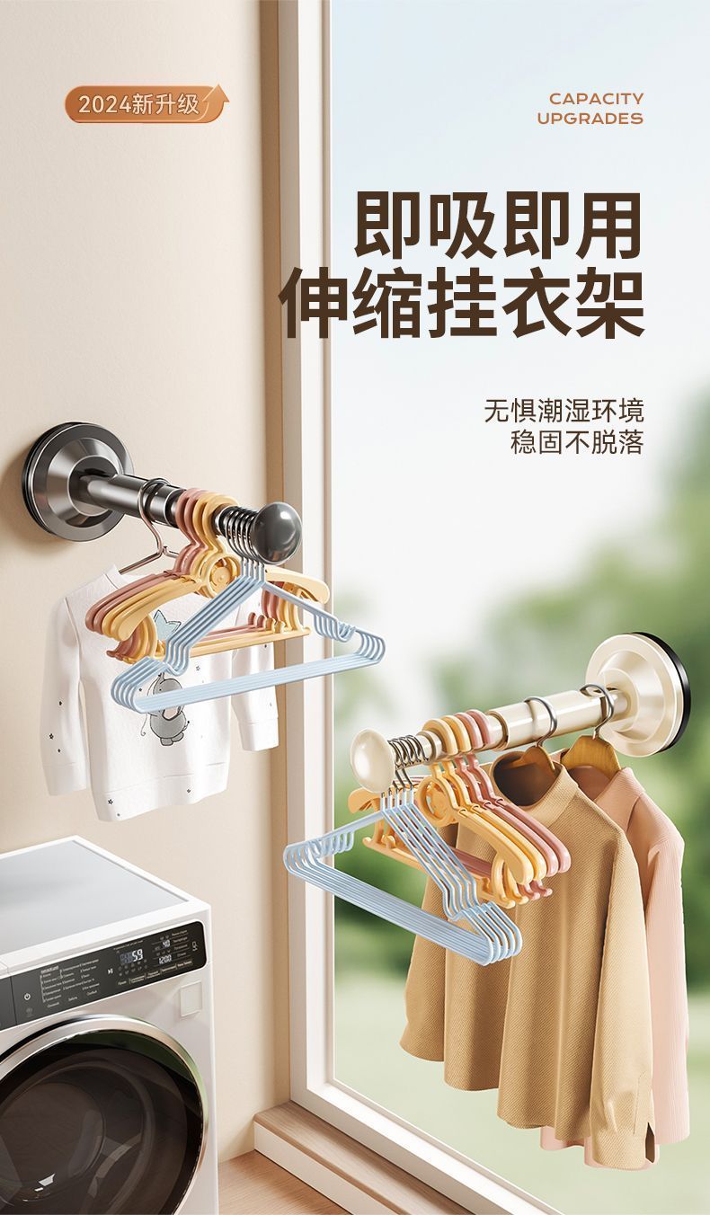 折叠吸盘衣架挂杆收纳架无痕免打孔可伸缩杆家用阳台壁挂式晾衣架