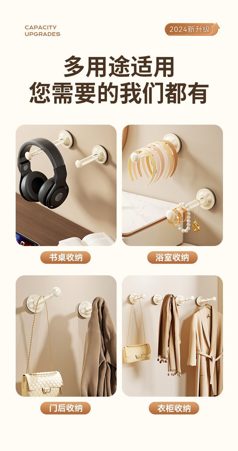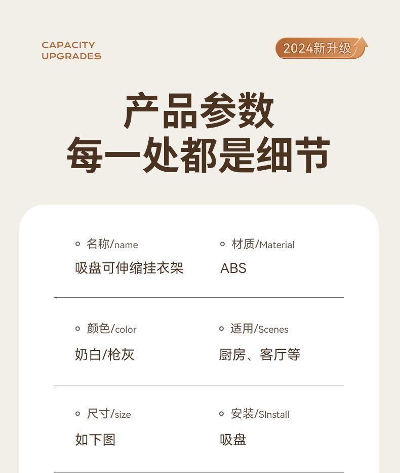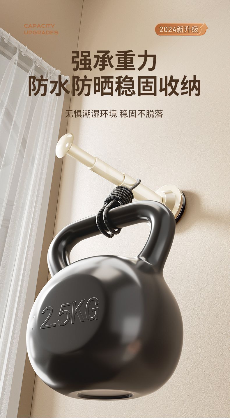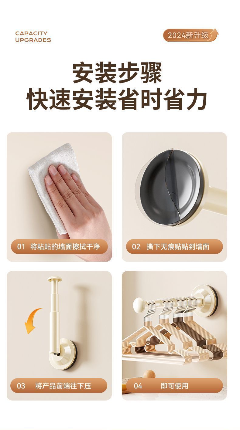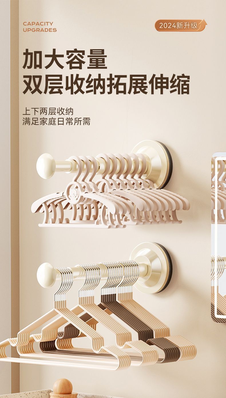 折叠吸盘衣架挂杆收纳架无痕免打孔可伸缩杆家用阳台壁挂式晾衣架