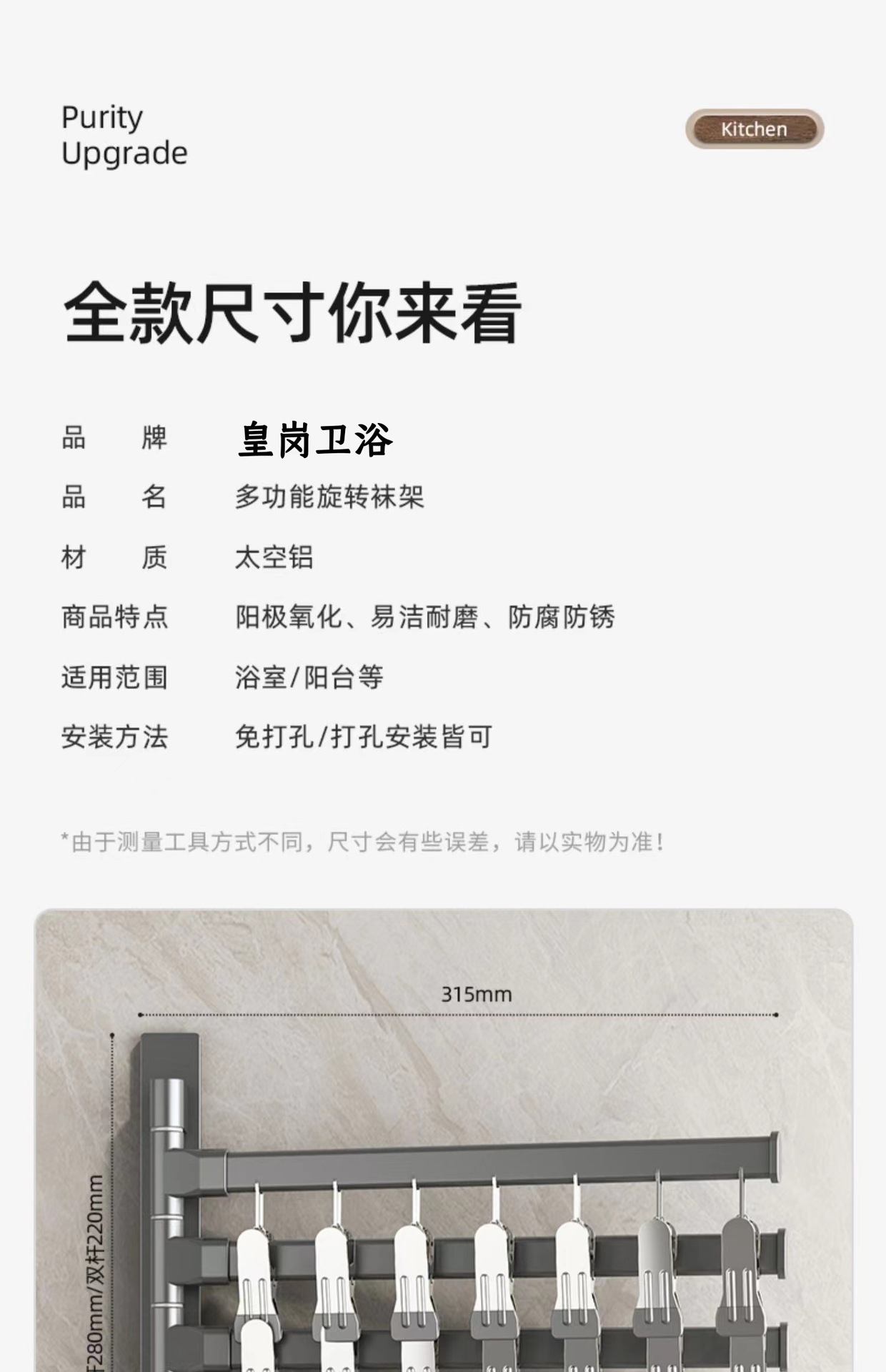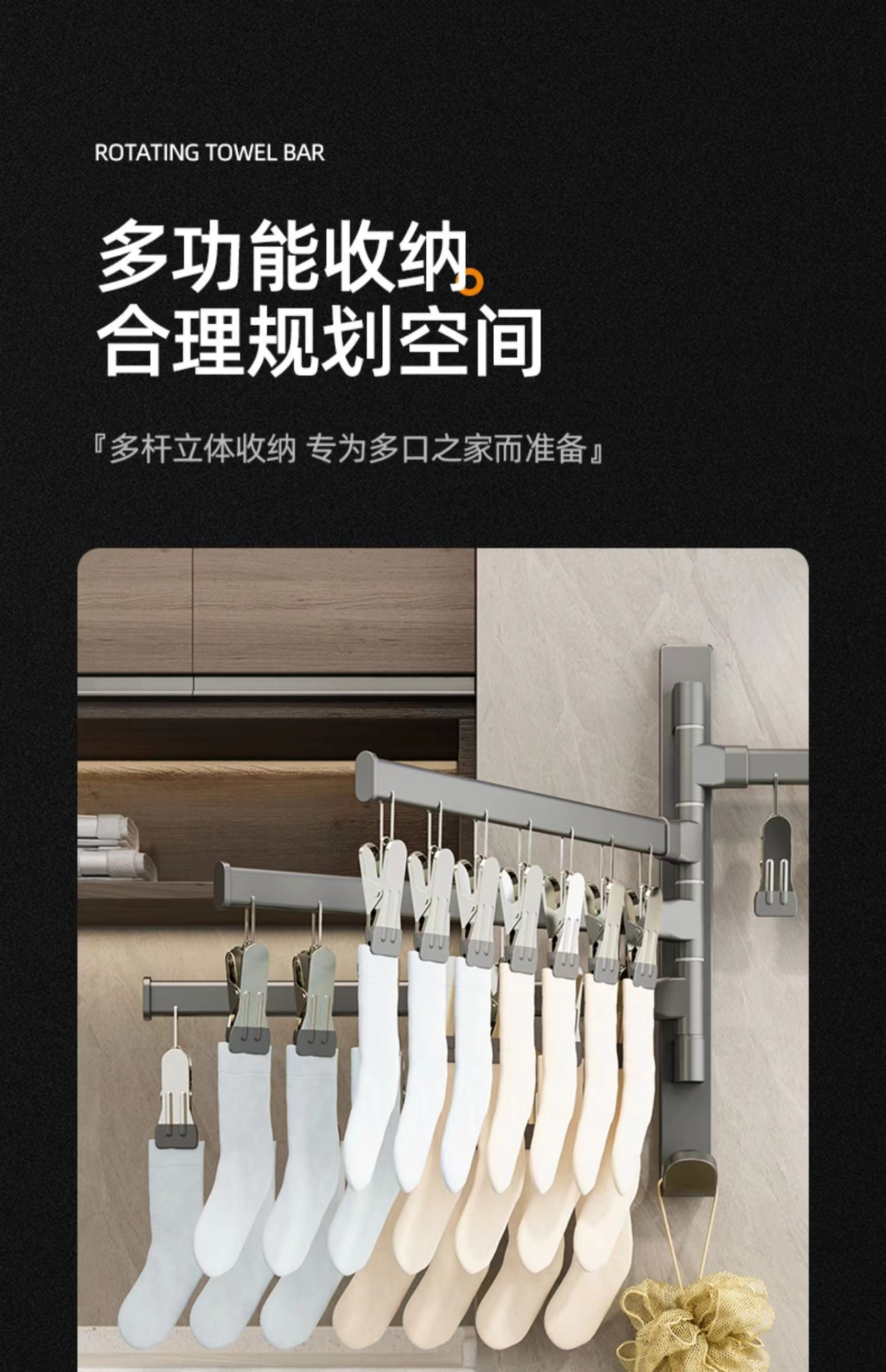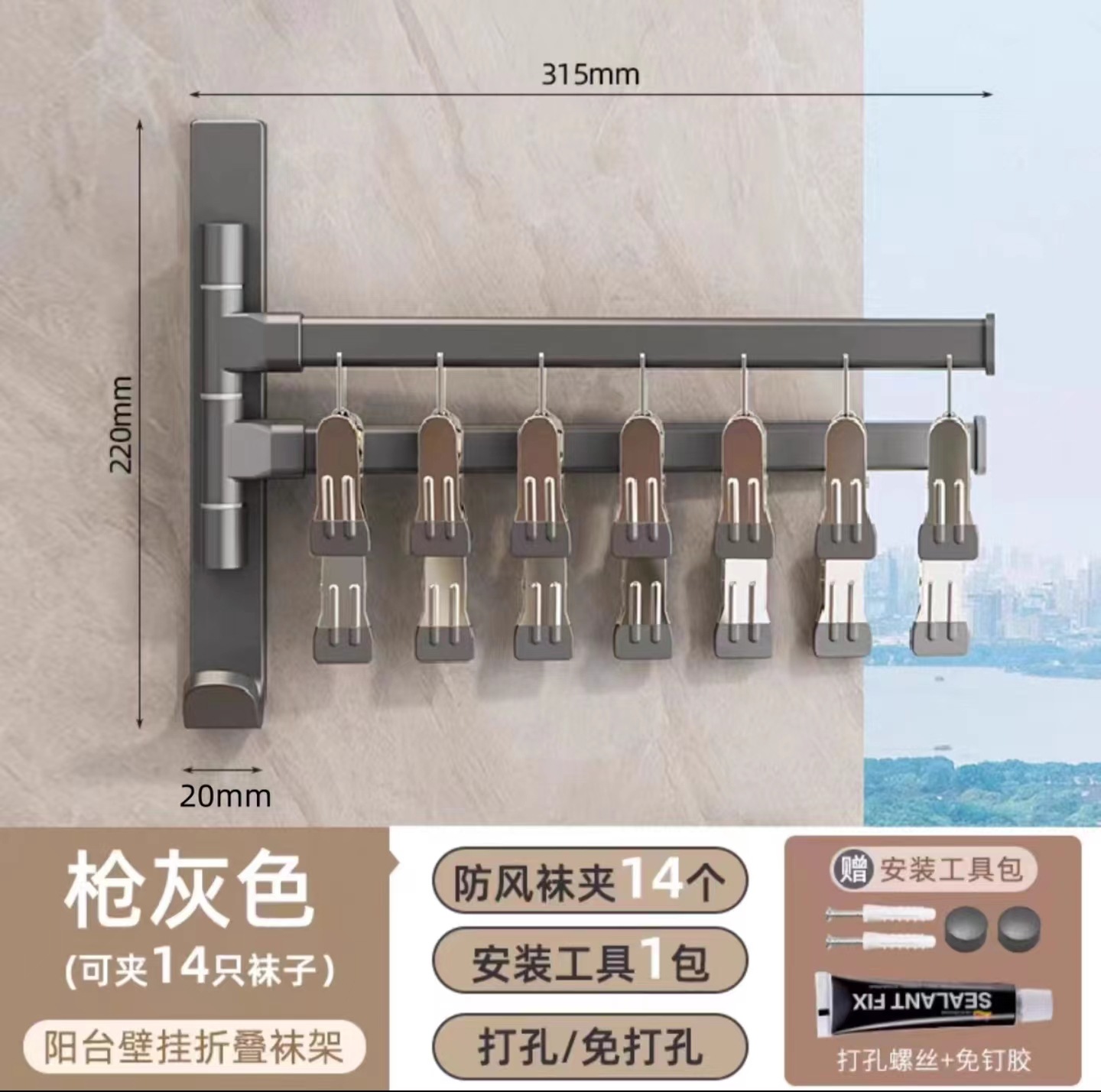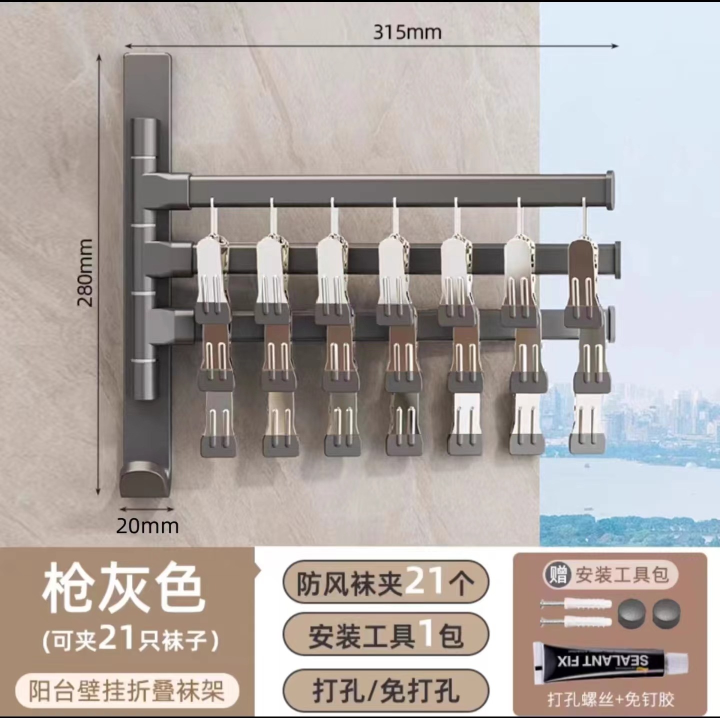 (1)、此款为壁挂折叠袜子架,可以打孔/免打孔双用安装。