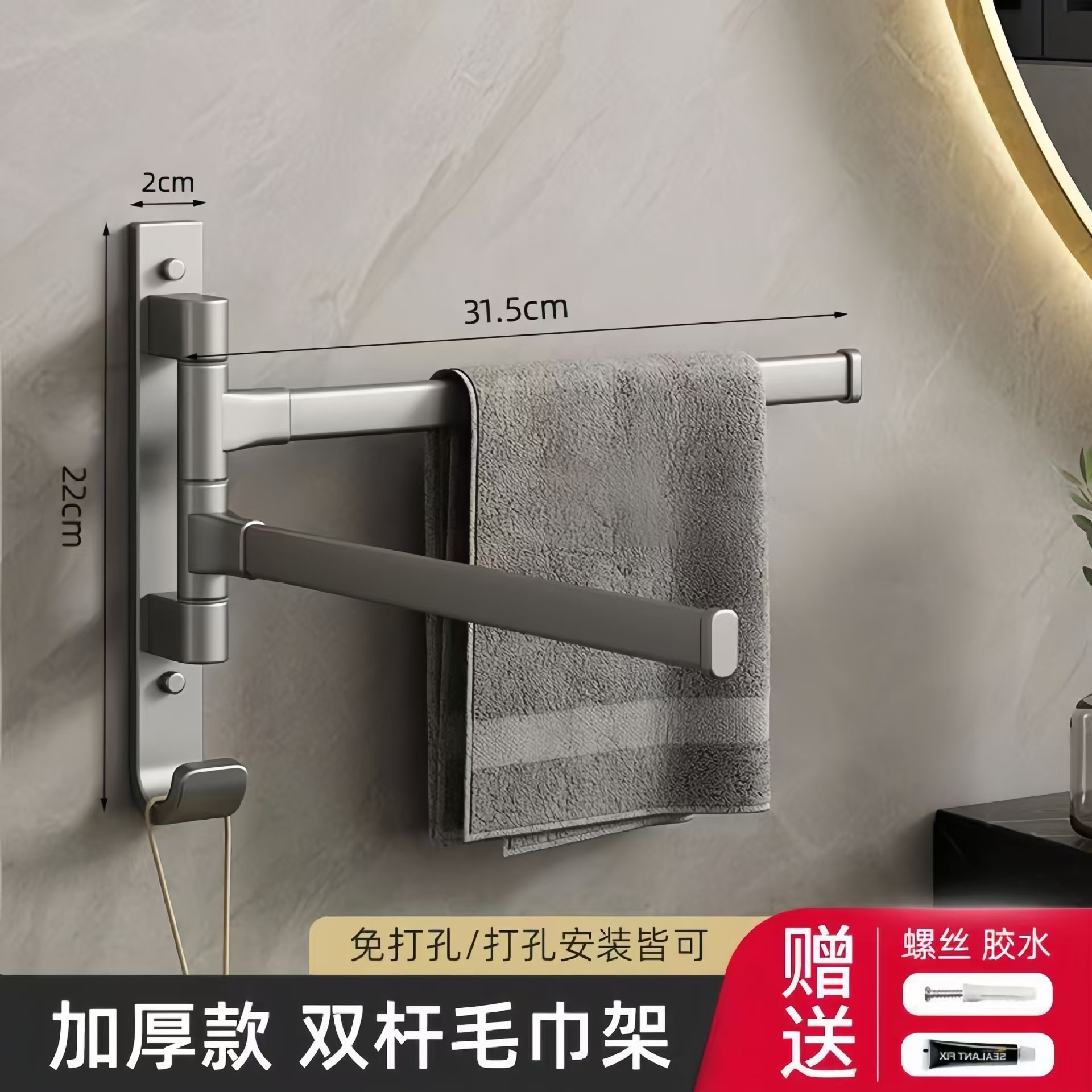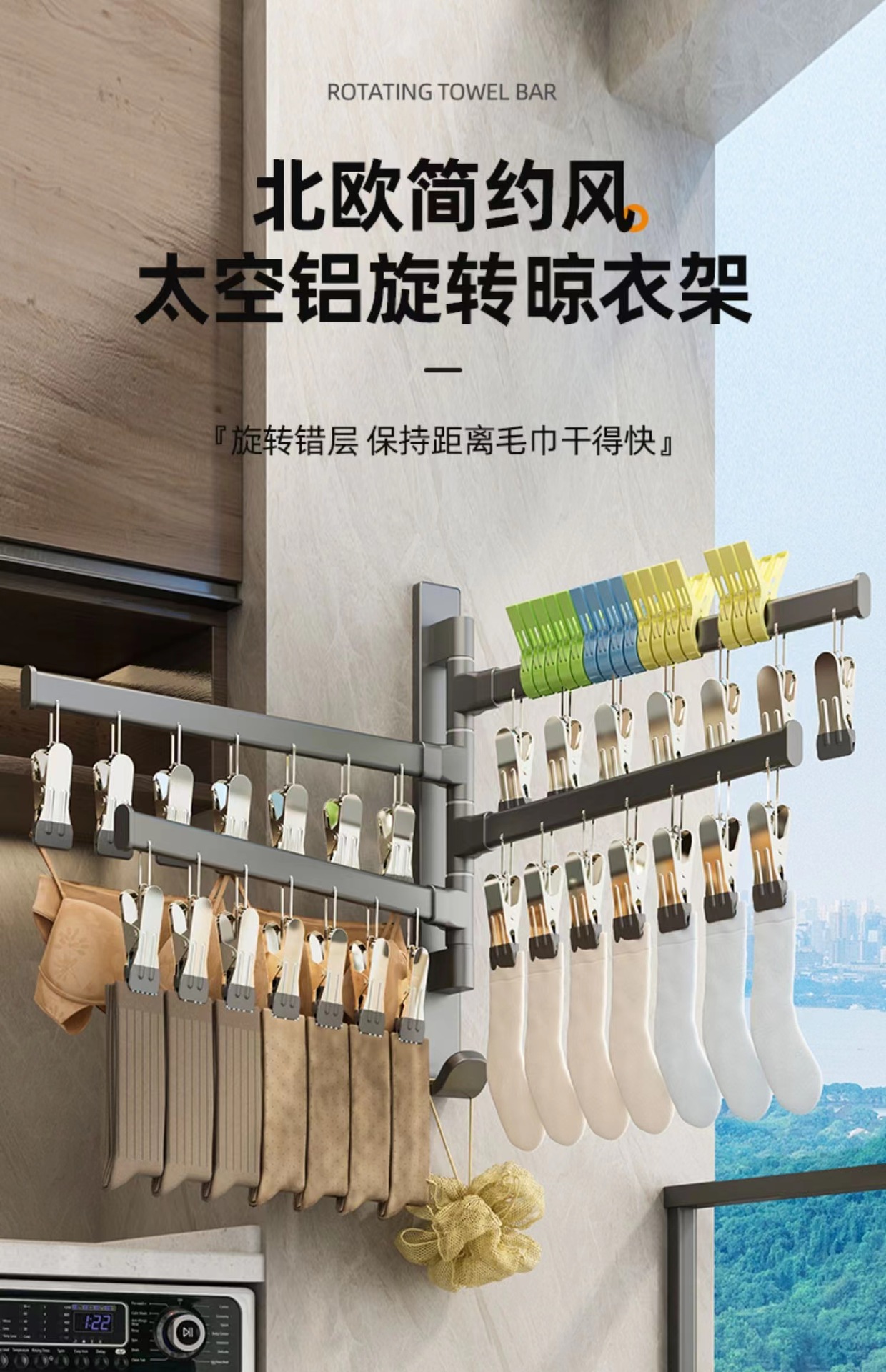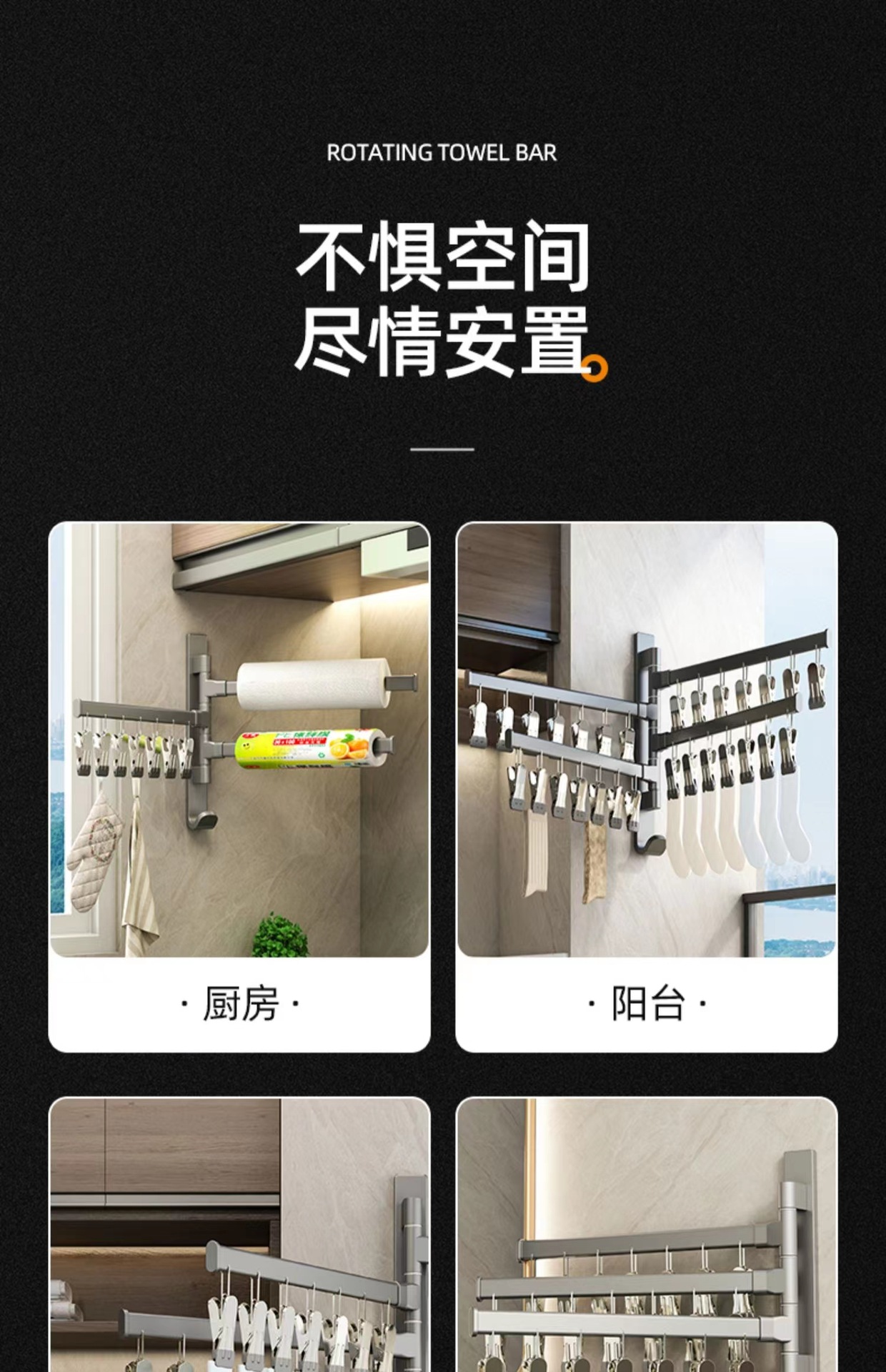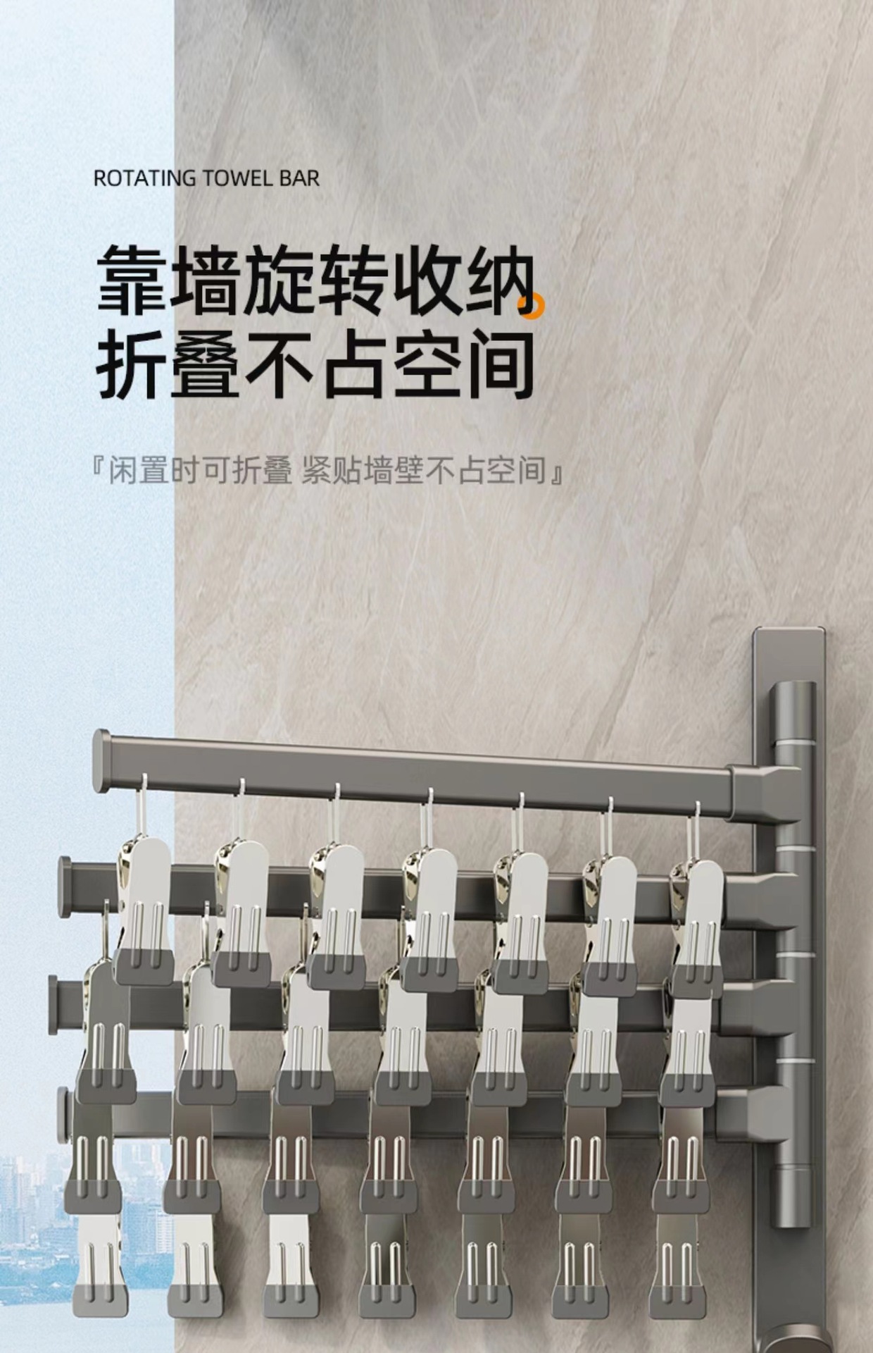 (1)、此款为壁挂折叠袜子架,可以打孔/免打孔双用安装。