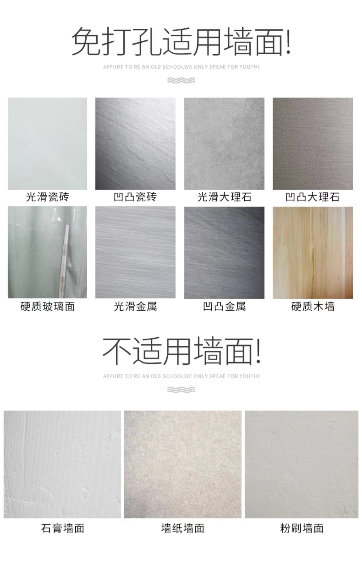 (2)、安装请注意,安装前请看视频和商品详情页,免打孔安装的墙面需是平整坚固的玻璃瓷砖等,不可用在粉刷墙、墙纸、石灰墙等不平整不坚固的墙面上(打孔安装除外)。涂胶上墙后需等待3-5天,免钉胶完全干透再使用!(不正确安装没有十年掉落理赔保障哦!)