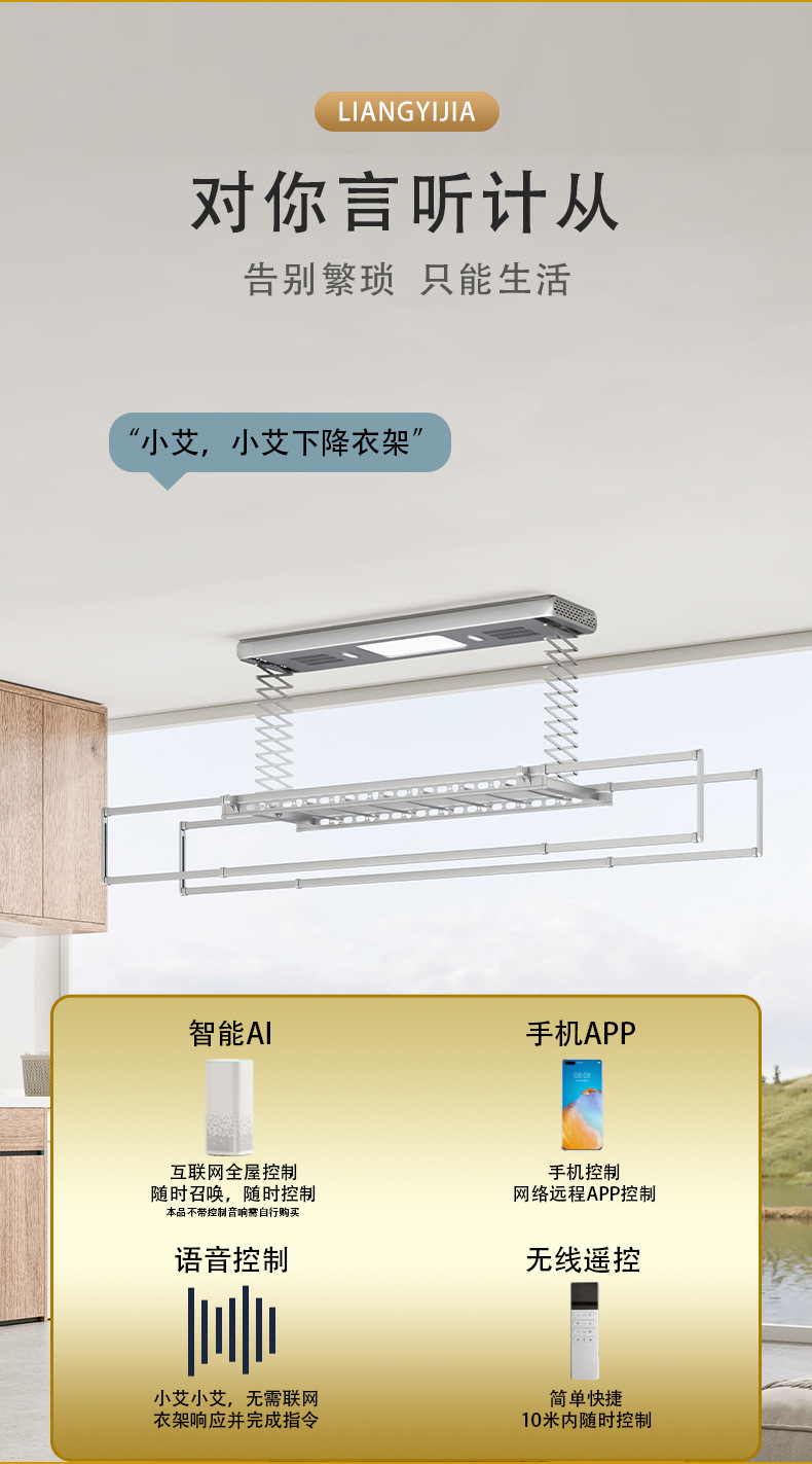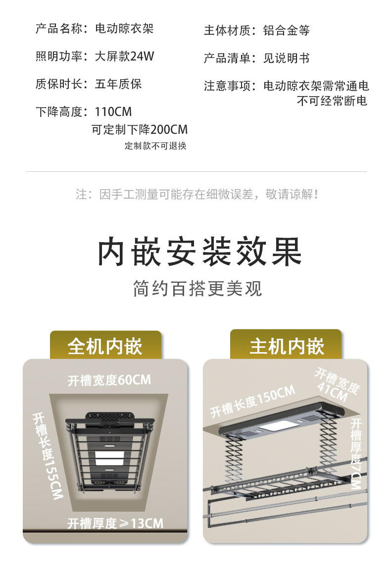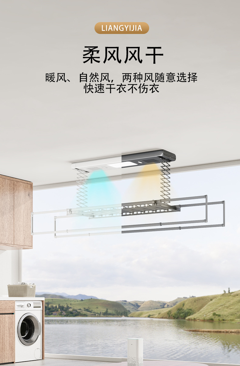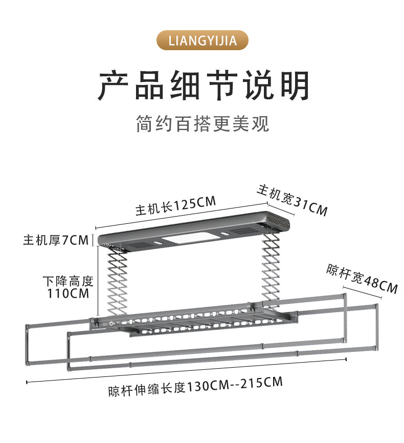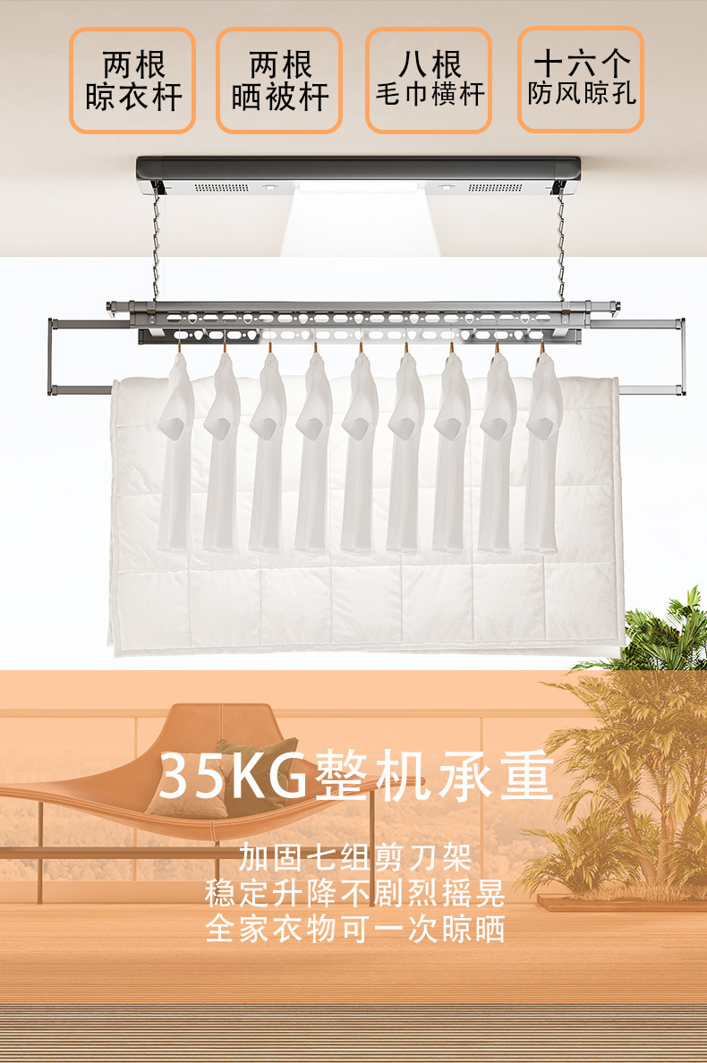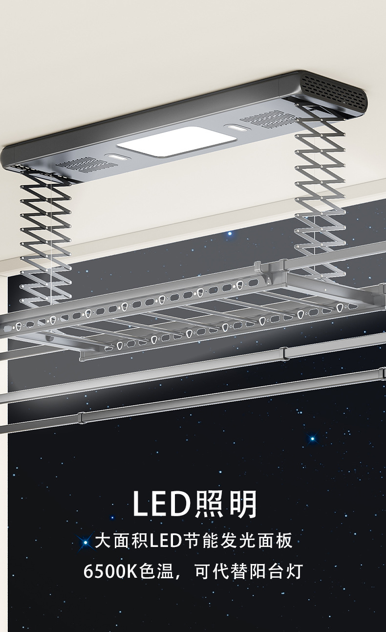 阳台可伸缩凉衣架家用遥控照明晾衣机自动升降智能隐形电动晾衣架