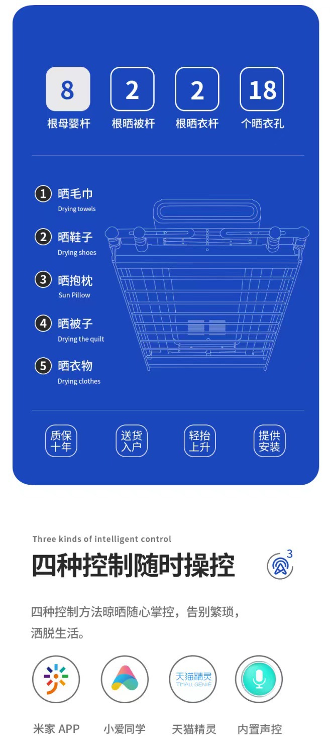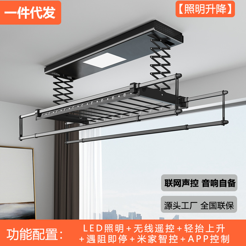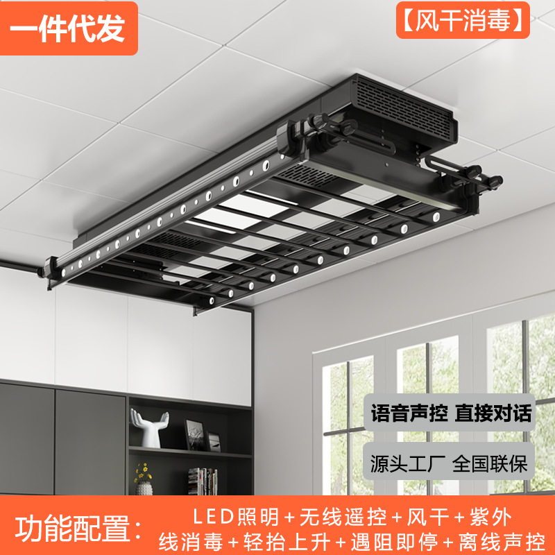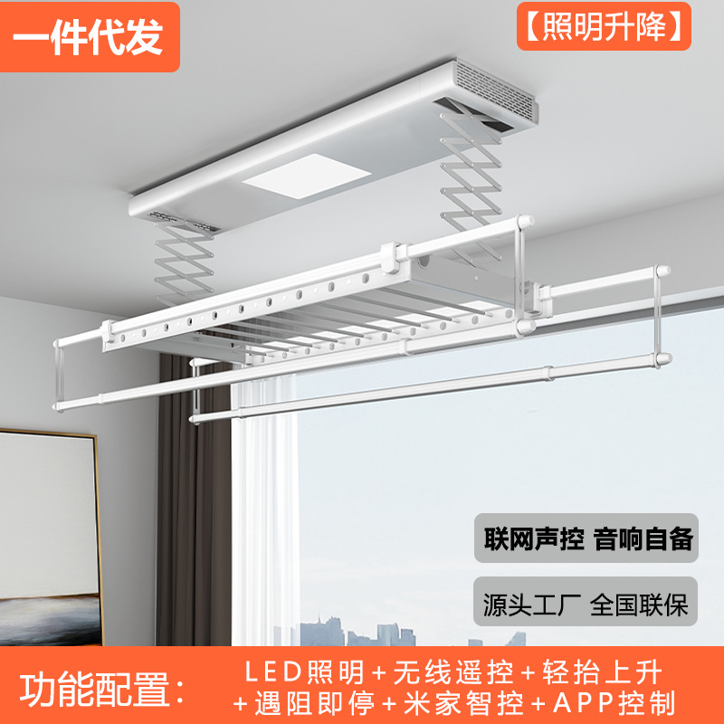 电动晾衣架遥控升降阳台伸缩晾衣机家用智能烘干自动凉衣架杆批发