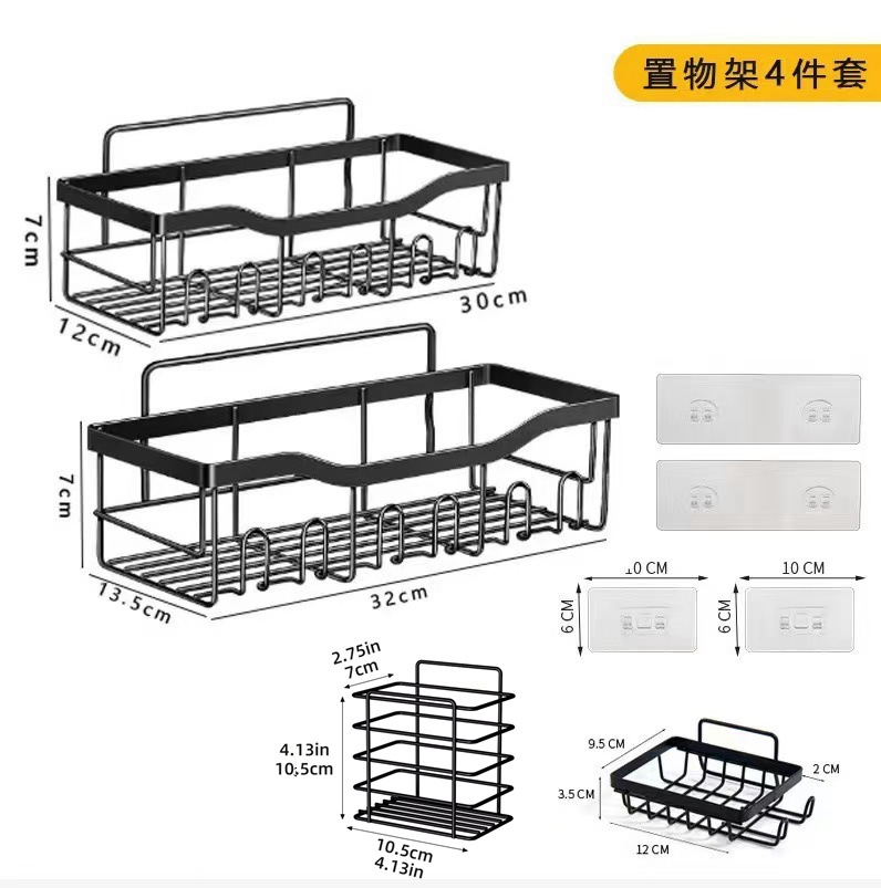 跨境浴室置物架免打孔卫生间铁艺洗漱用品收纳架免钉壁挂式牙刷架