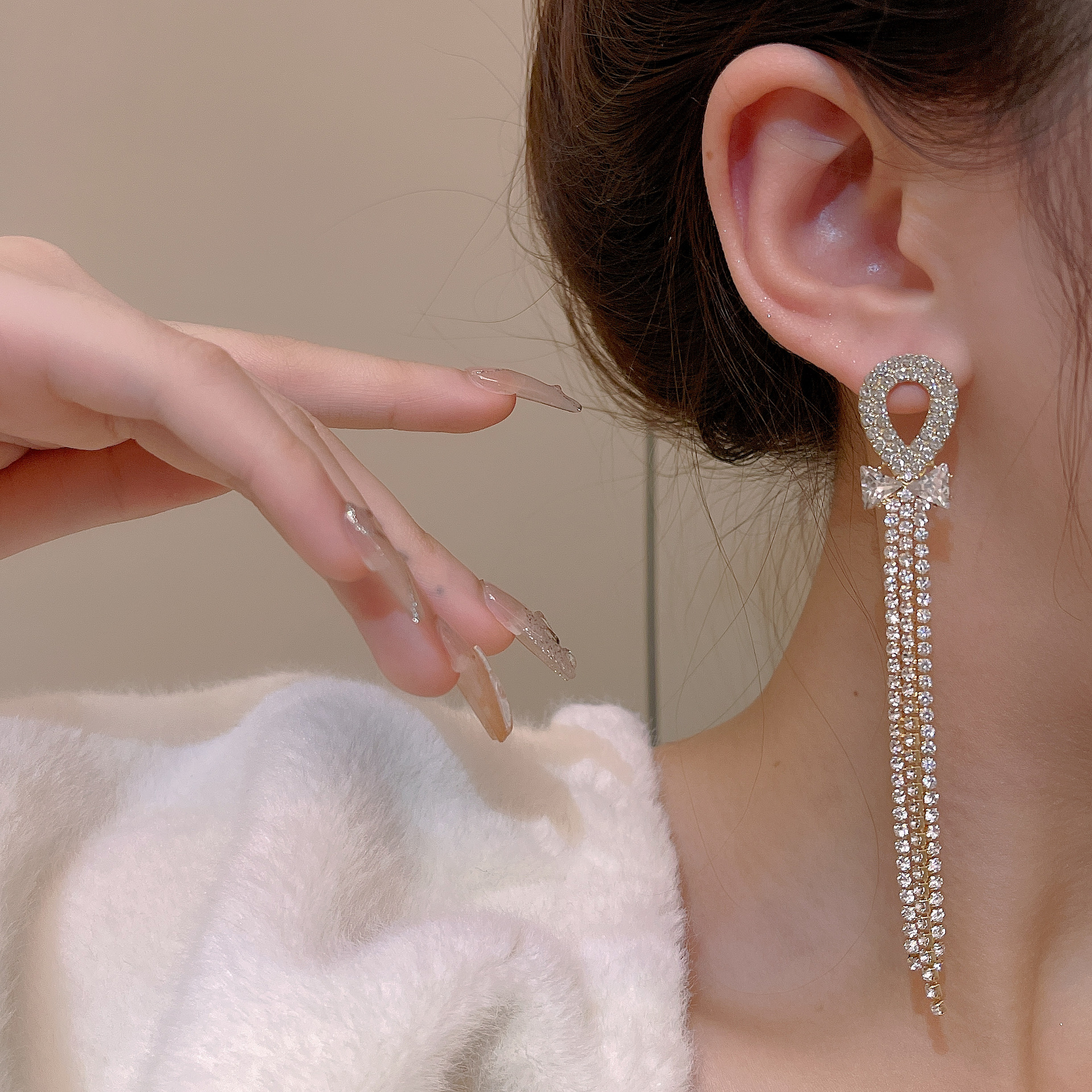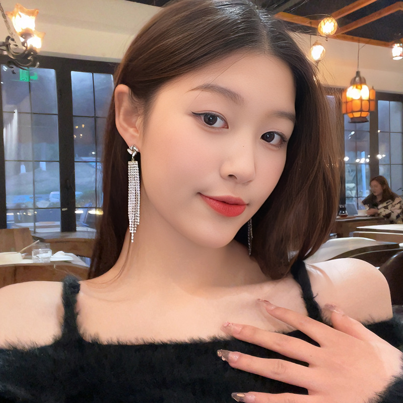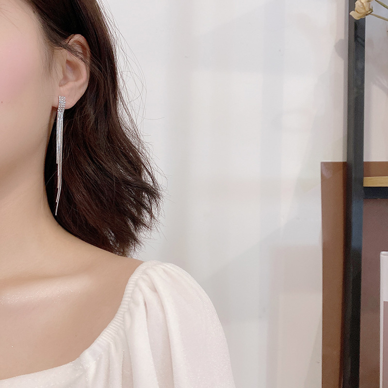 925银针个性长款流苏耳环高级感气质耳坠女镶钻欧美夸张耳饰秋冬
