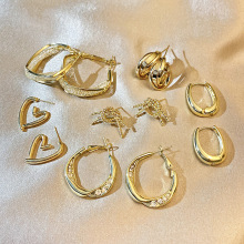 925银针欧美夸张几何金属金属耳环简约高级感复古耳饰女百搭耳圈