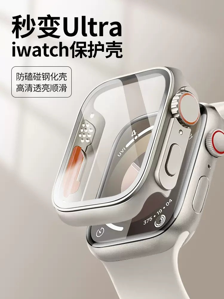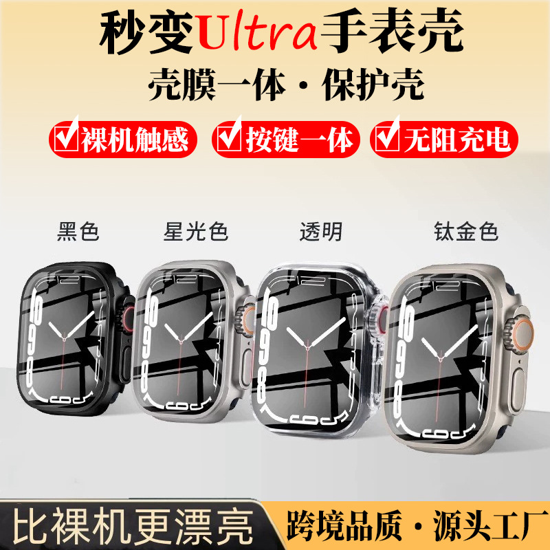 适用苹果iwatchs10手表壳秒变ultra表壳改装PC壳膜一体s8保护壳se