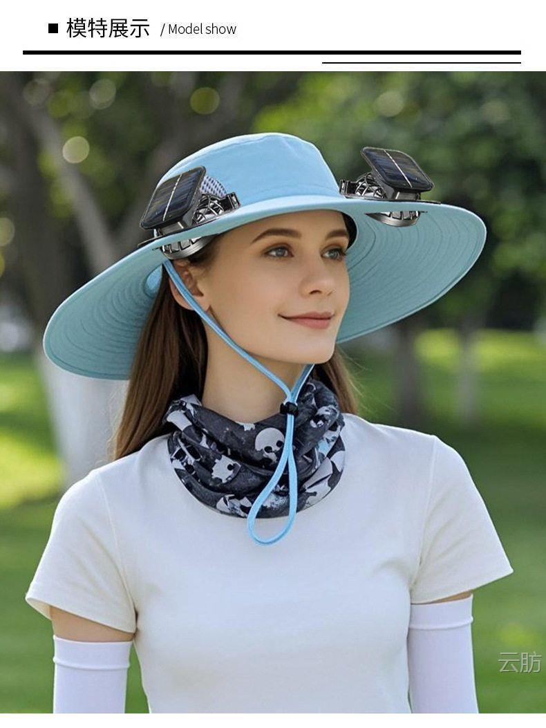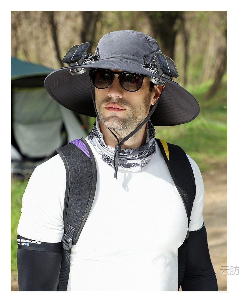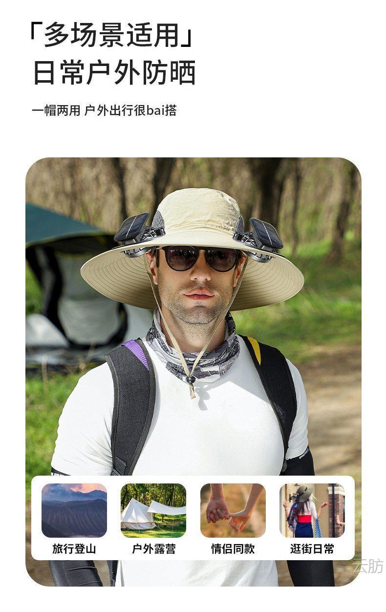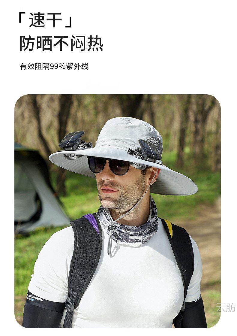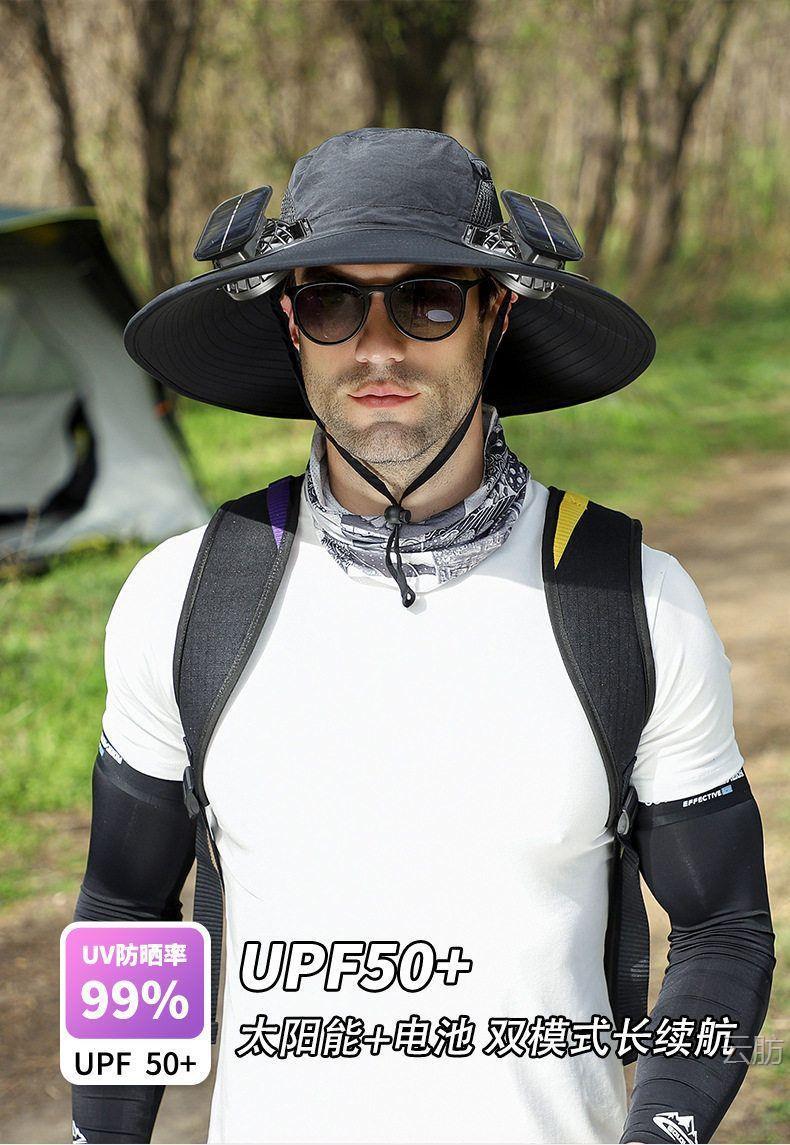 太阳能风扇帽大风力男女同款夏天户外大沿遮阳可充电长续航渔夫帽