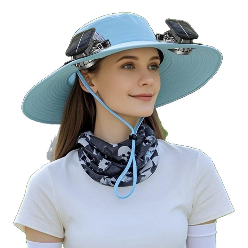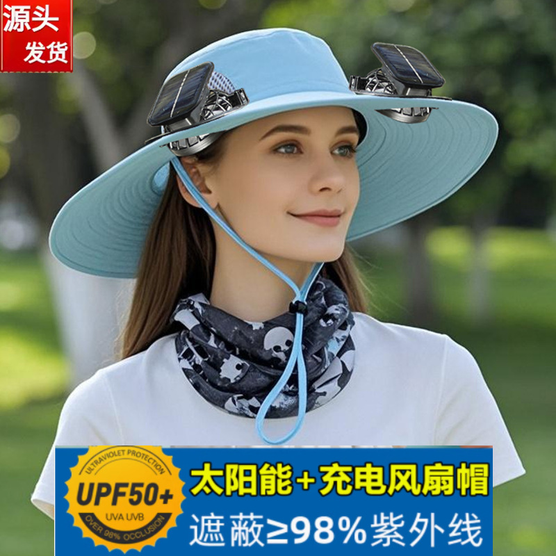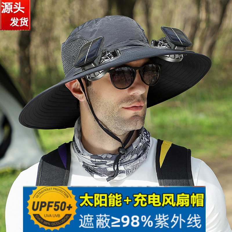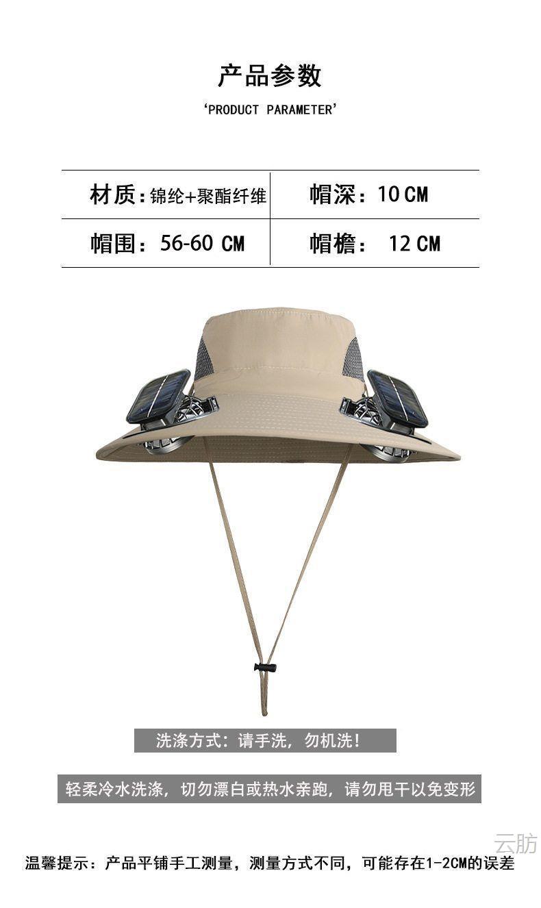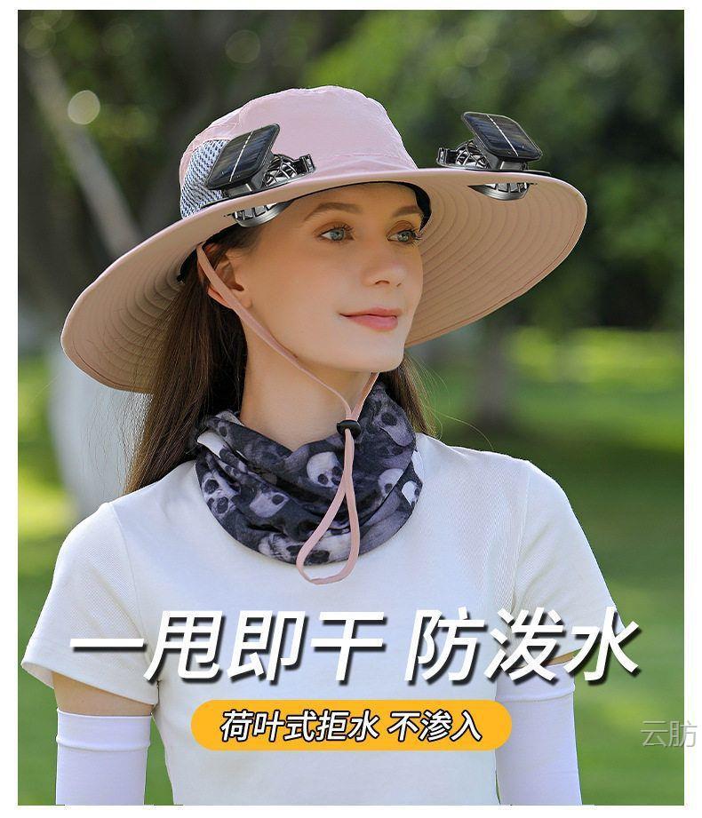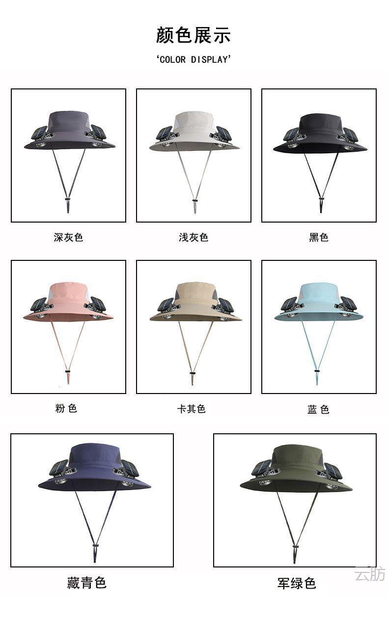 太阳能风扇帽大风力男女同款夏天户外大沿遮阳可充电长续航渔夫帽