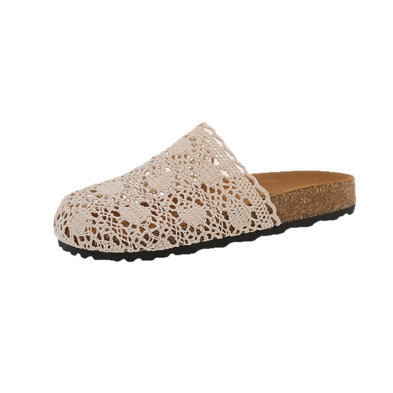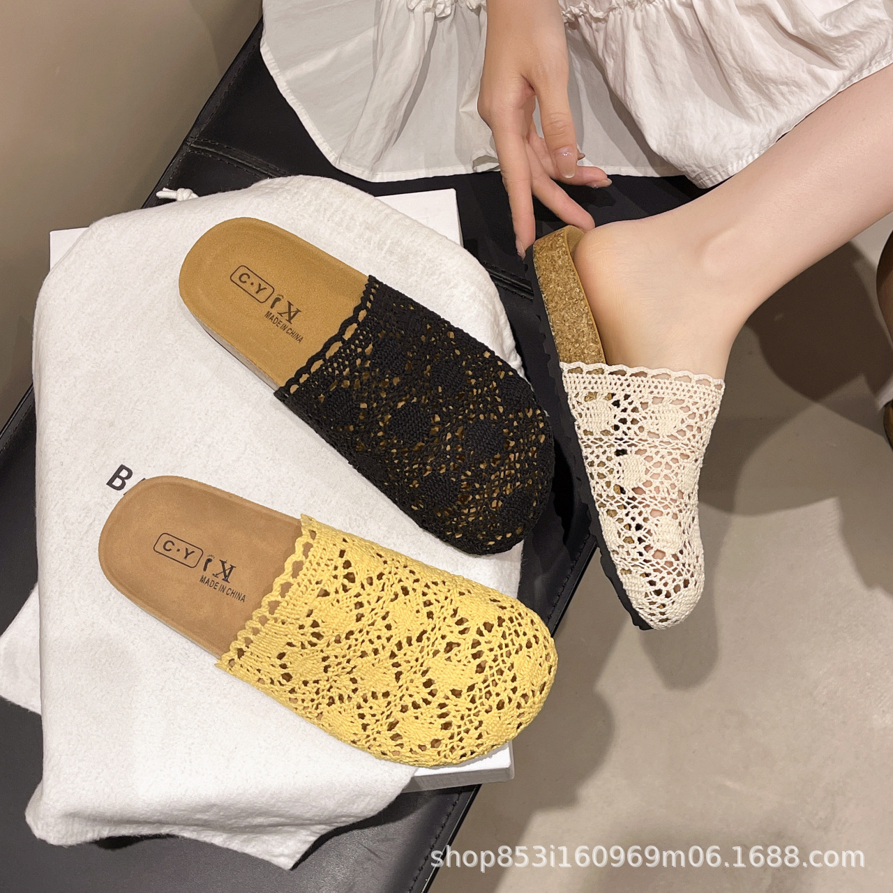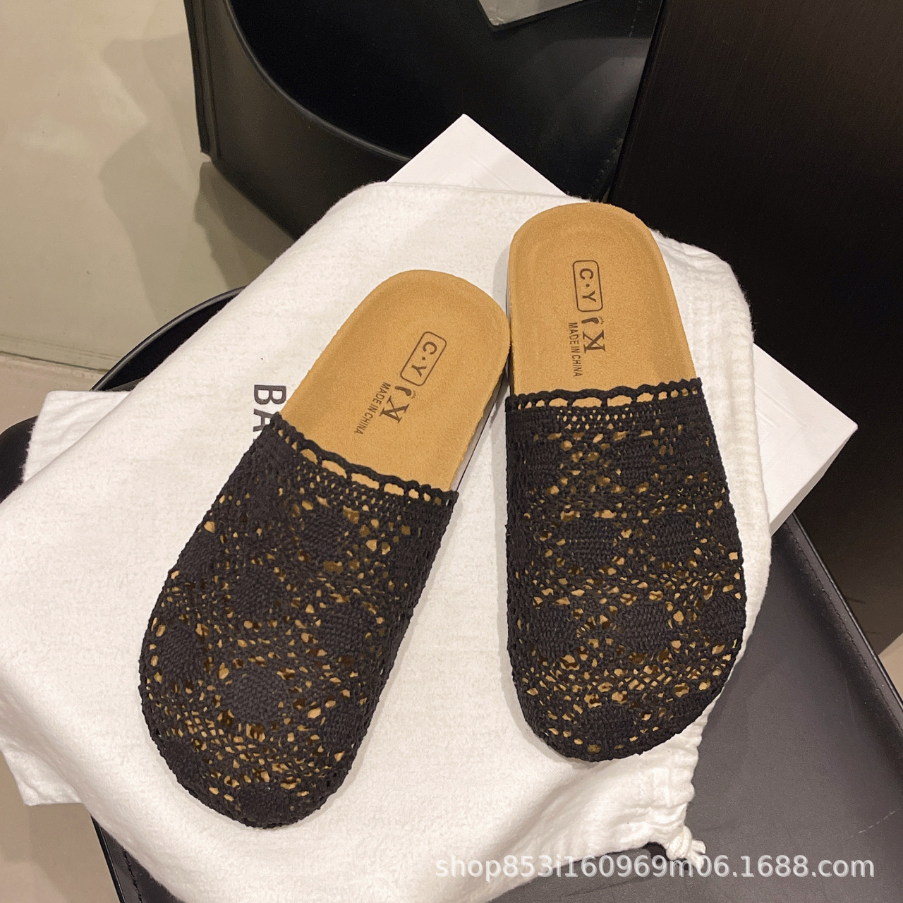 民族风包头镂空半拖鞋女2025年夏季复古网面舒适沙滩平底凉拖鞋女