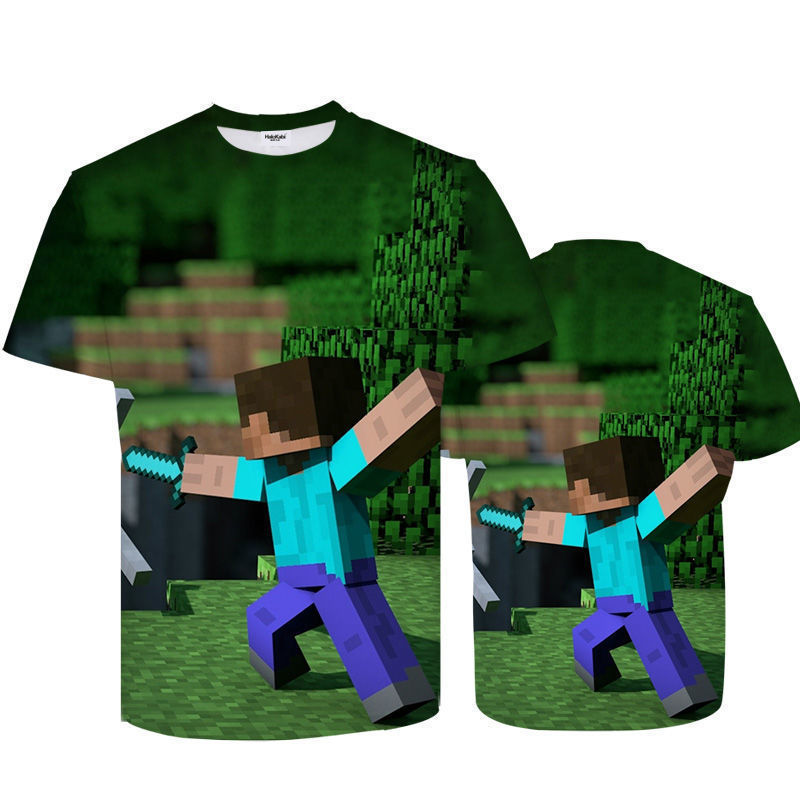 跨境外贸3D迷你世界游戏我的世界衣服男童T恤短袖夏印花童装成人