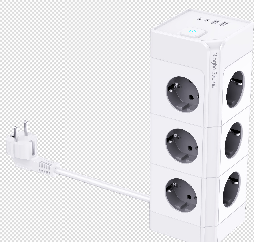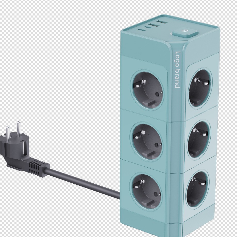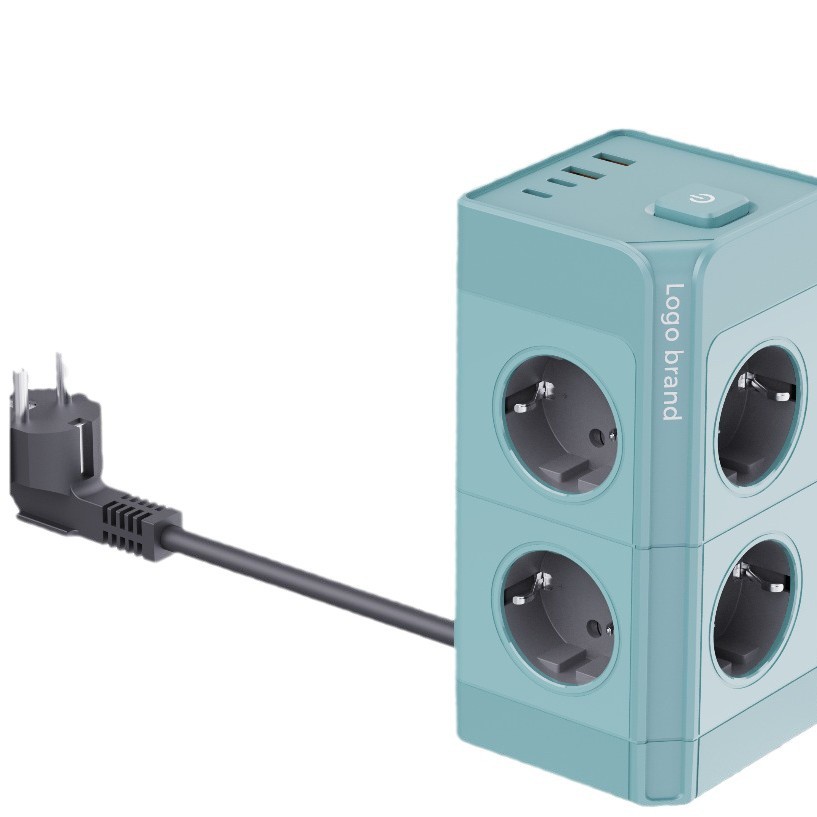 25年新品欧规塔型魔方插座带开关USB多功能多插位一转多欧洲插排