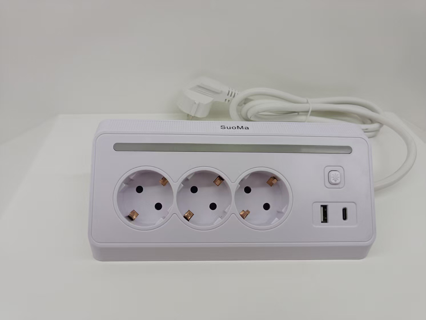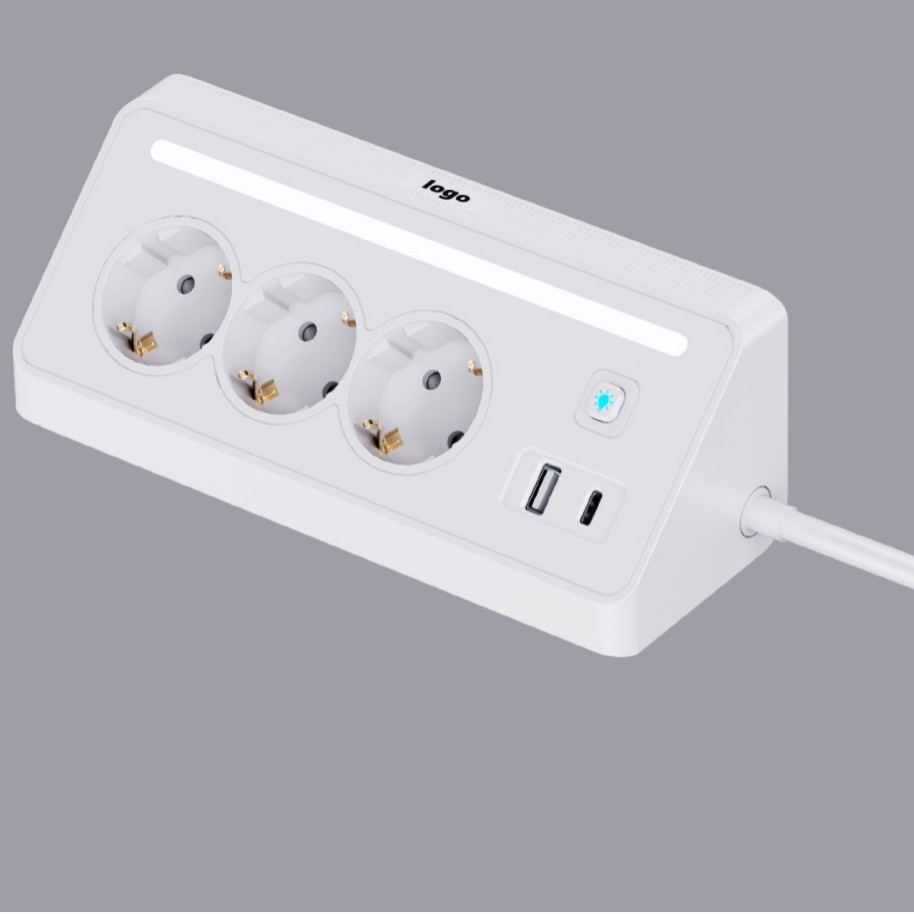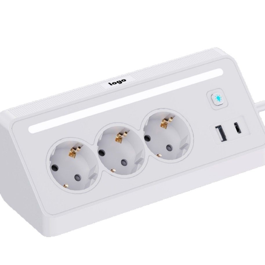 25年新品欧规插排三角带LED灯插座USB多孔位简约时尚一转多拖线板