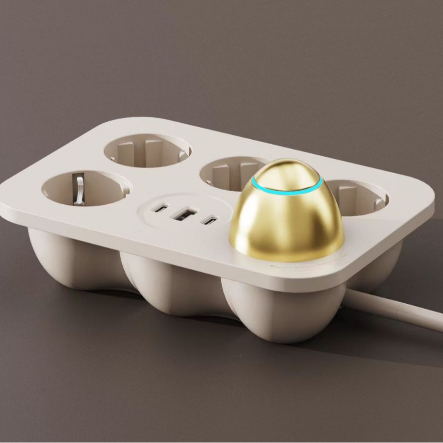 25年欧洲创新高颜值插座鸡蛋保护外罩多孔接线板排插转换器带开关
