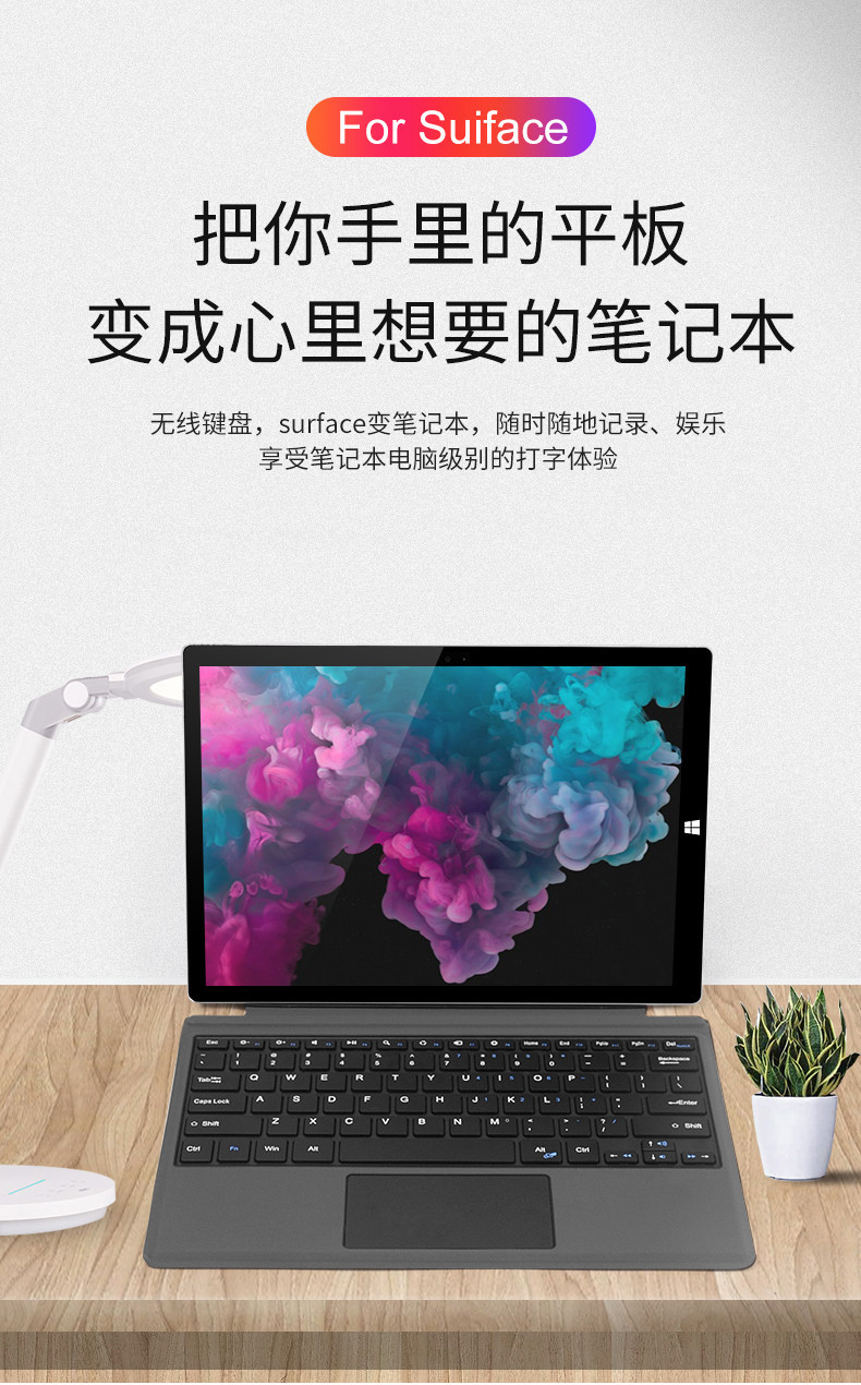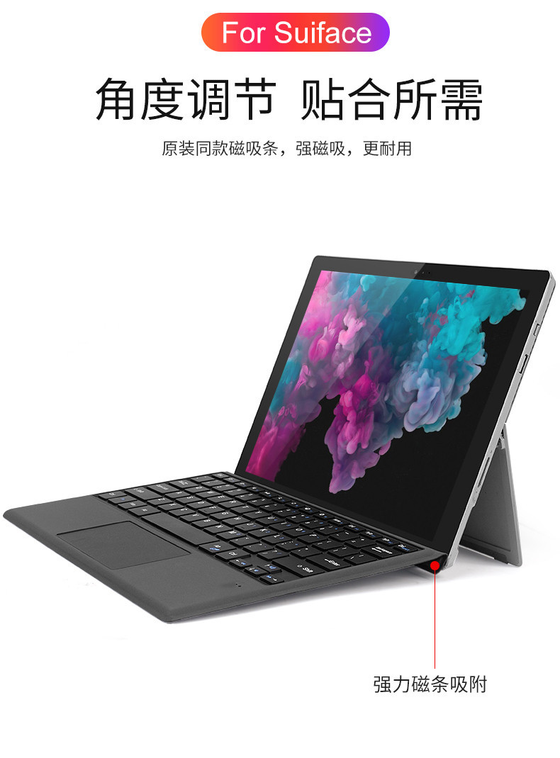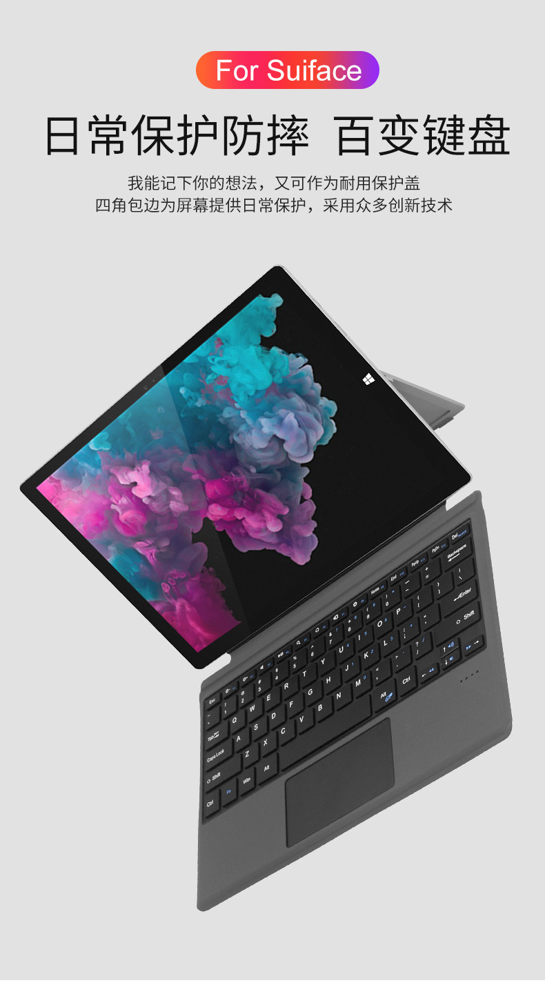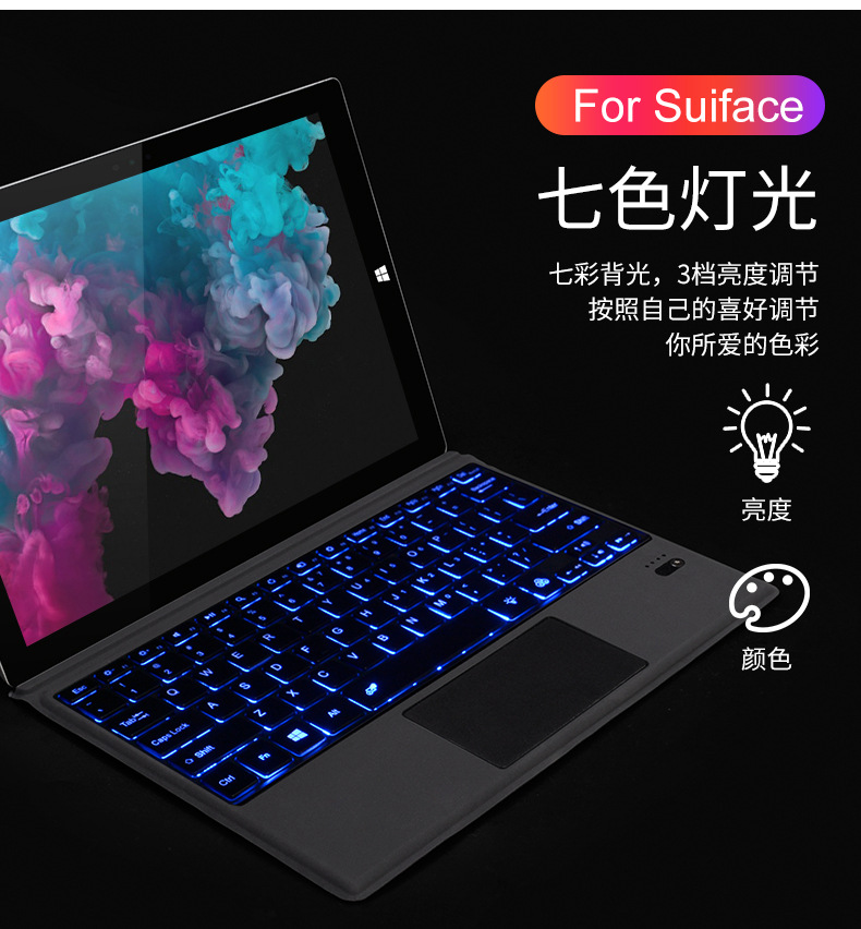 微软surface pro3/pro4/pro2017/pro6 通用磁性吸附七彩发光蓝牙键盘带触摸