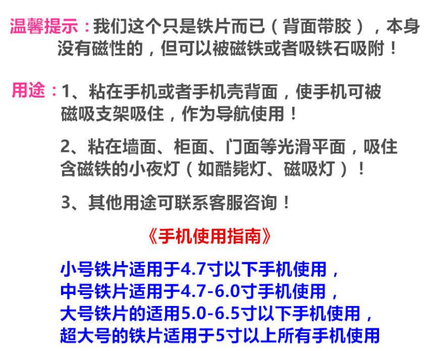 引磁片厂家手机支架配件圆形长方形黑色磁吸贴片感应灯铁片带背胶