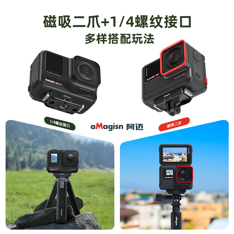 aMagisn阿迈影石Insta360 X5/AcePro2金属磁吸快拆双接口底座配件