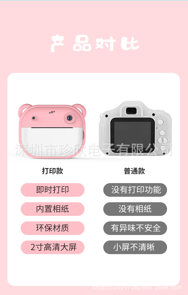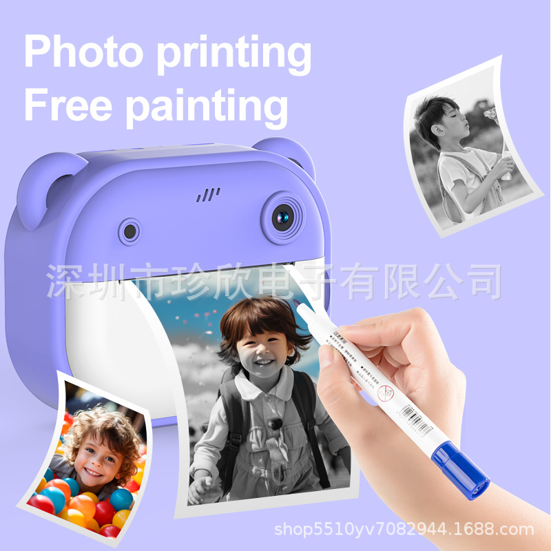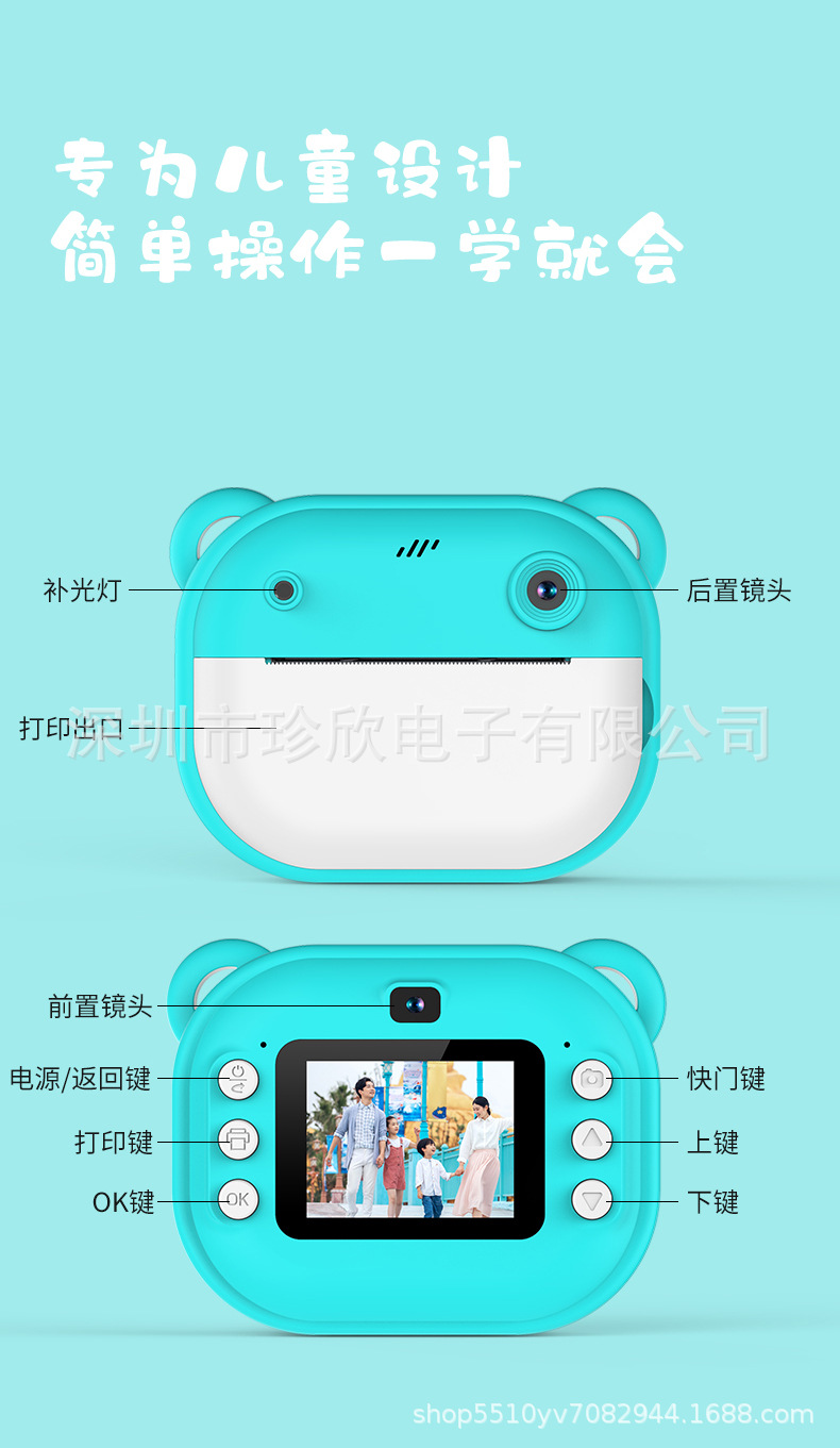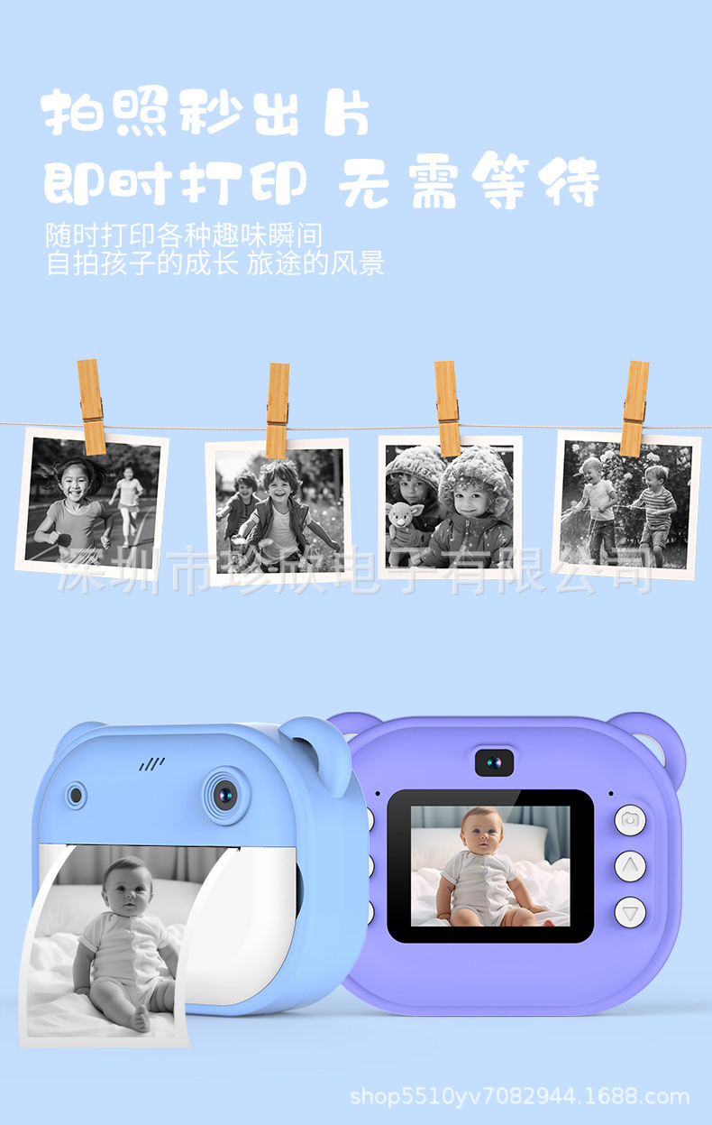 Y600拍立得相机儿童数码可爱卡通迷你拍照打印数码高清打印照相机