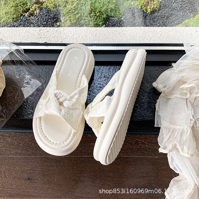 2025夏季新款厚底休闲沙滩平底拖鞋女新中式国风交叉带凉拖鞋女