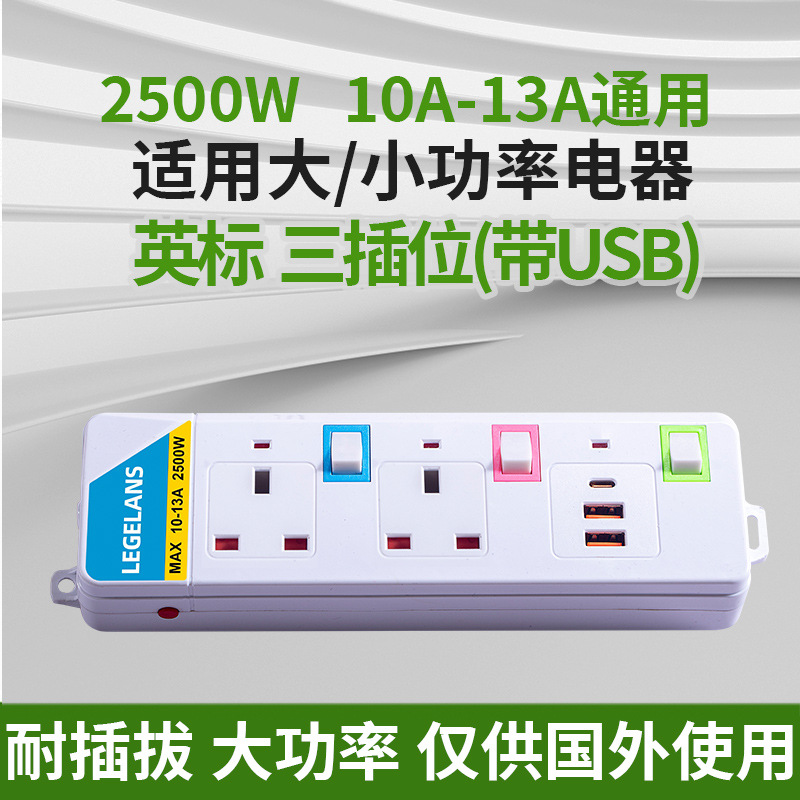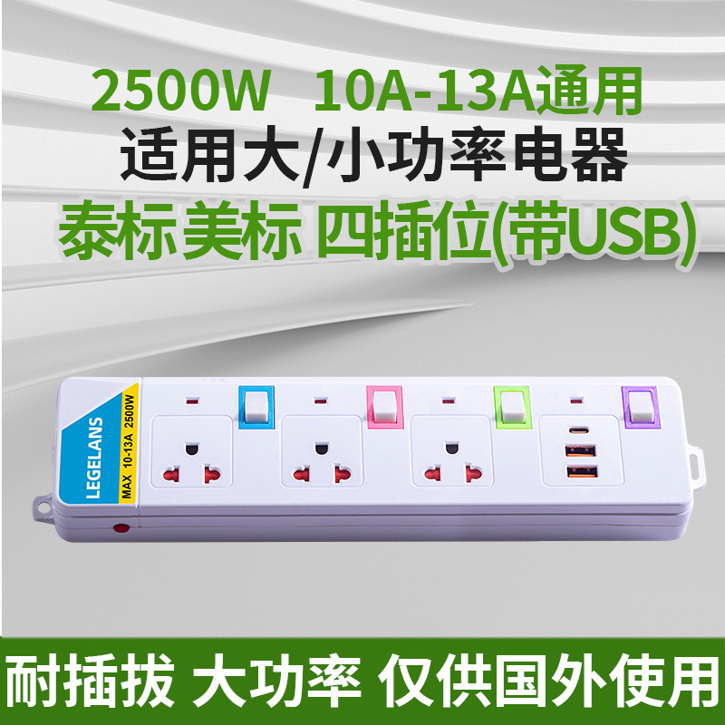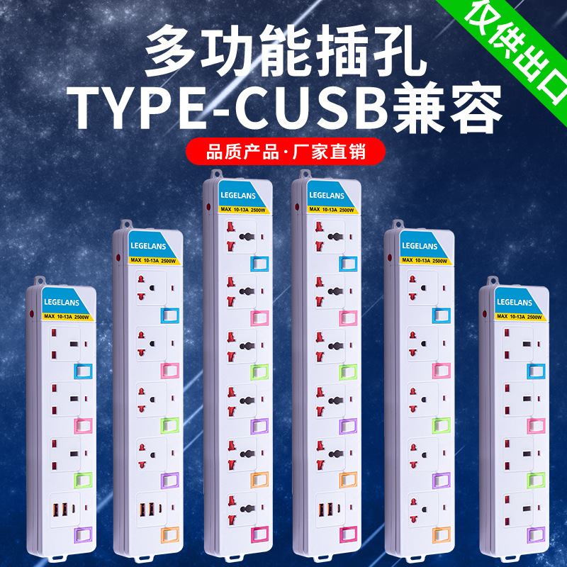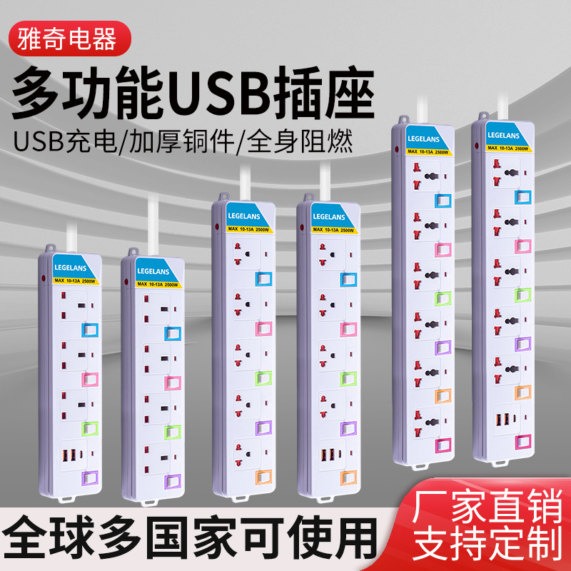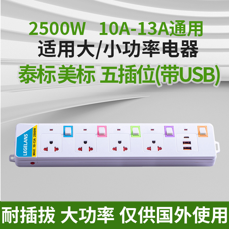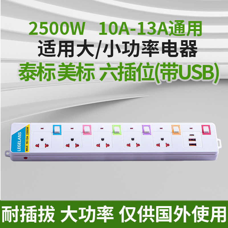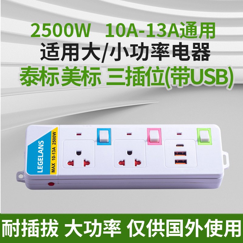 跨境多功能插座插板拖板线过载保护插排泰标英规带USB延长线排插