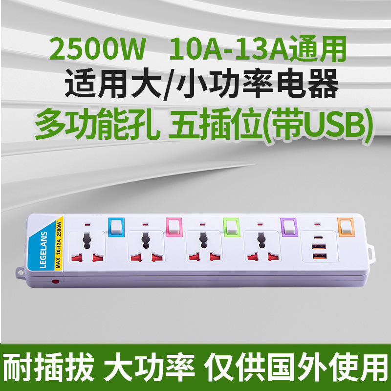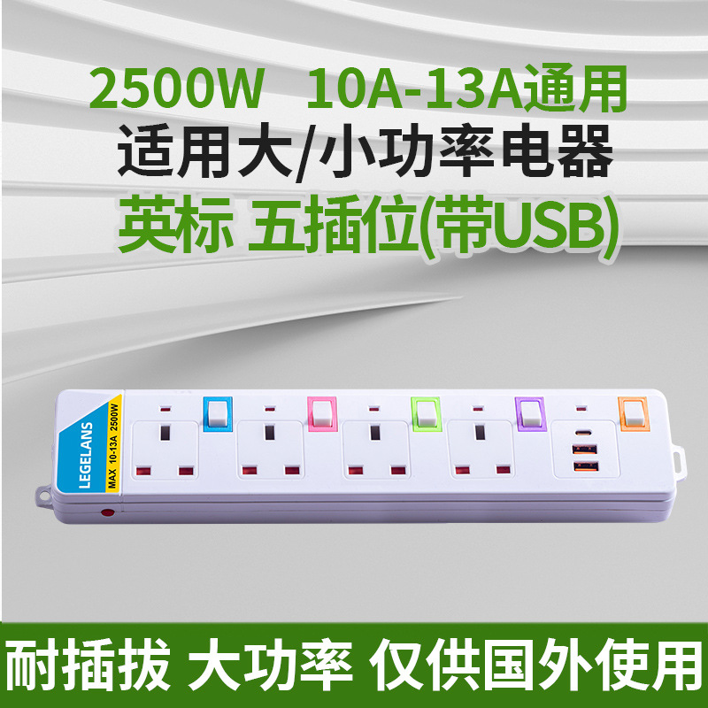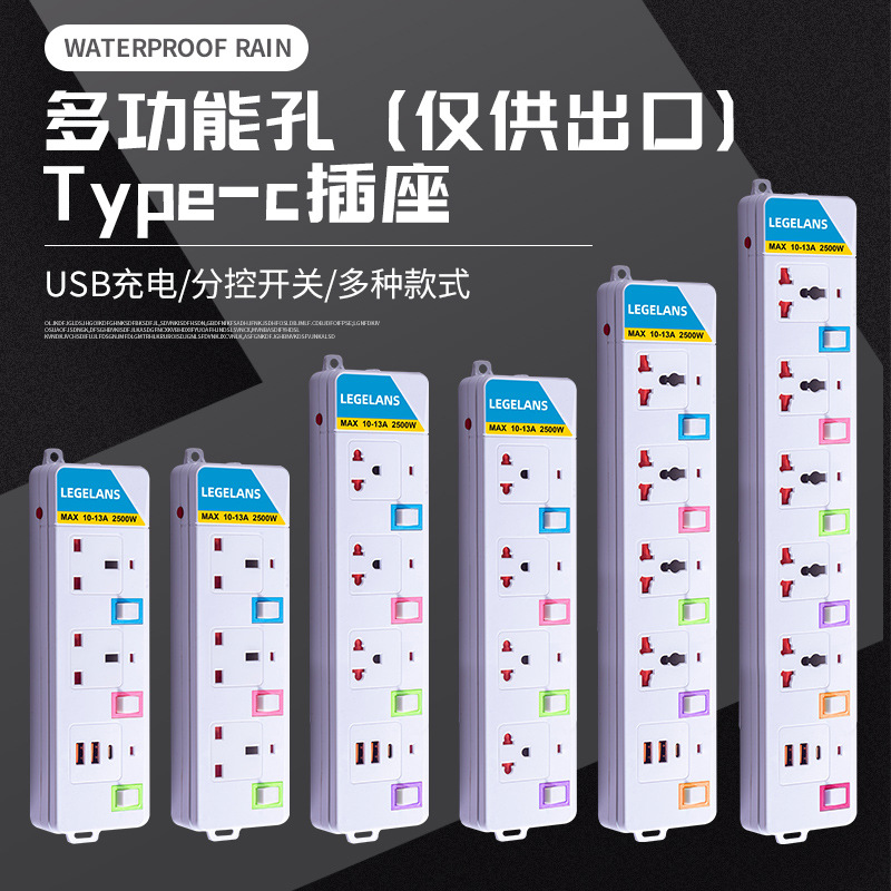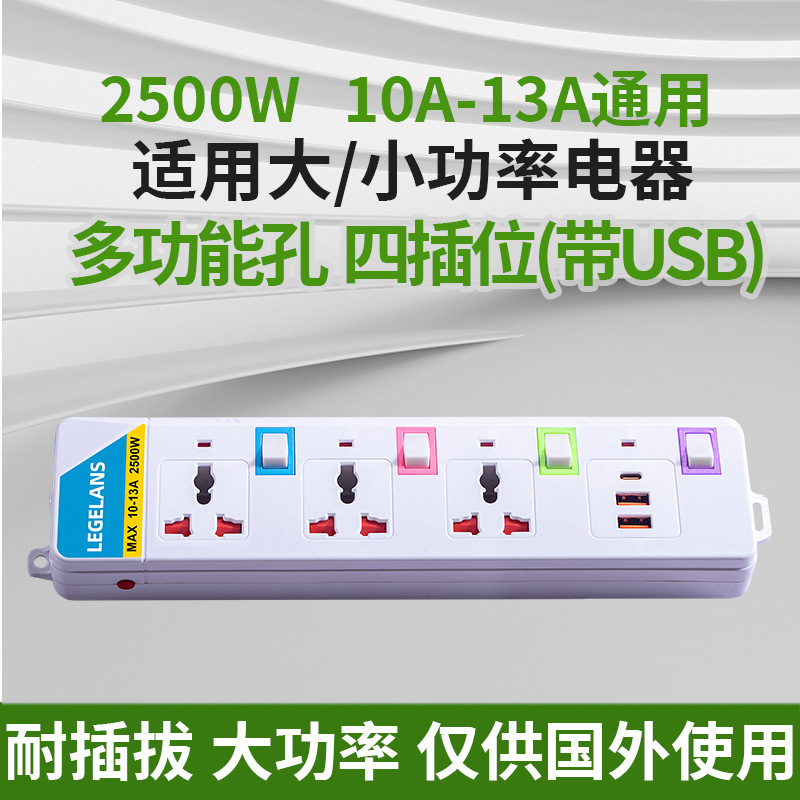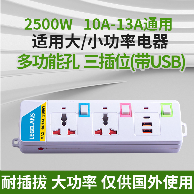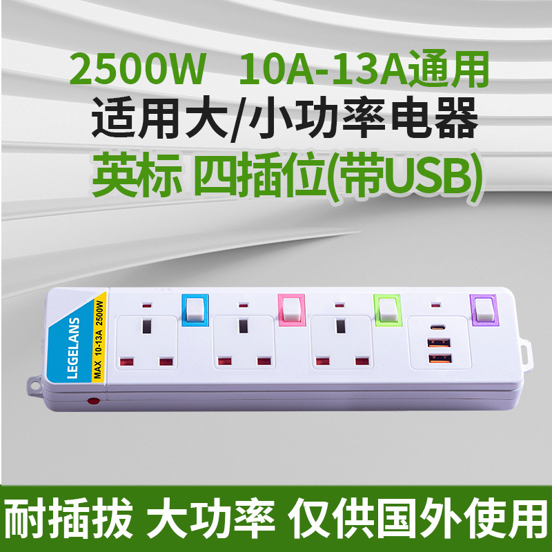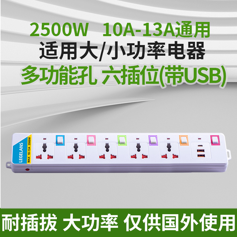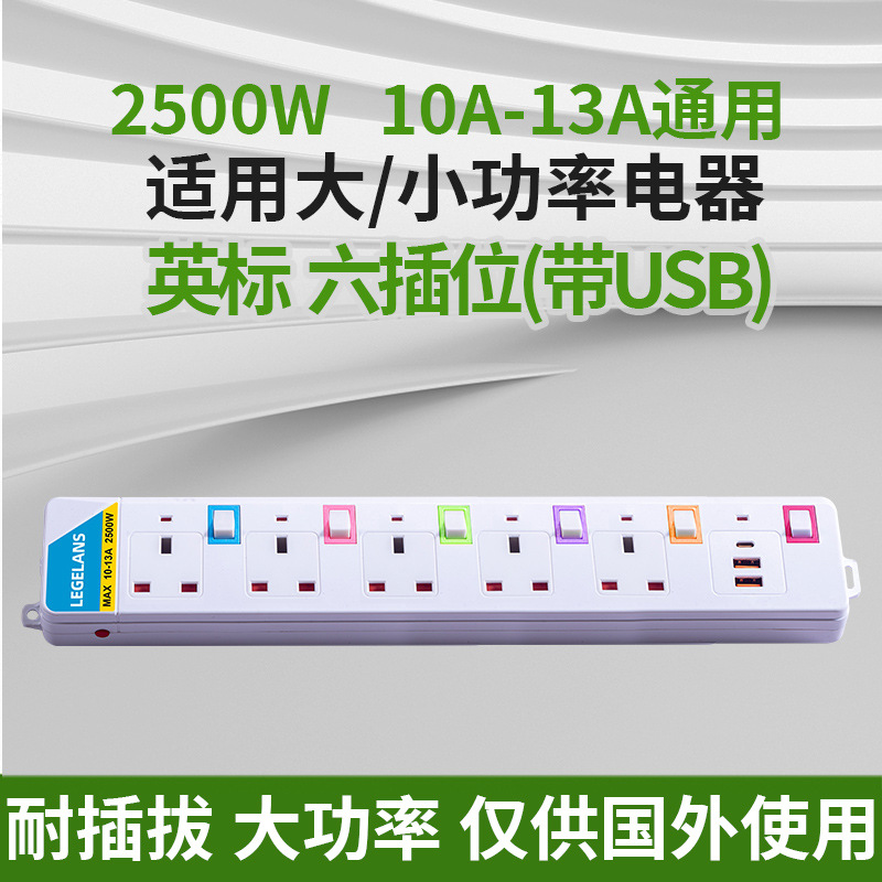跨境多功能插座插板拖板线过载保护插排泰标英规带USB延长线排插