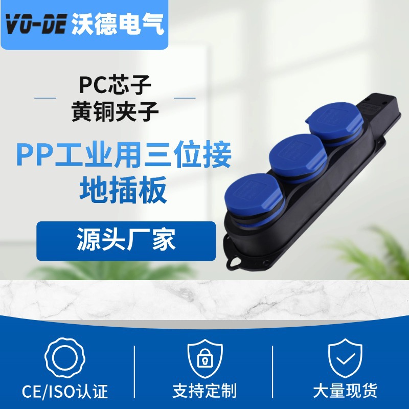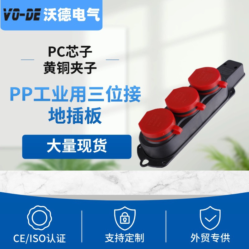 跨境直供欧规欧标三位插板工业用接地两位德标德规插板胶木排插座